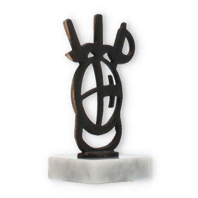 Lo que hace especial a este trofeo es su capacidad de ser personalizado con un moderno grabado láser. La placa de grabado, en color dorado, se integra perfectamente con el diseño, asegurando que los momentos especiales sean recordados por muchos años. La figura que corona este trofeo mide 12,6 cm, mientras que su base, de 65 mm por lado, ofrece estabilidad y un toque de sofisticación.