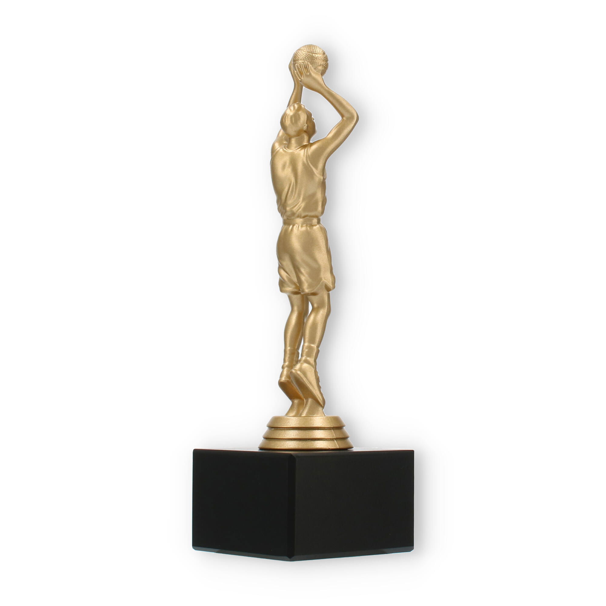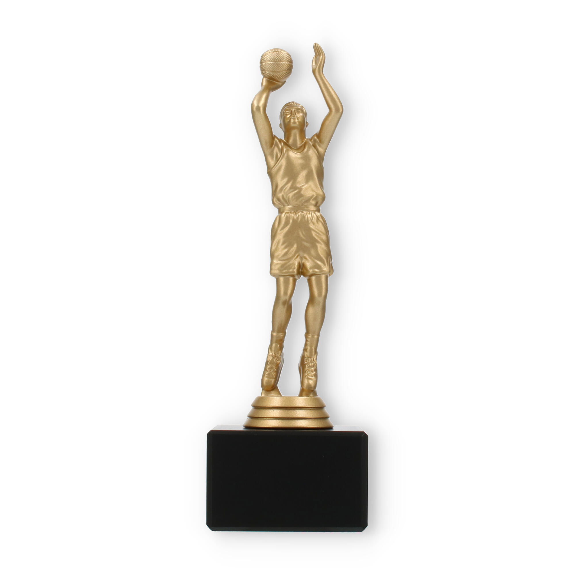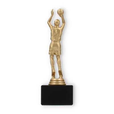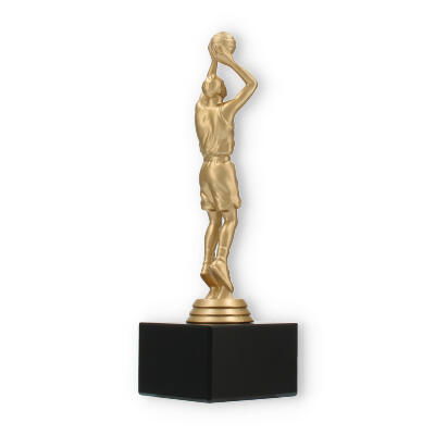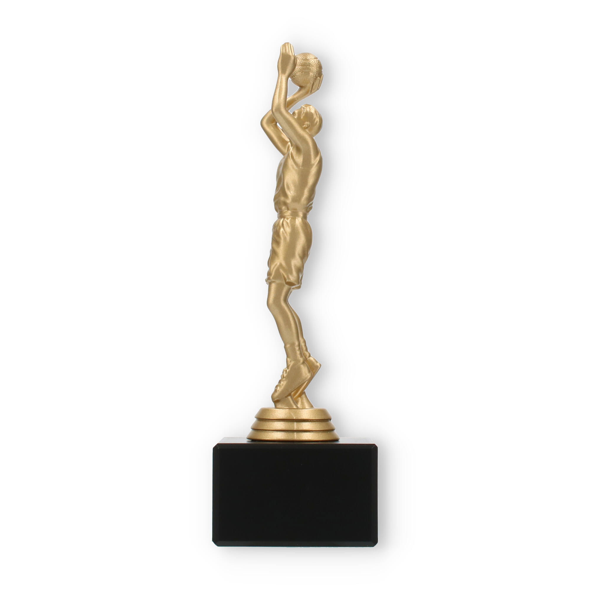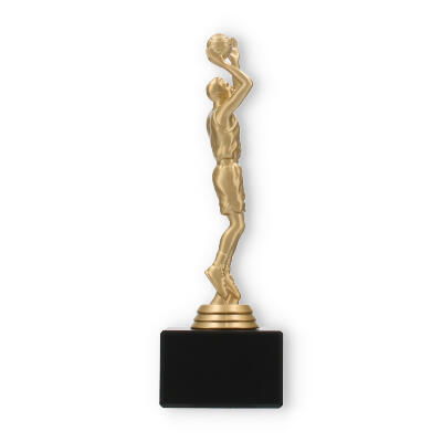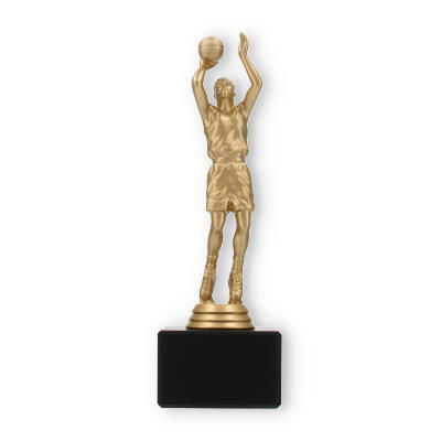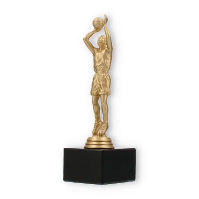 El trofeo jugador de baloncesto encapsula la pasión y dinamismo del deporte en su figura color dorado metálico, poseedora de un detalle excepcional. El acabado de la figura refleja la luz, añadiendo un elemento de prestigio en cualquier entrega de premios. Cada línea y curva de la figura está cuidadosamente diseñada, mostrándola en plena acción, lo que captura la esencia del baloncesto y trasciende lo meramente decorativo.