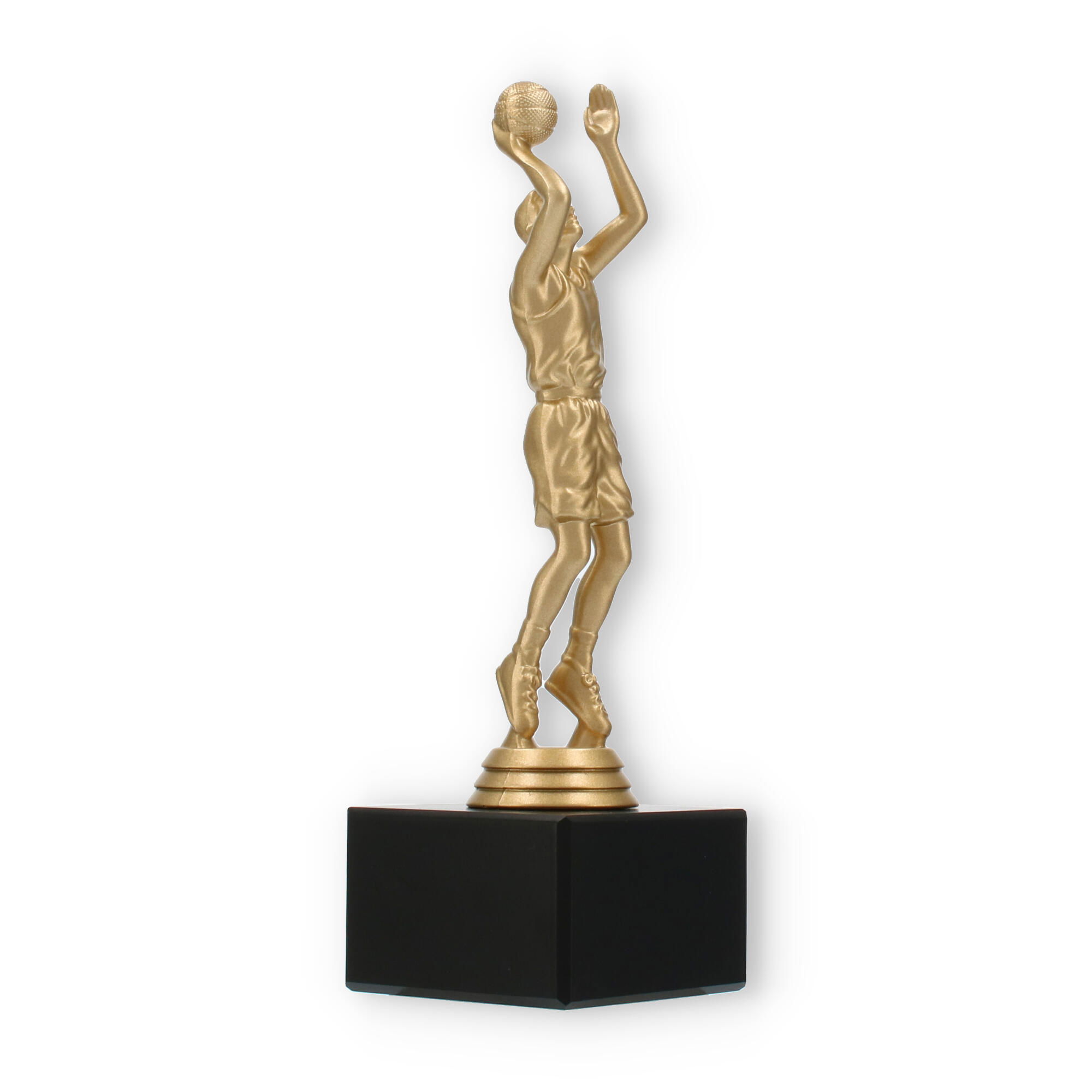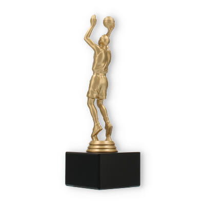 Este trofeo representa el espíritu del baloncesto, capturando la emoción del juego. Personalizable con un grabado, es un homenaje perfecto para cualquier evento deportivo. Con un diseño detallado en la figura y una base de mármol negro, cada galardón es un símbolo de logro y dedicación.