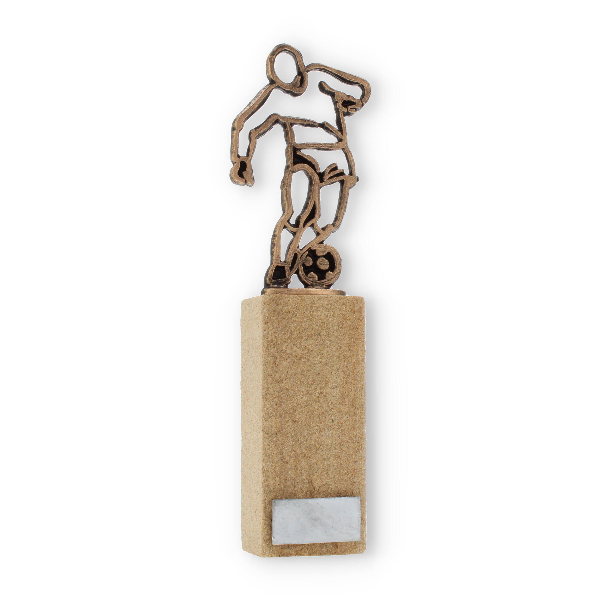La Coupe Figure de contour footballeur, haute de 24,4 cm, allie dynamisme et design moderne. Son socle en grès et sa gravure personnalisée en font une récompense élégante pour toute compétition footballistique.