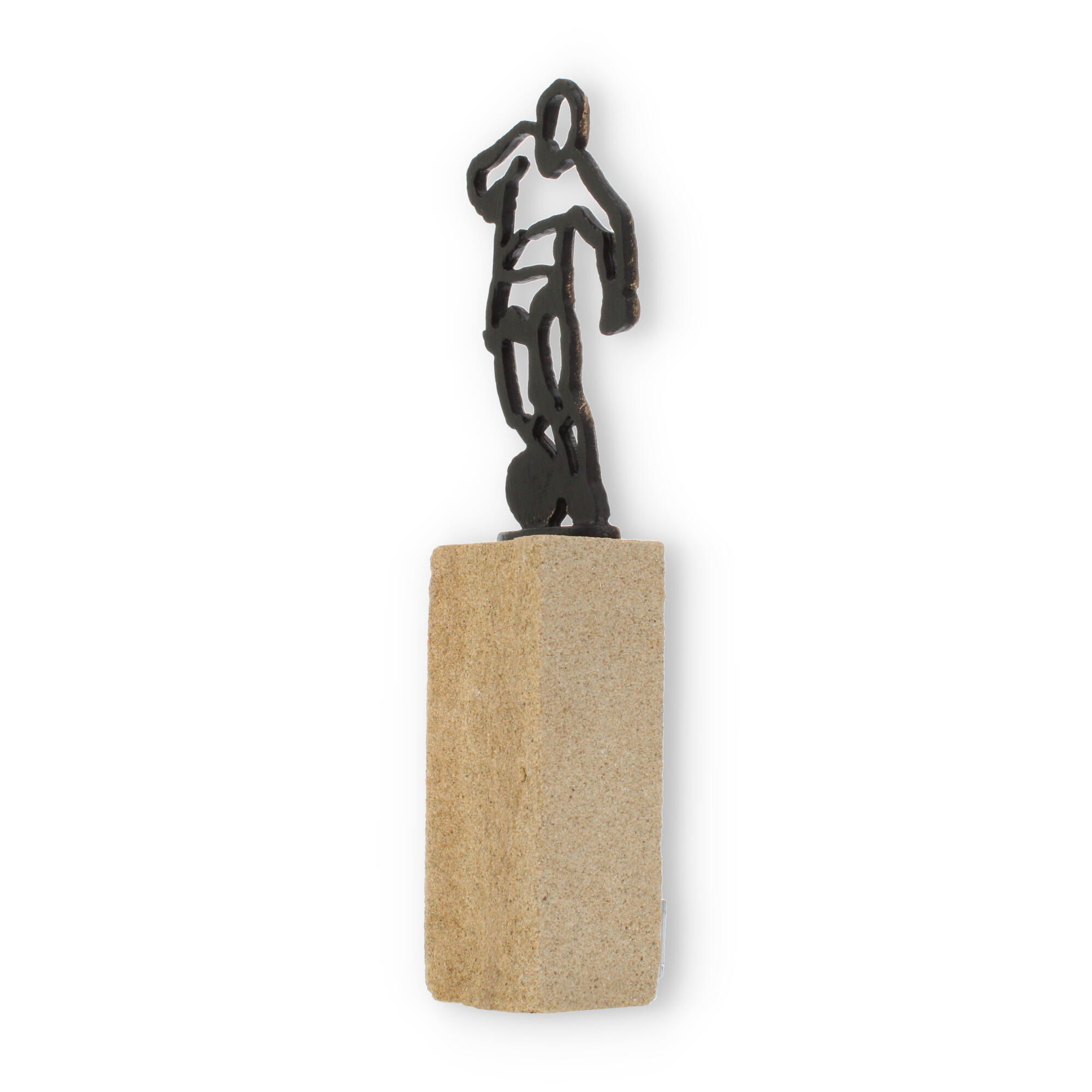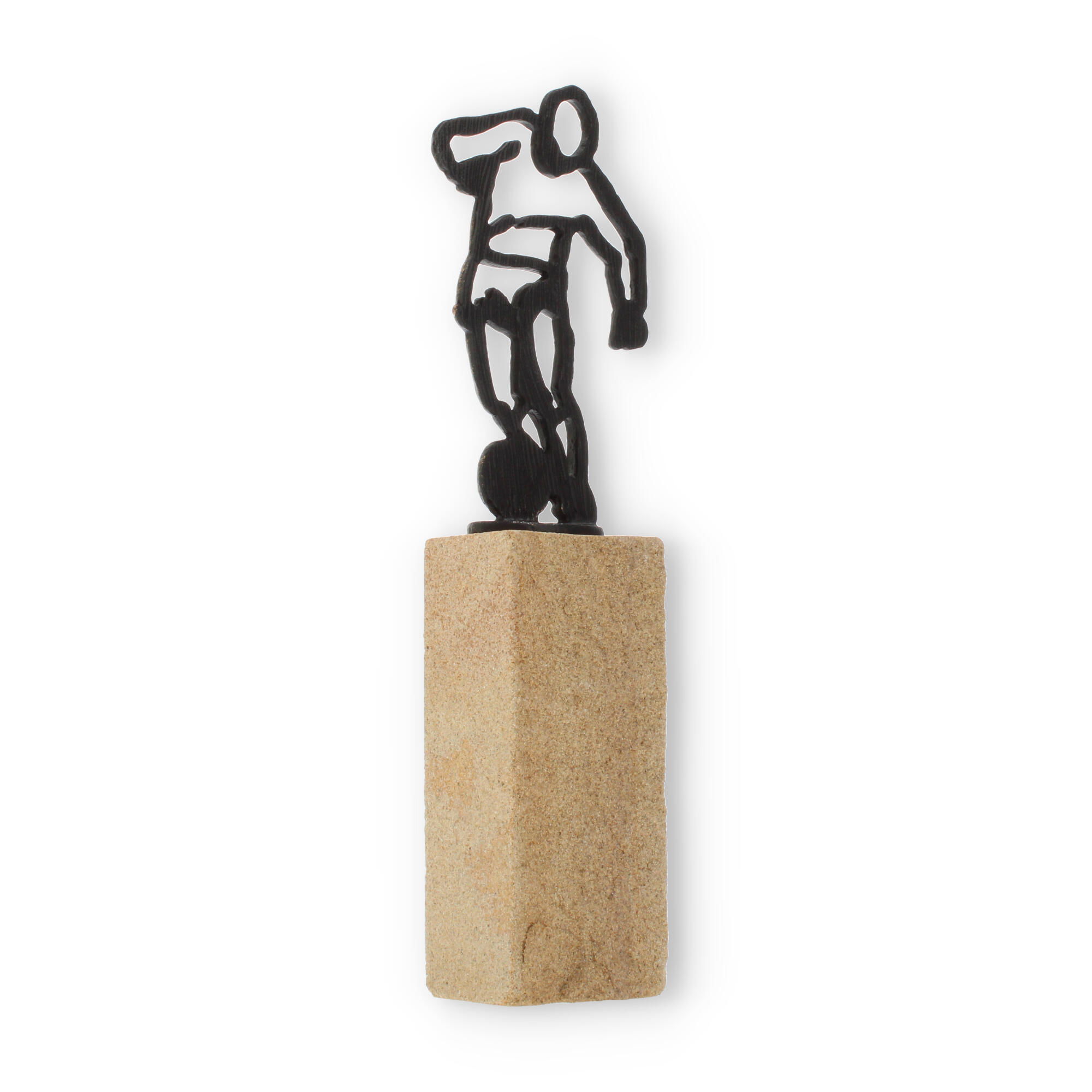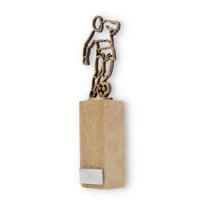 Que ce soit pour un tournoi local ou une grande compétition, cette coupe s'intègre parfaitement à tout contexte et inspire les participants. Le contraste entre la figurine en vieux or et le socle en grès crée une composition visuelle harmonieuse, attirant tous les regards.