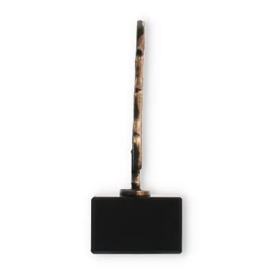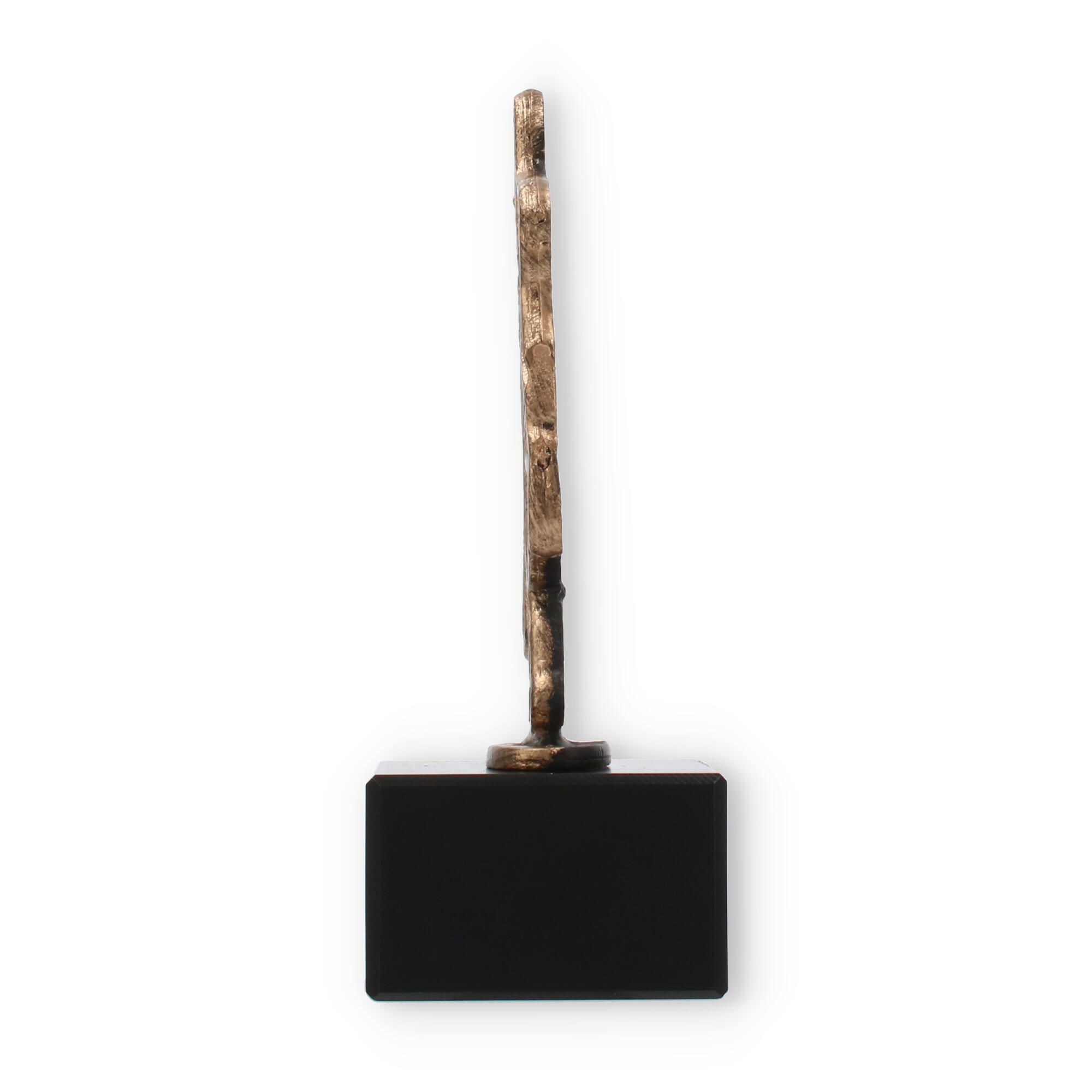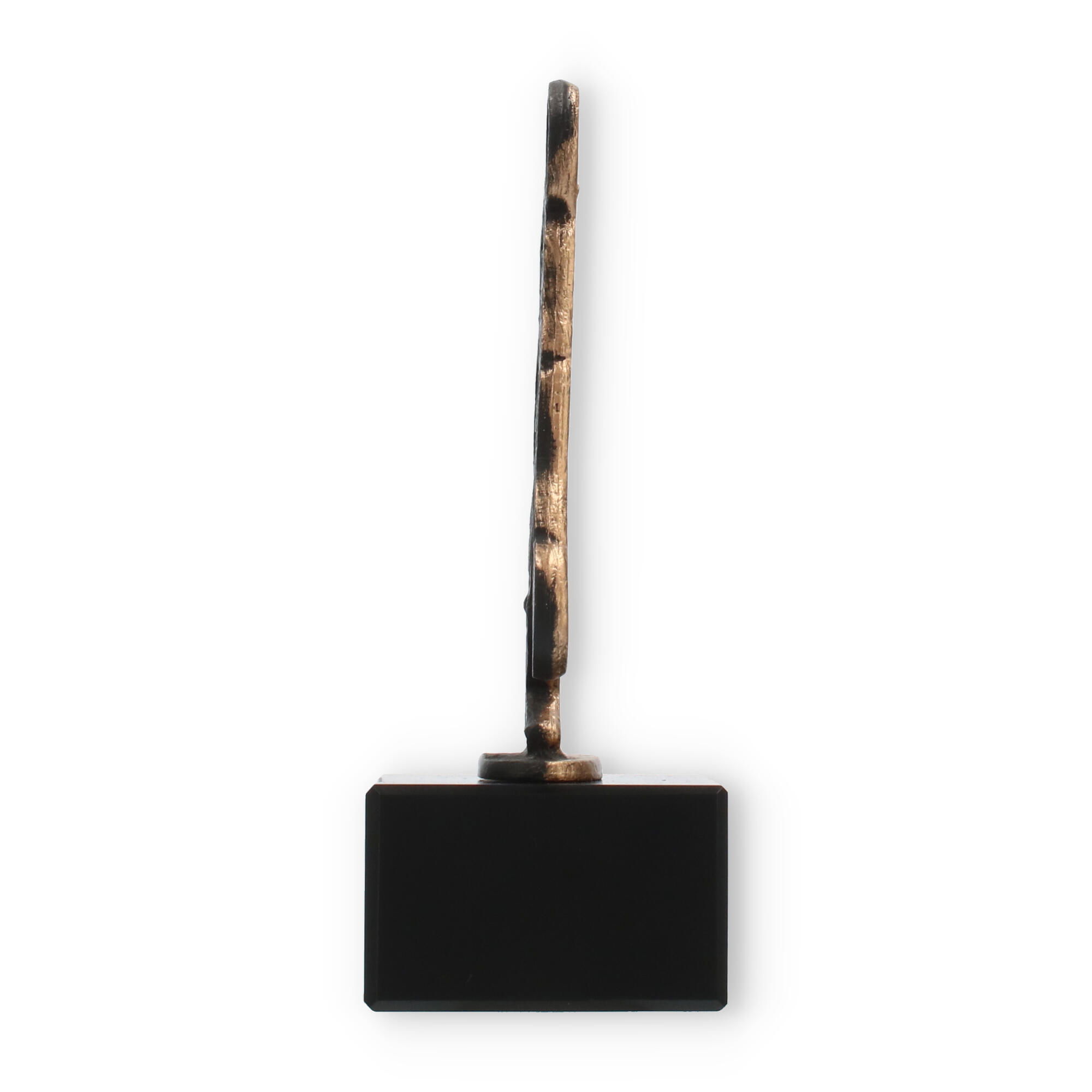 Le socle en marbre noir de cette coupe apporte une touche de sophistication et de stabilité. D'une hauteur de 16,9 cm et d'un poids de 570 g, elle offre une prise en main agréable et une présence remarquée. La base est en marbre véritable, assurant un contraste élégant avec la teinte vieil or de la figure en Zamac.
