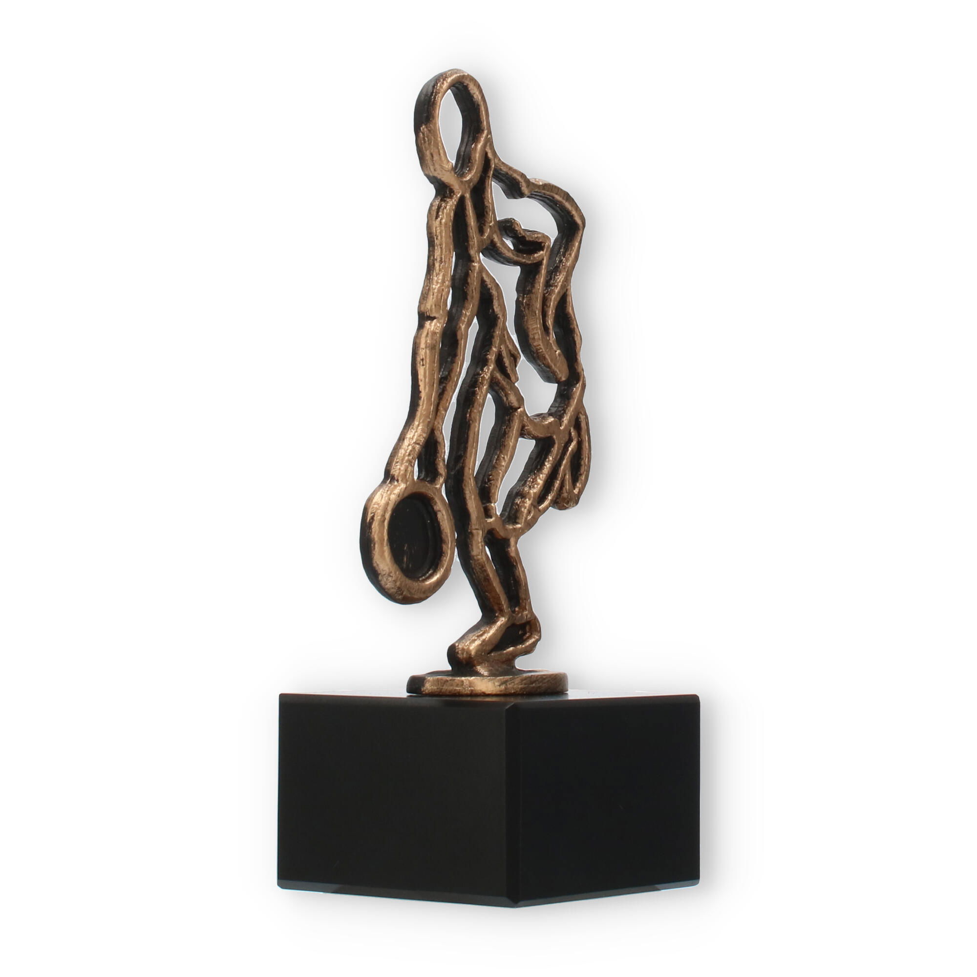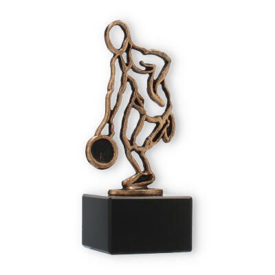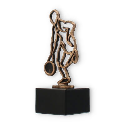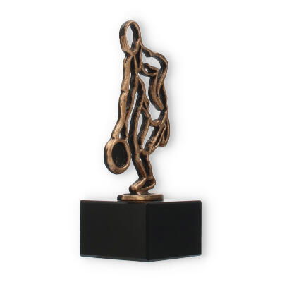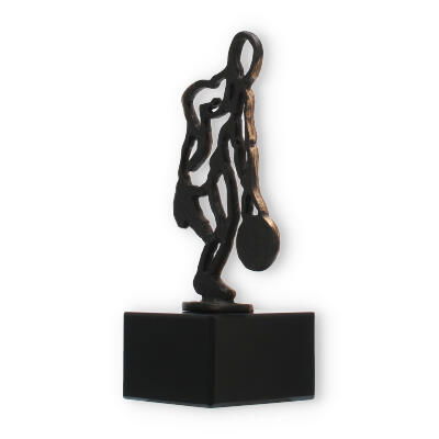 Les matériaux choisis pour ce trophée allient robustesse et esthétique. Le Zamac, alliage de zinc, d'aluminium, de magnésium et de cuivre, confère à la statue une finition de haute qualité sans la rendre trop lourde. Le marbre noir du socle augmente encore la valeur perçue de cette pièce.