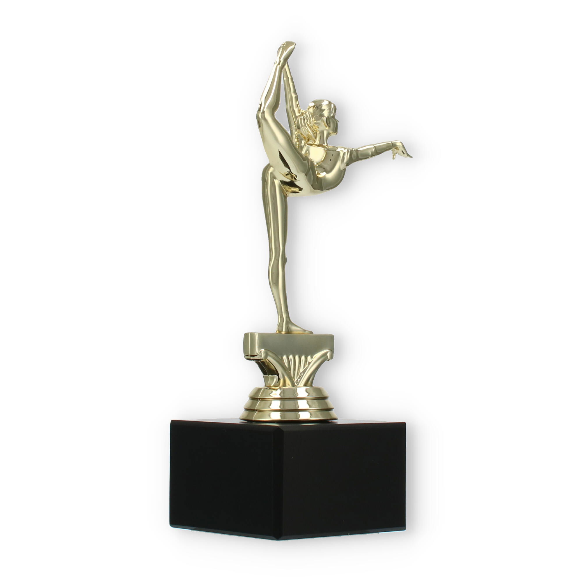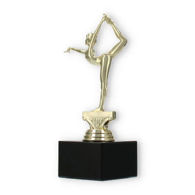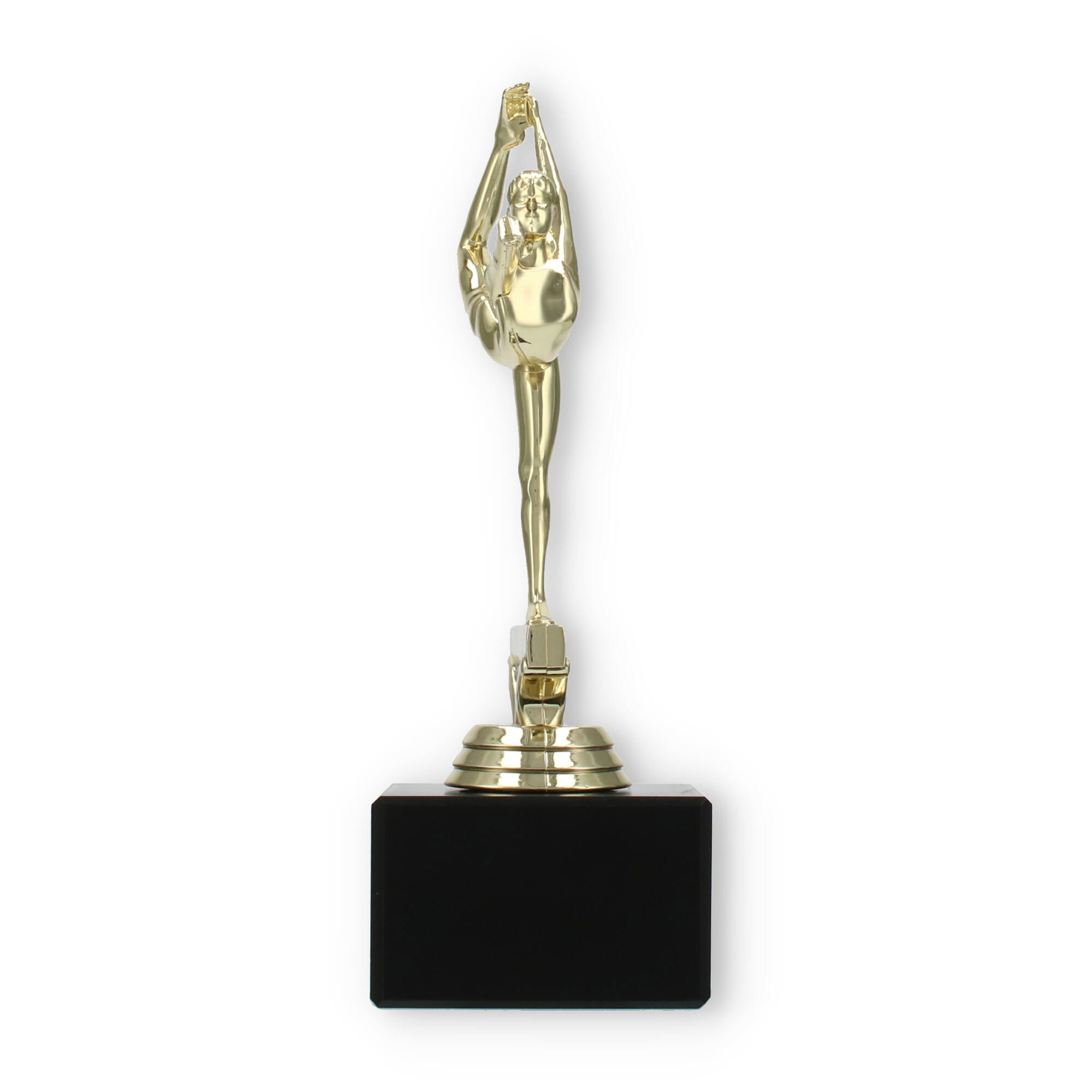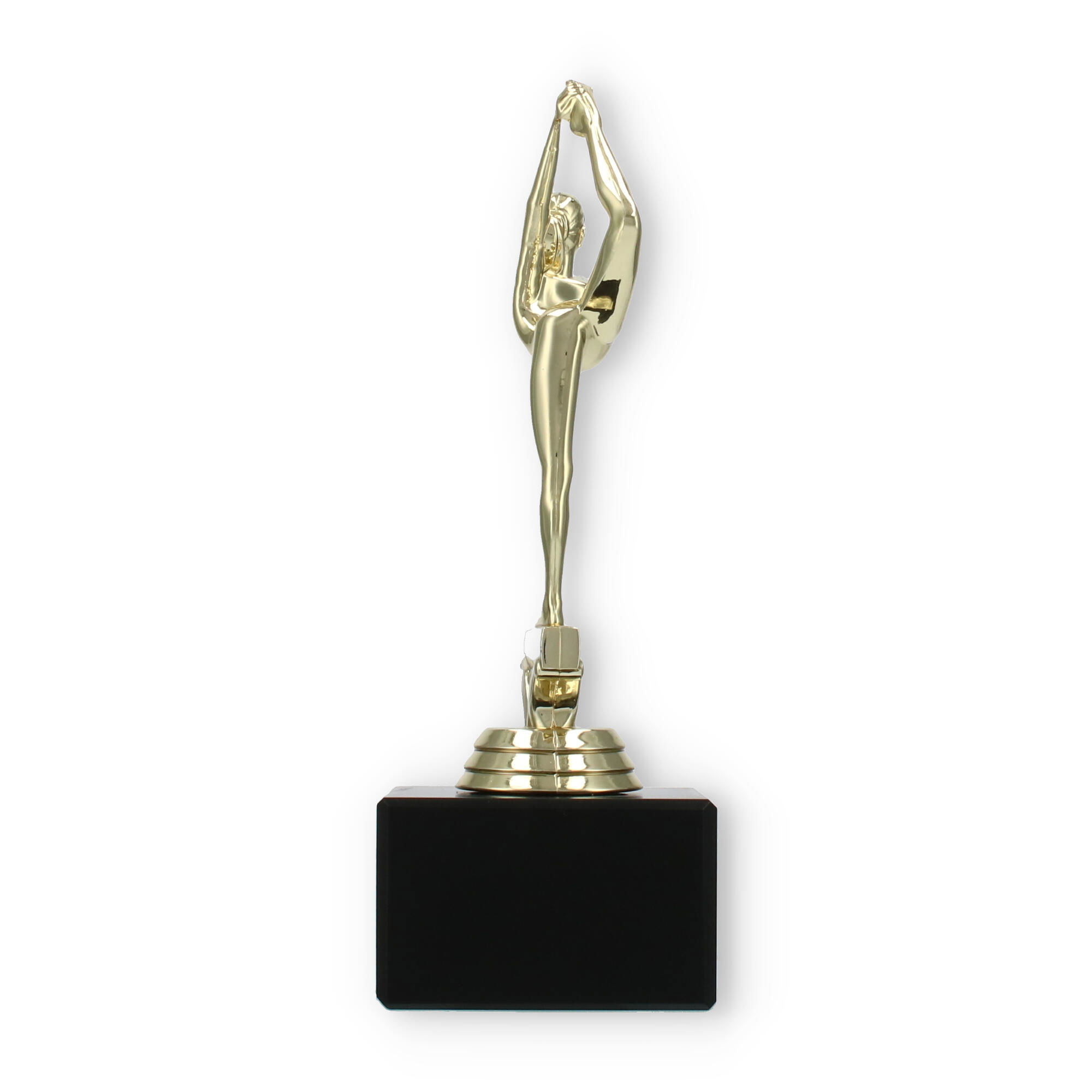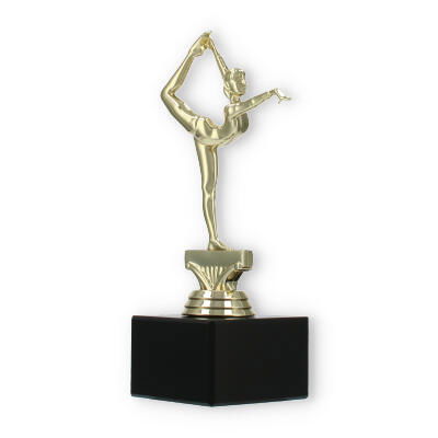 La coupe Gymnastique dames se distingue par son design élégant et sa finition minutieuse. Chaque détail, depuis la figure en plastique doré représentant une gymnaste en pleine grâce, jusqu'au socle en marbre noir, est conçu pour offrir une présence imposante lors des remises de prix.