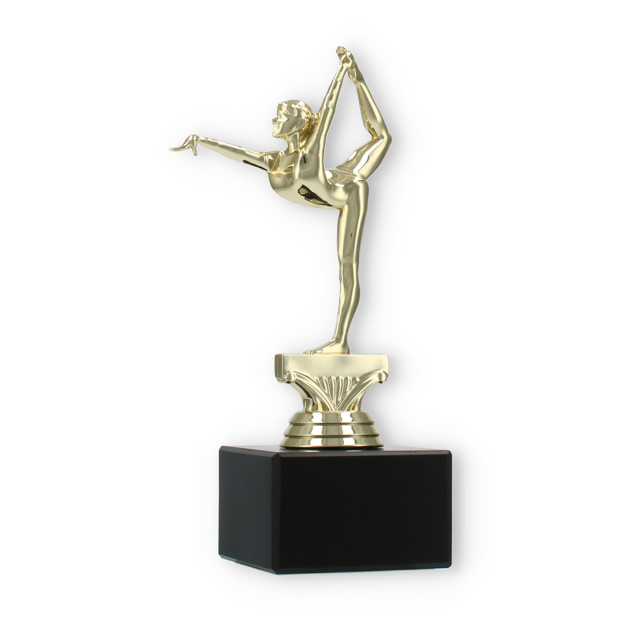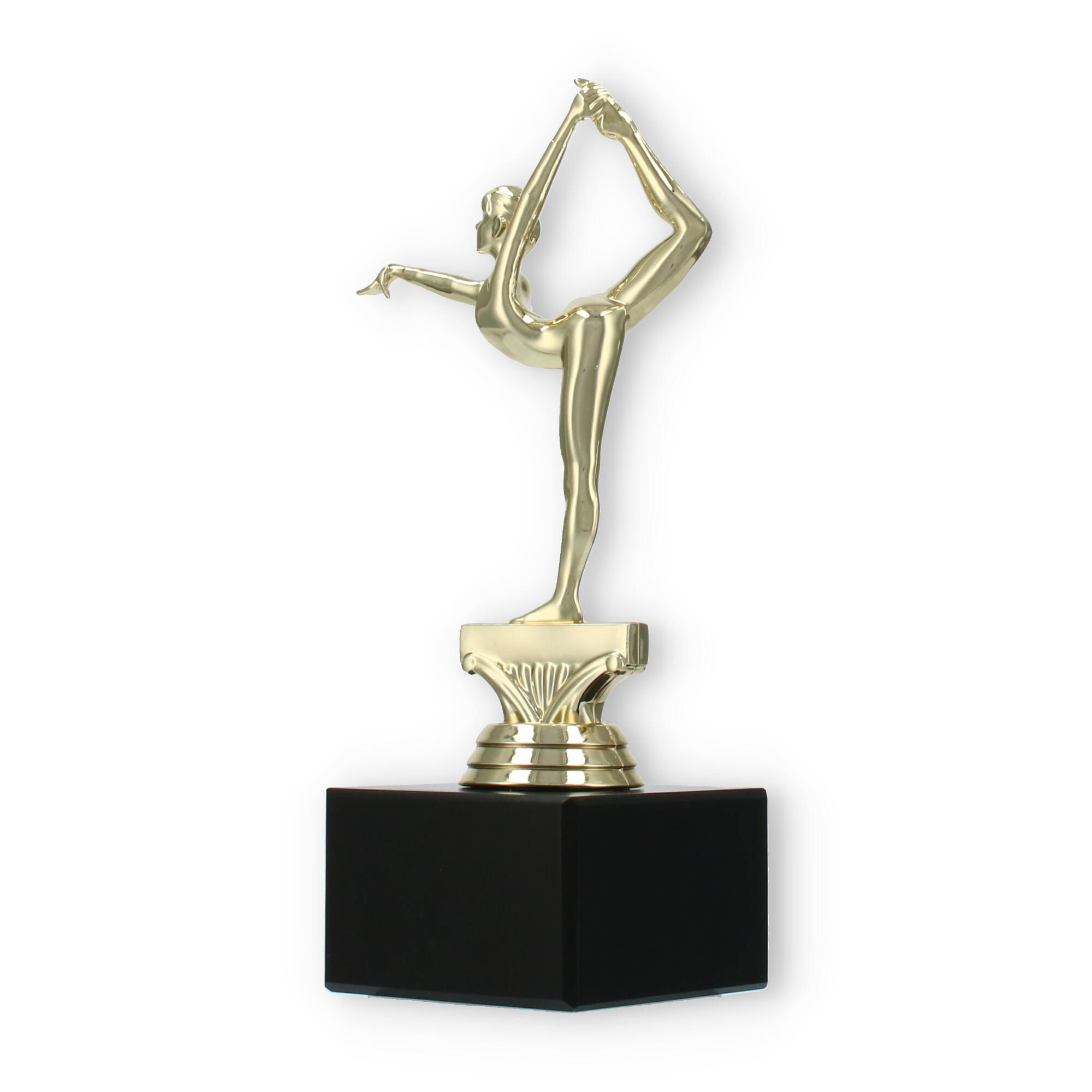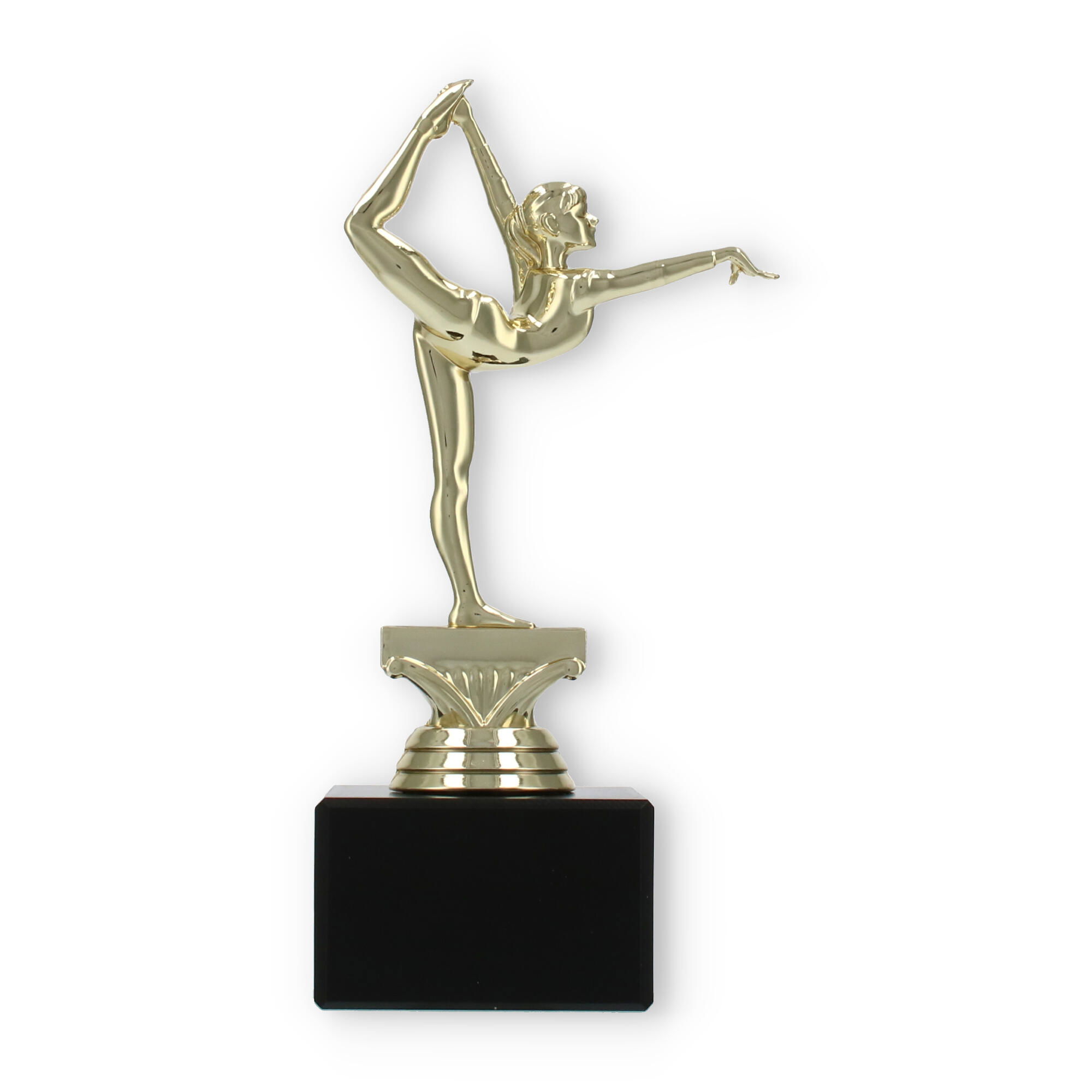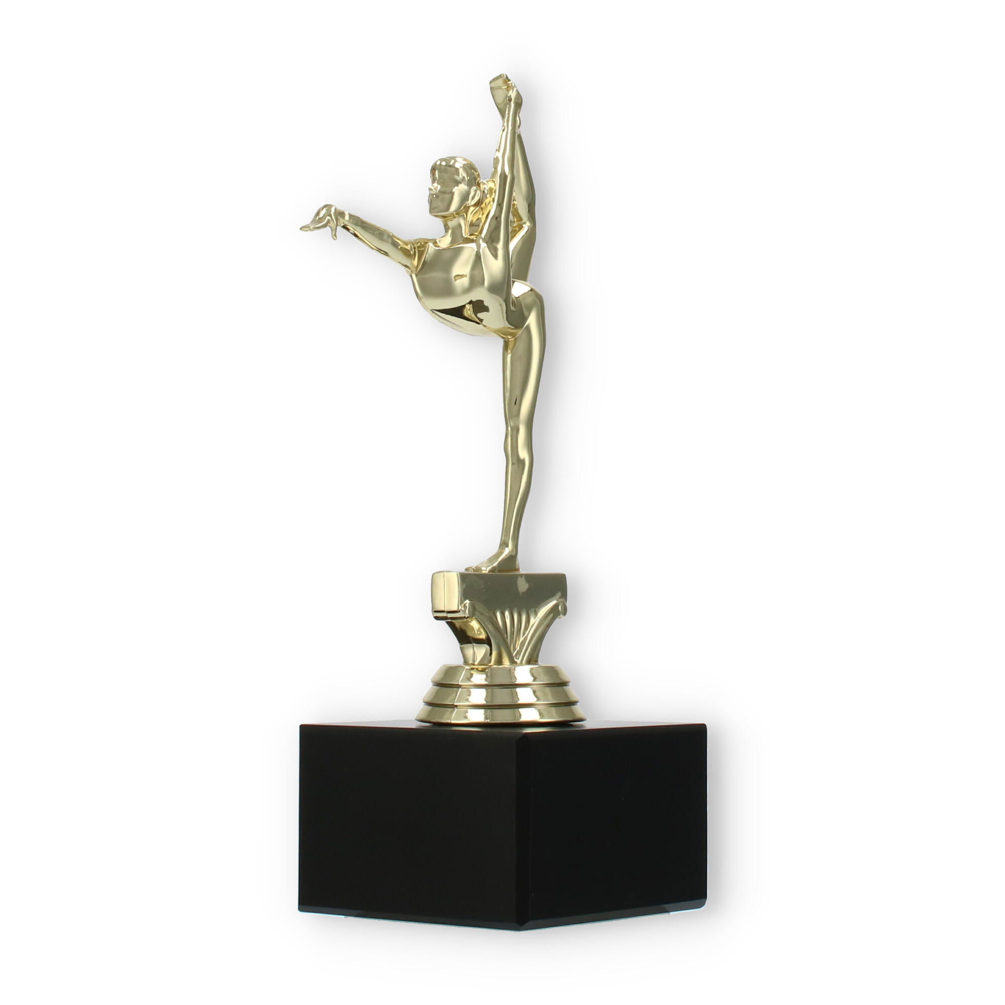 La coupe Gymnastique dames se distingue par son design élégant et sa finition minutieuse. Chaque détail, depuis la figure en plastique doré représentant une gymnaste en pleine grâce, jusqu'au socle en marbre noir, est conçu pour offrir une présence imposante lors des remises de prix.