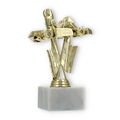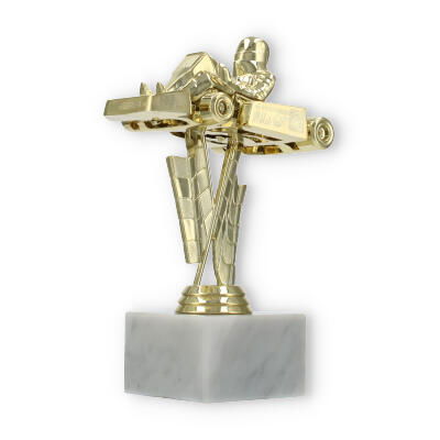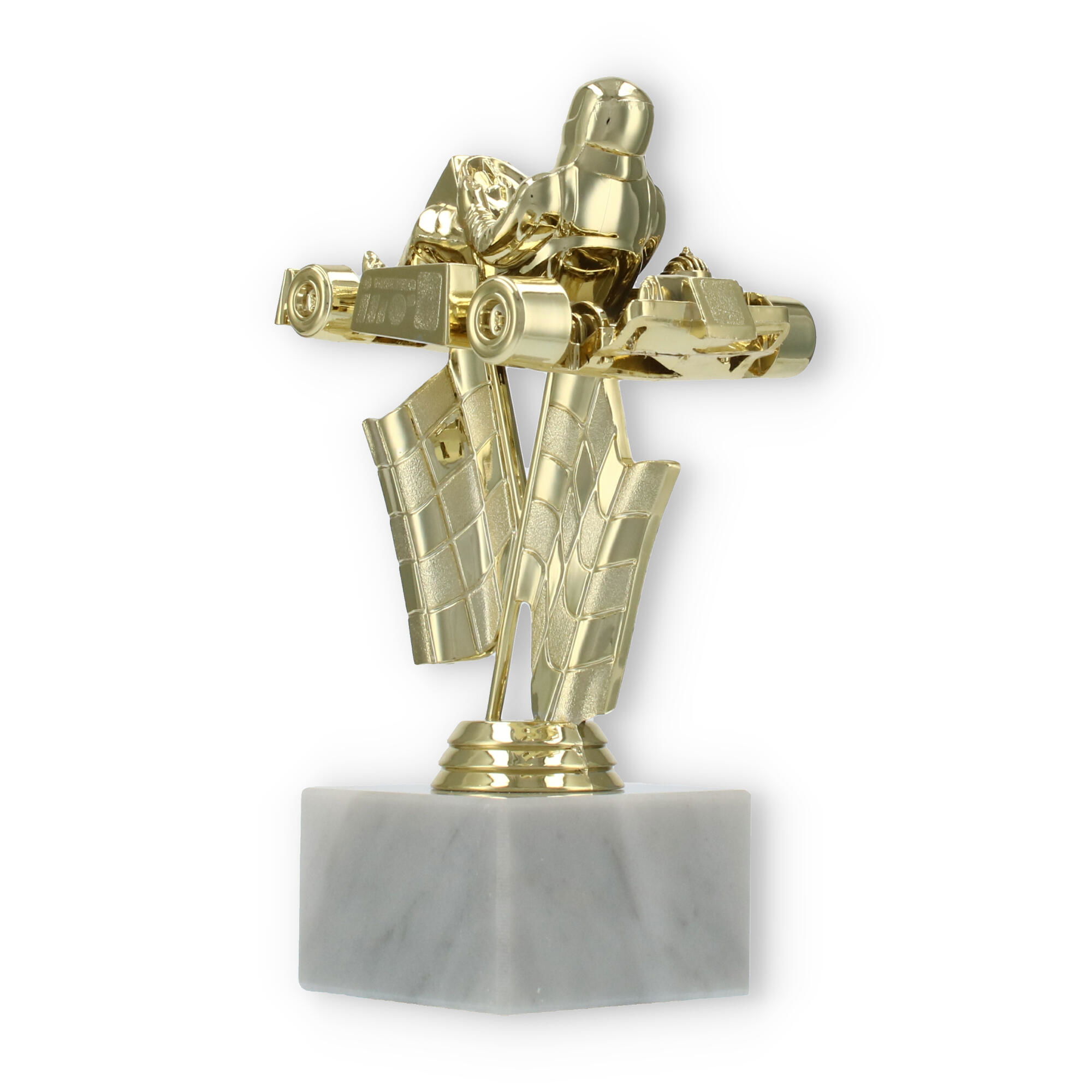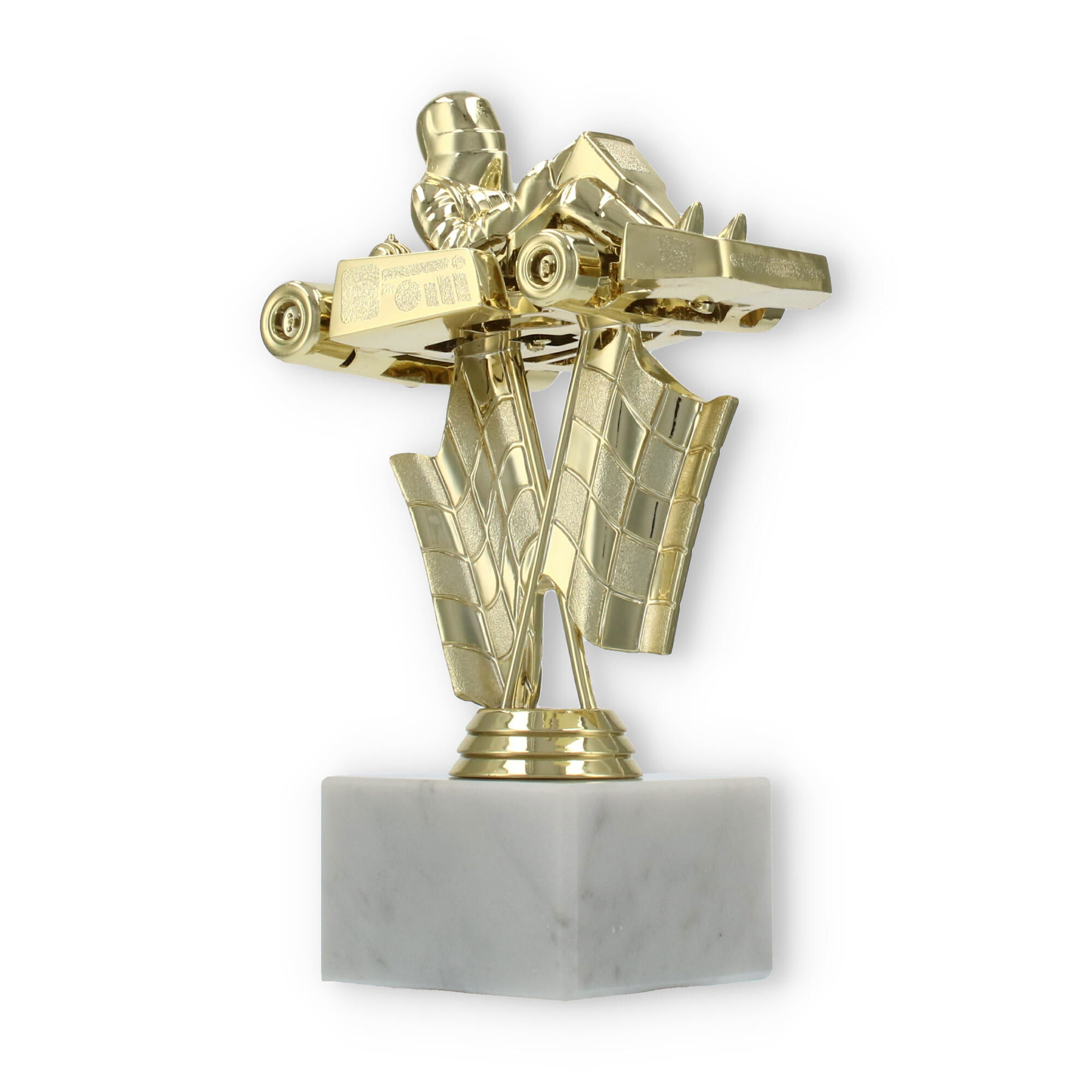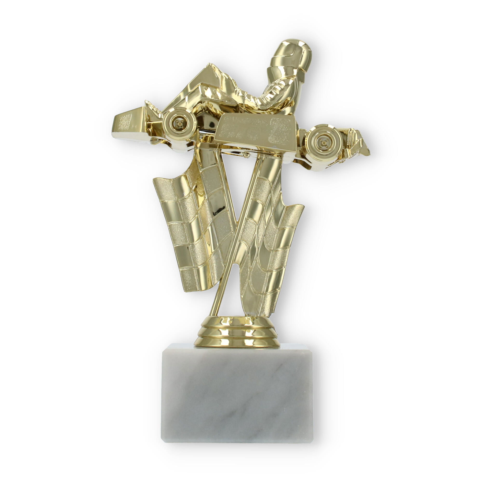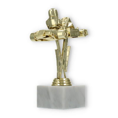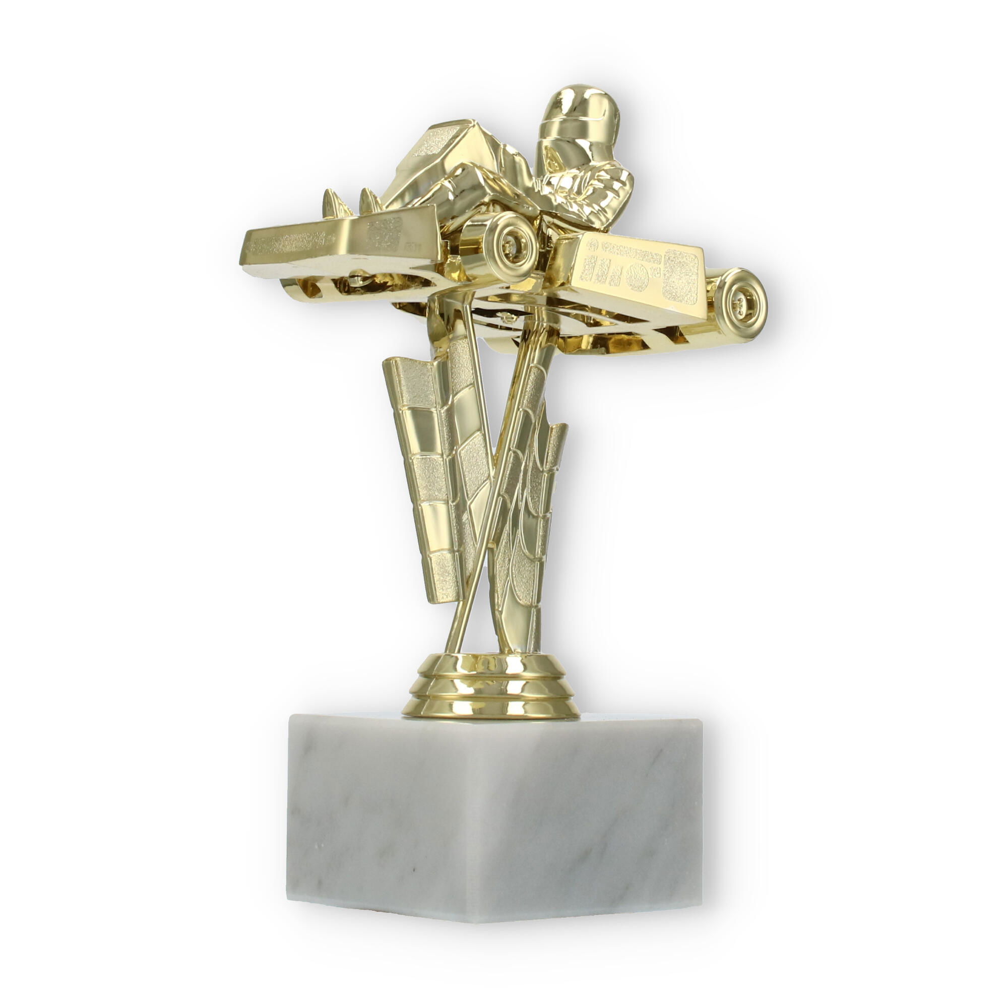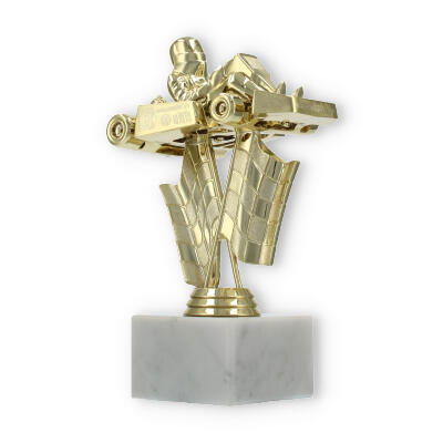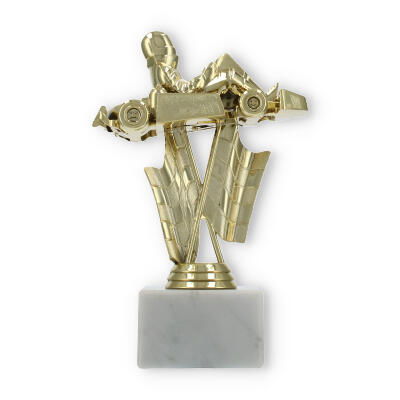 Le socle en marbre, agrémenté de veines subtiles, ajoute une touche de sophistication, tandis que la figurine détaillée évoque la vitesse et la précision des courses de karting. Les gagnants ressentiront une émotion particulière en recevant cette récompense unique pour leurs exploits.