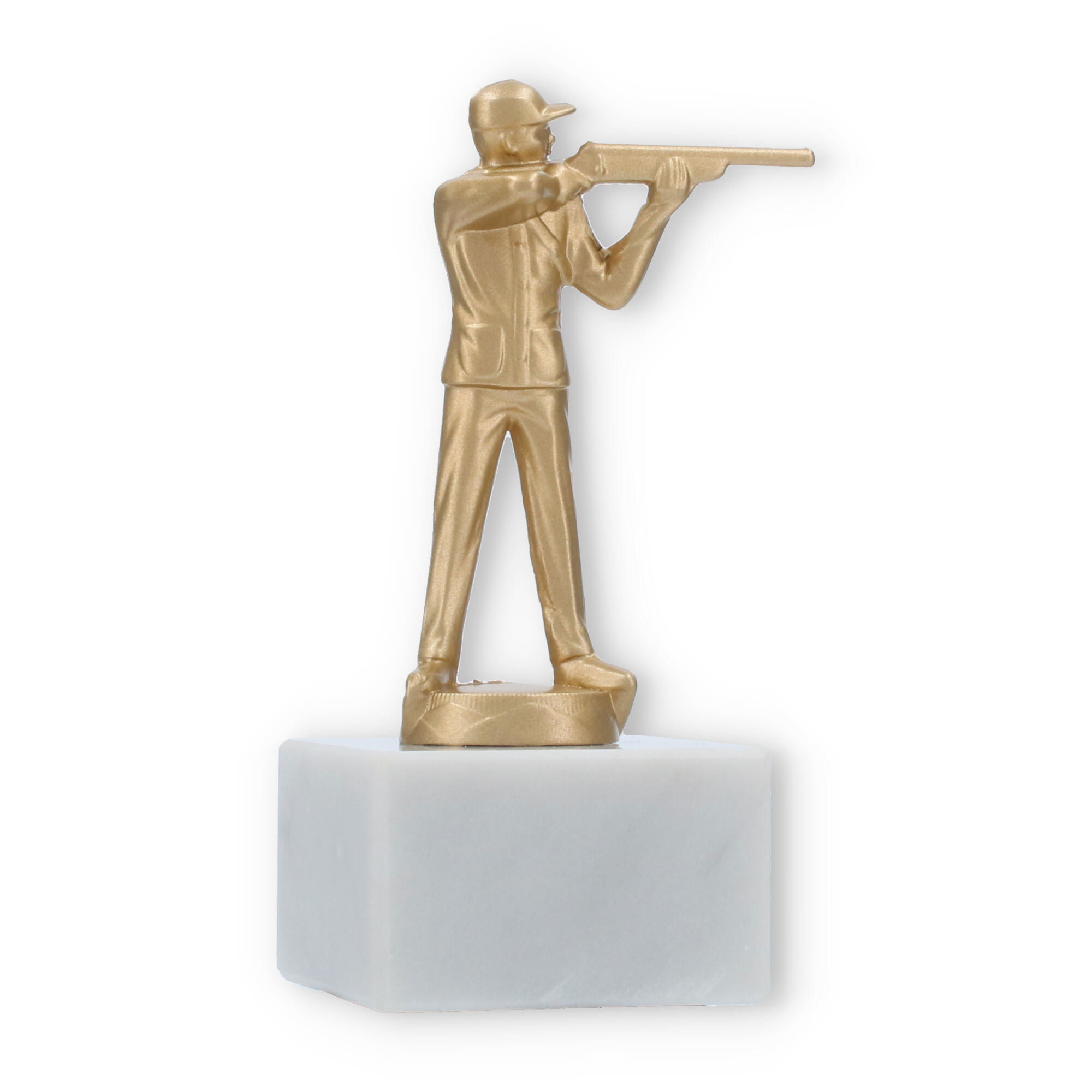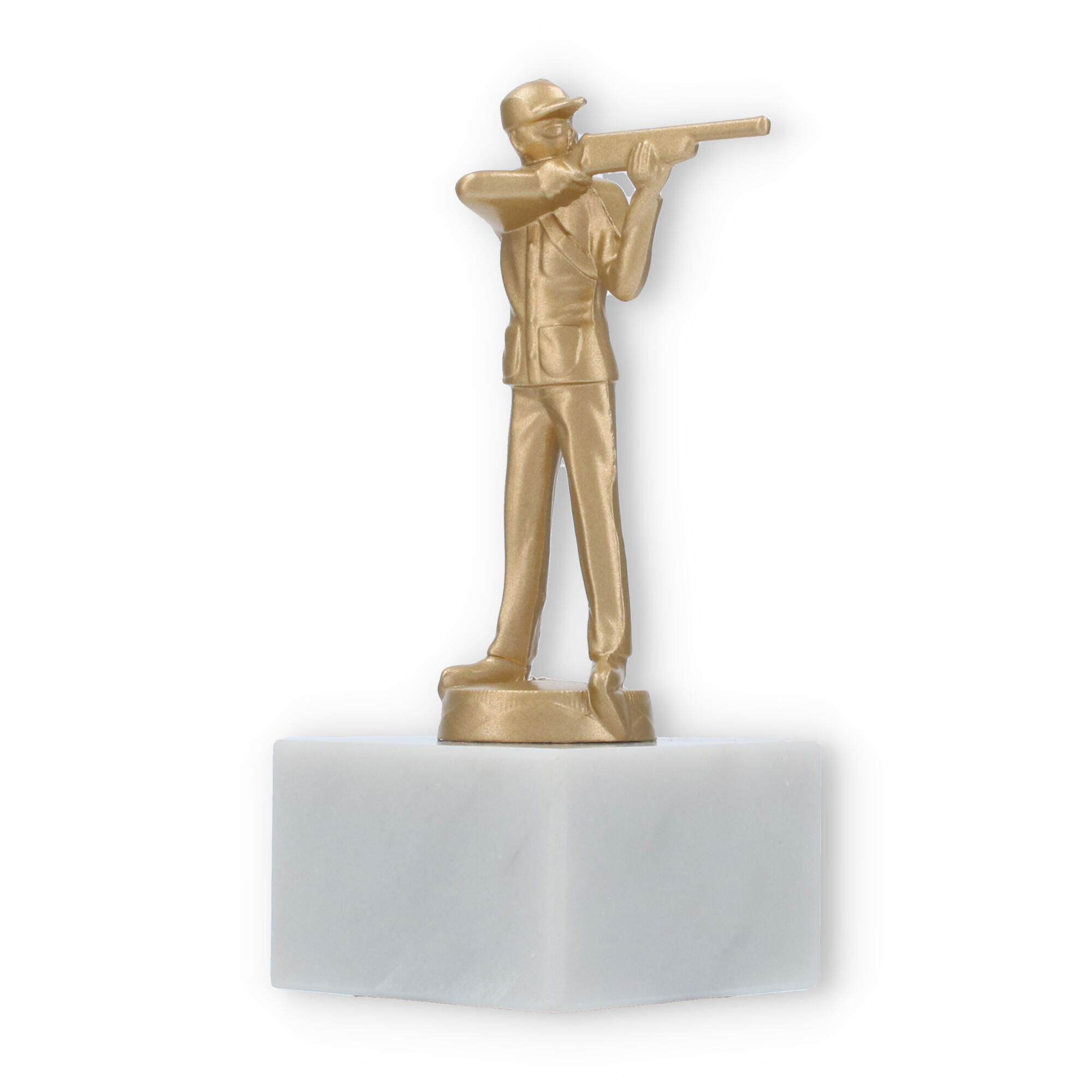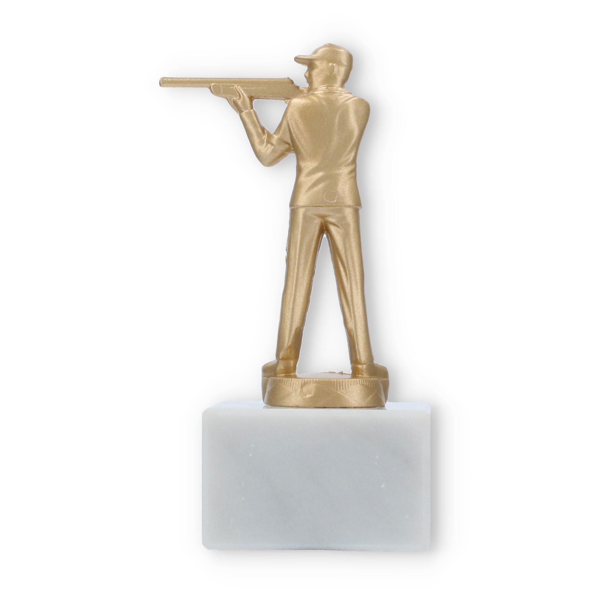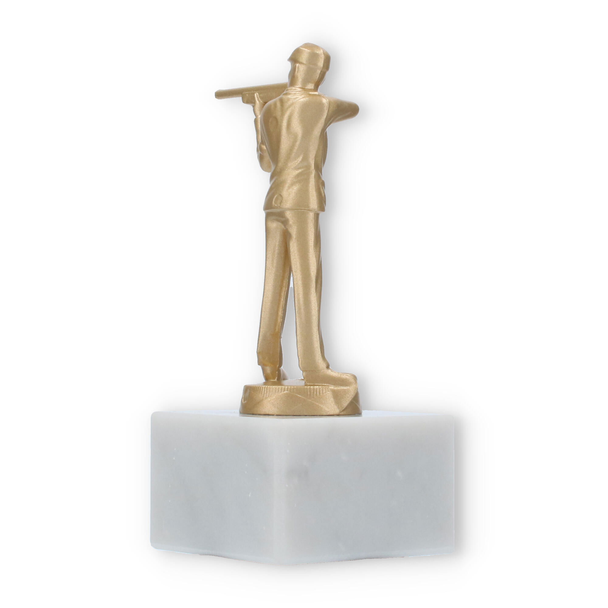 La Coupe Figure métallique coup de fusil est conçue pour honorer les spécialistes du tir à la carabine. Cette figure dorée posée sur un socle en marbre blanc crée une impression forte et élégante lors des cérémonies de remise de prix.