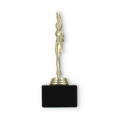 En plastique doré et montée sur un socle robuste en marbre noir, cette figurine allie esthétisme et solidité. La hauteur totale de 18,6 cm en fait une pièce prestigieuse qui trônera fièrement sur une étagère ou dans une vitrine. Le socle de 65 mm sur 65 mm procure une base stable qui met encore plus en valeur la finesse des détails de la figure.