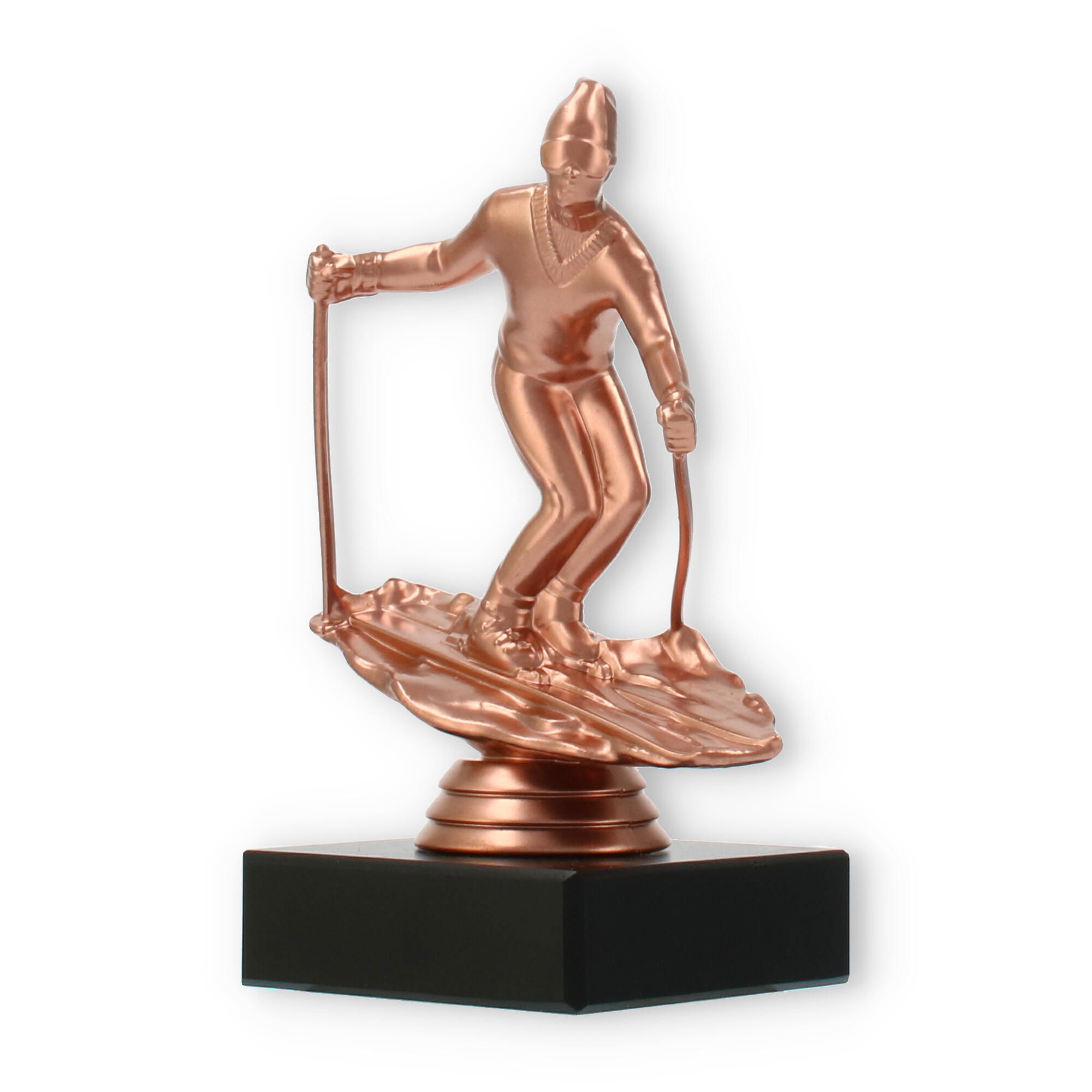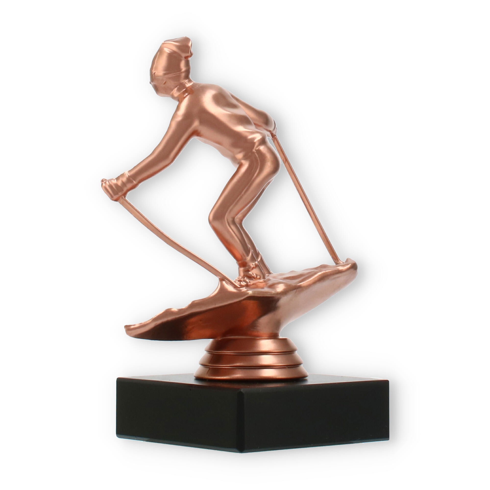 Imaginons le moment où tu présentes cette coupe au gagnant : le skieur en plein slalom cuivré, parfaitement détaillé, portant une tenue de sport hivernale complète avec bonnet et lunettes de protection, capture l'essence même de ce sport dynamique. Le socle en marbre lui donne une base solide et stable, accentuant la majesté de l'ensemble.