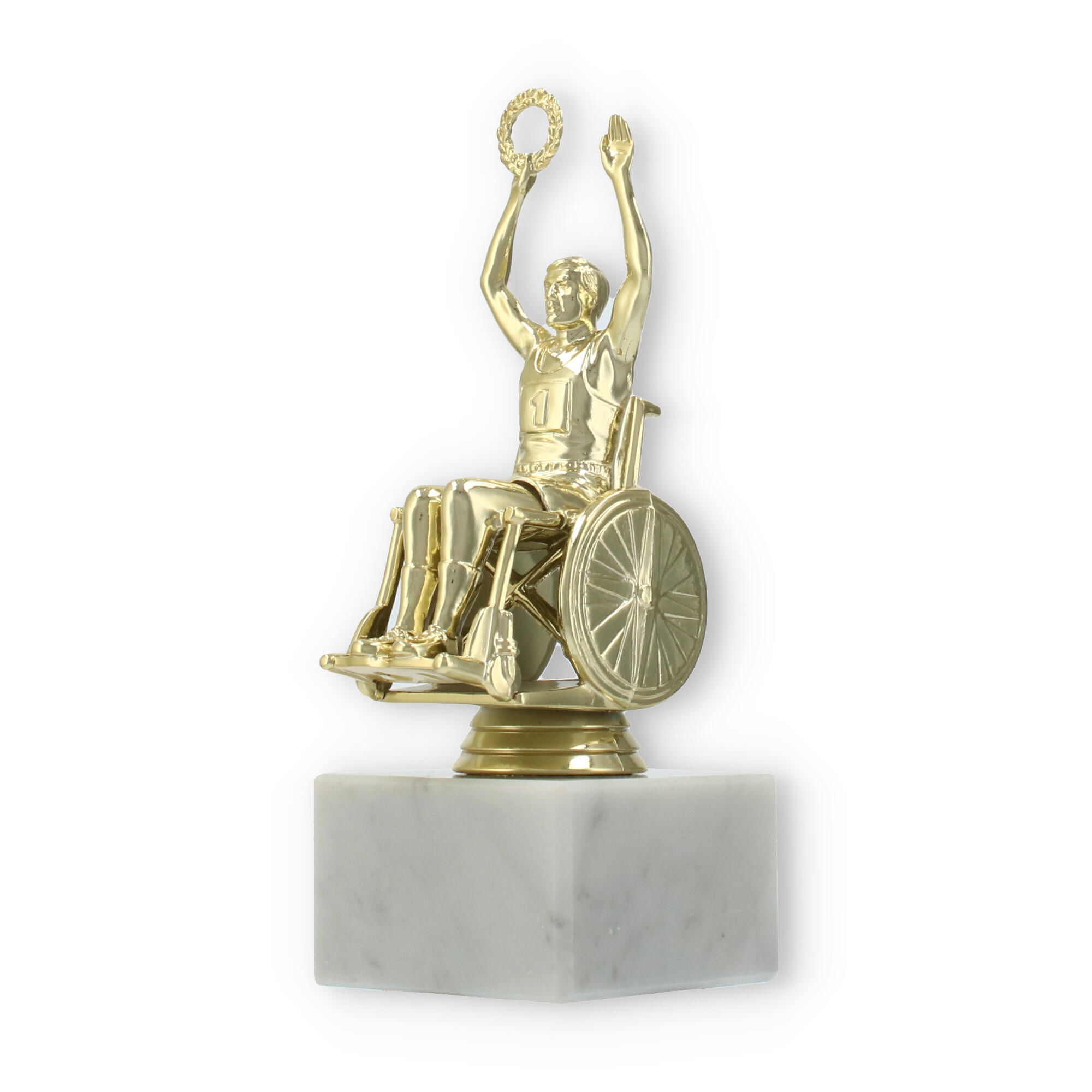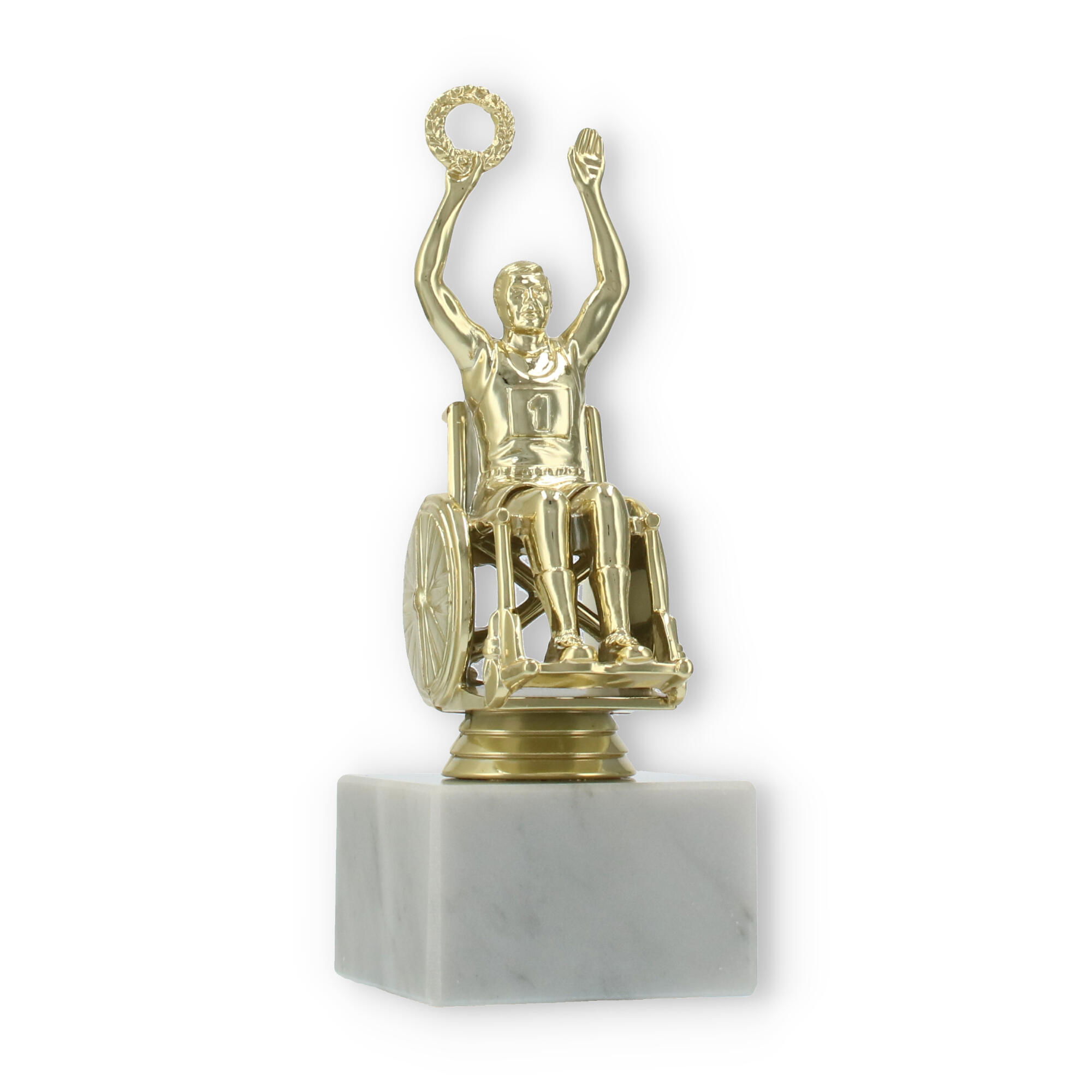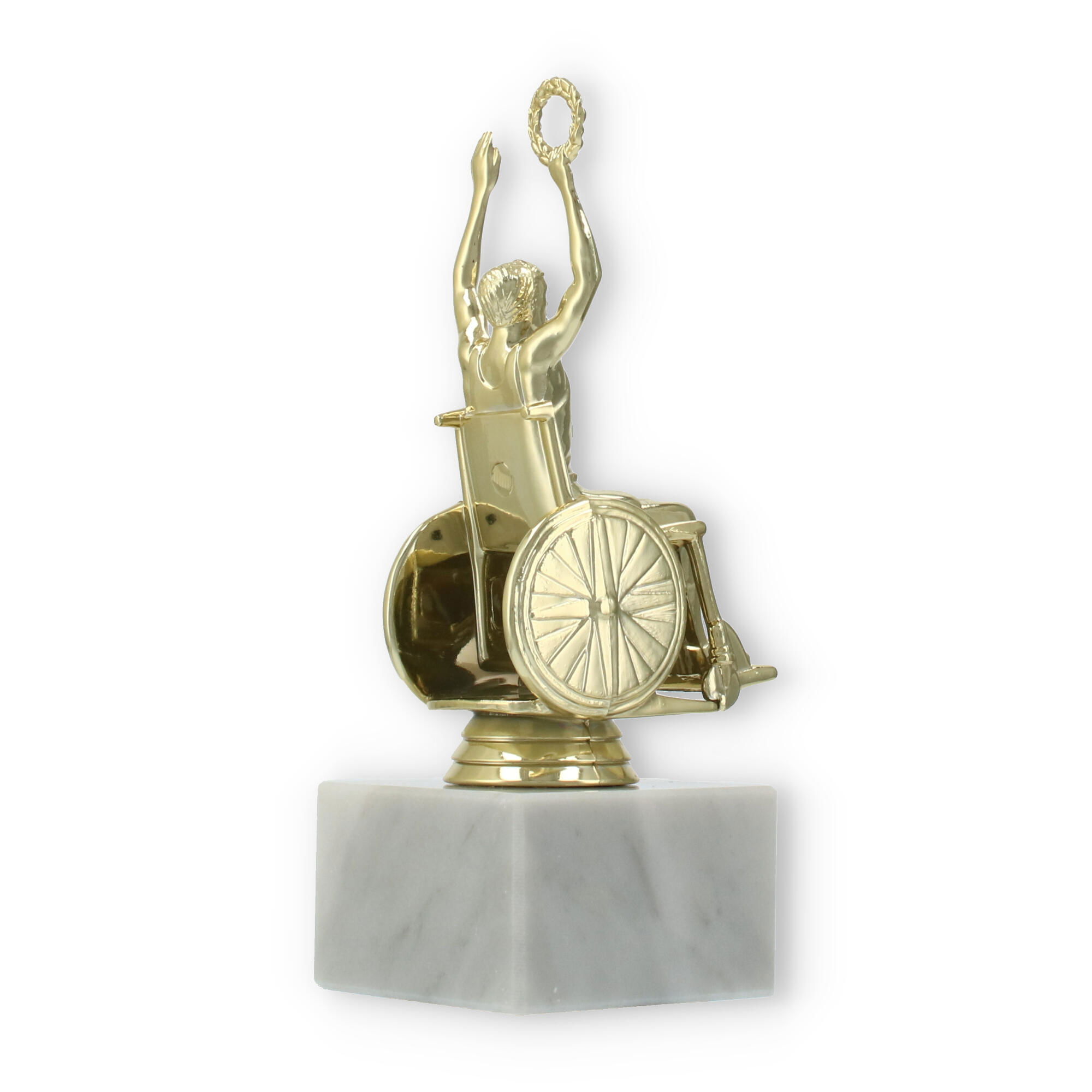 Le Trophée fauteuil roulant est conçu spécifiquement pour célébrer des prouesses incroyables dans le cadre des compétitions sportives en fauteuil roulant. La figurine dorée représente un athlète en position de victoire, tenant un laurier, symbole de triomphe et d'accomplissement. Celui-ci est monté sur un élégant socle en marbre blanc, apportant une touche de classe à chaque remise de prix.