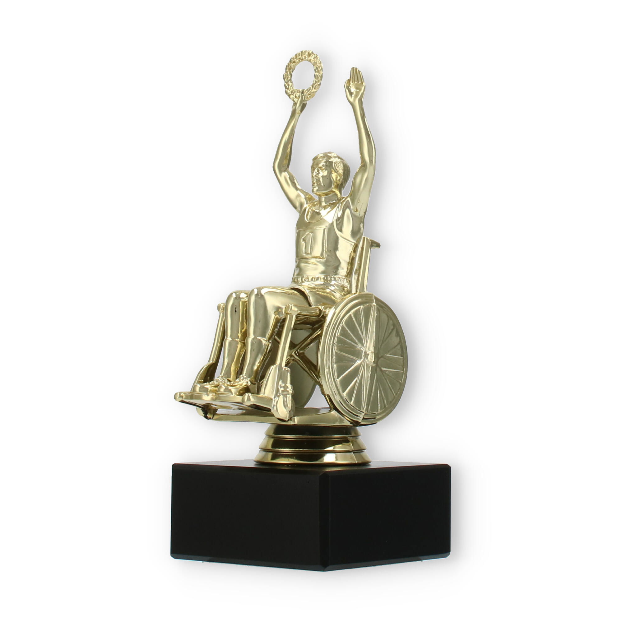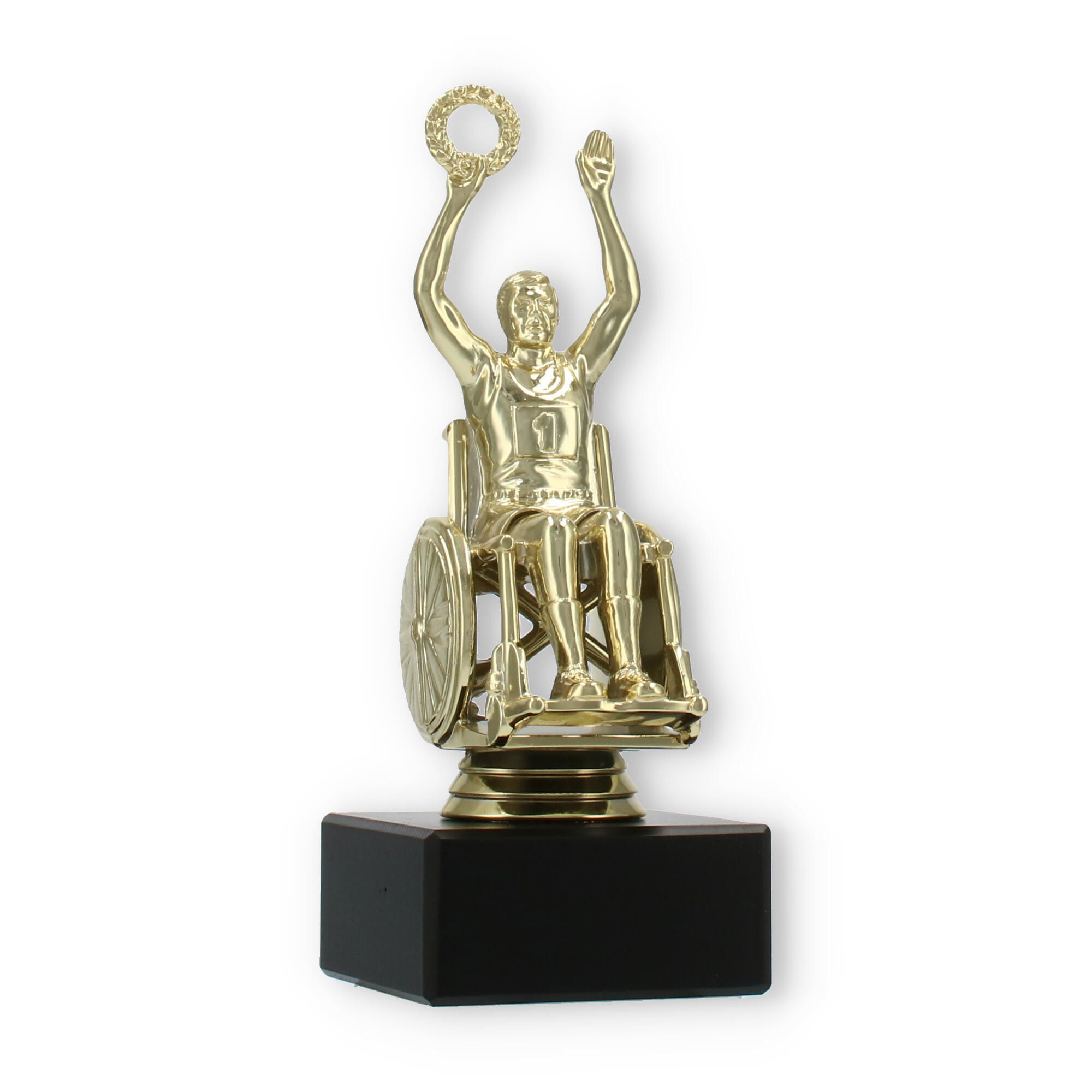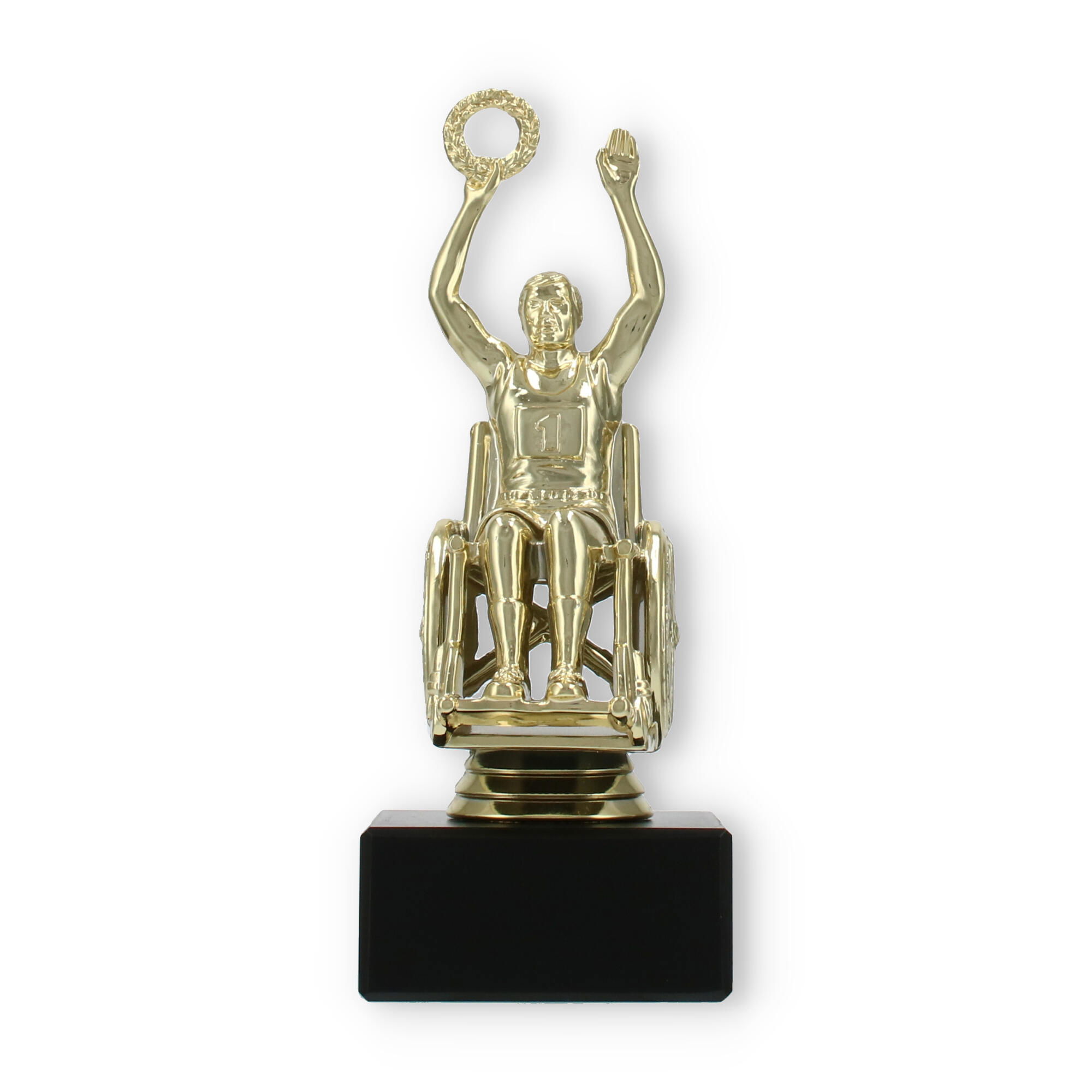La coupe Fauteuil roulant or attire l'attention lors de chaque cérémonie de remise de prix. Avec son design unique, elle est spécialement conçue pour honorer les athlètes en fauteuil roulant. La figure en plastique doré, représentant une personne en fauteuil roulant brandissant un laurier, capte immédiatement le regard et témoigne d'une reconnaissance méritée. Le socle en marbre noir ajoute une touche de prestige, rendant cette coupe particulièrement distinguée.