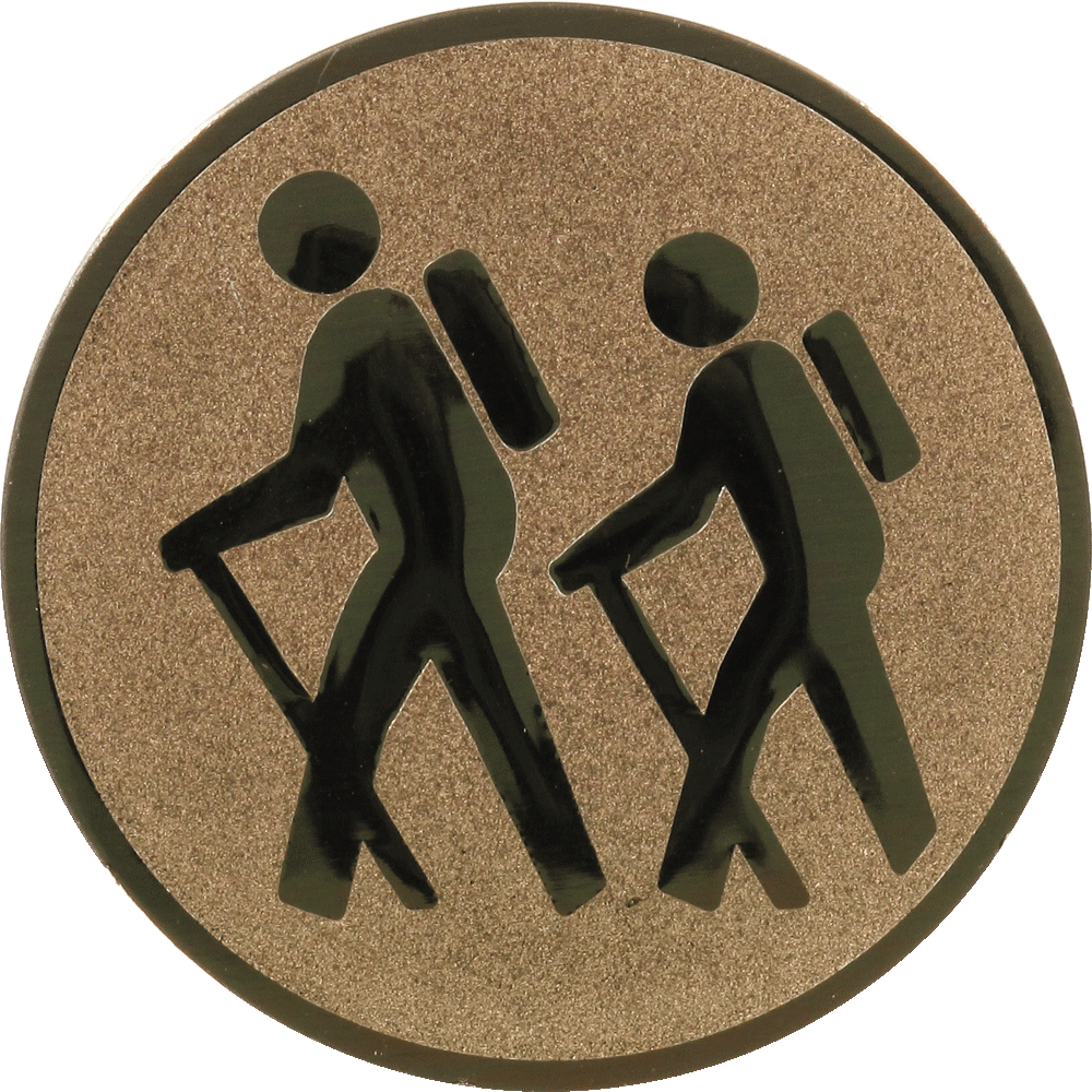 Cet emblème en aluminium coloris bronze de 25 mm, illustrant des randonneurs, est conçu pour embellir vos récompenses. Idéal pour rendre vos trophées uniques, il marie parfaitement robustesse et esthétisme.