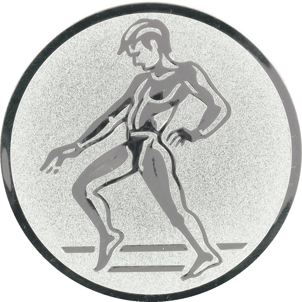 Fabriqué en aluminium robuste, cet emblème arbore une gravure nette d'un athlète en pleine action, capturant parfaitement l'essence de la force et de la détermination. Son coloris argenté apporte une allure raffinée, idéale pour les cérémonies de remise de prix.