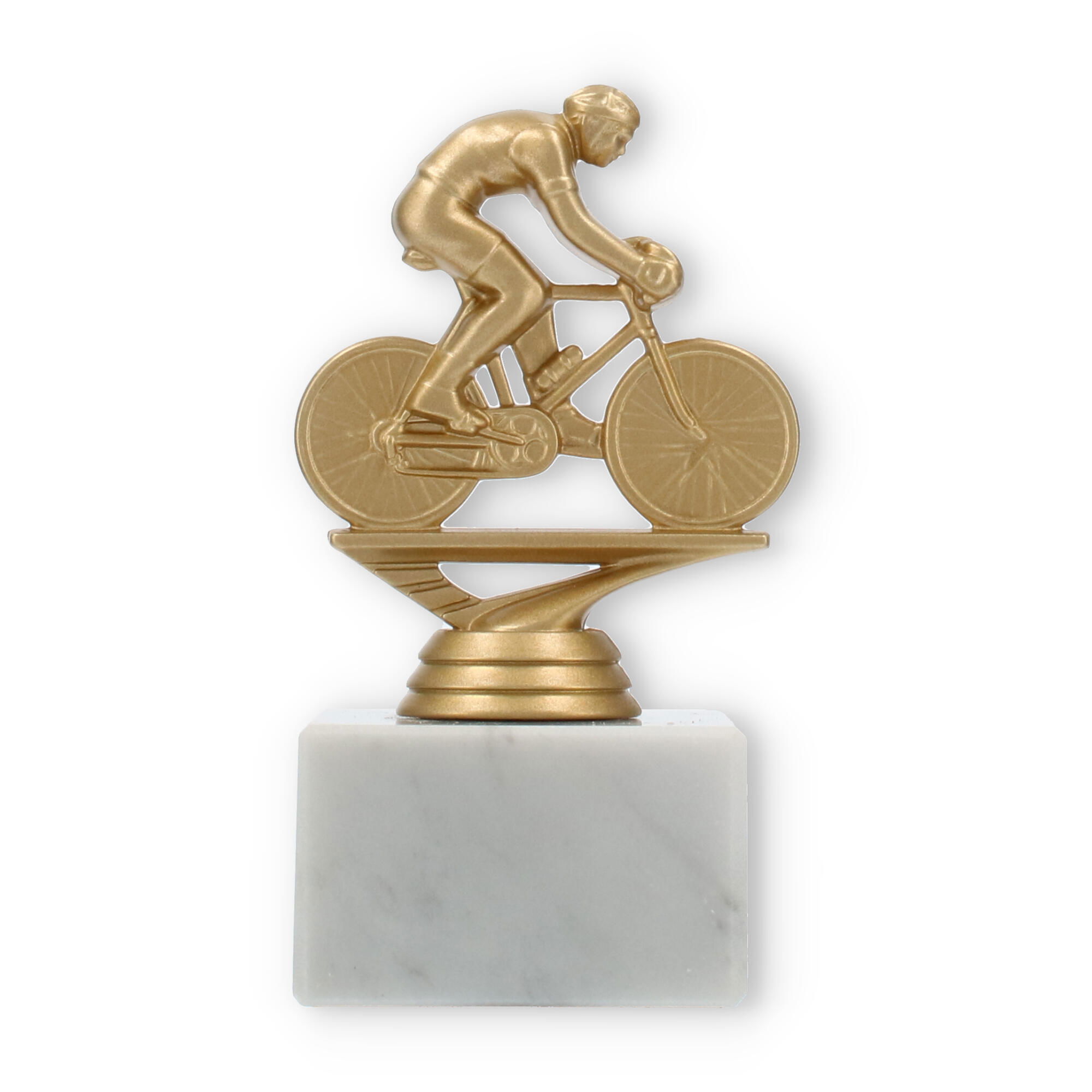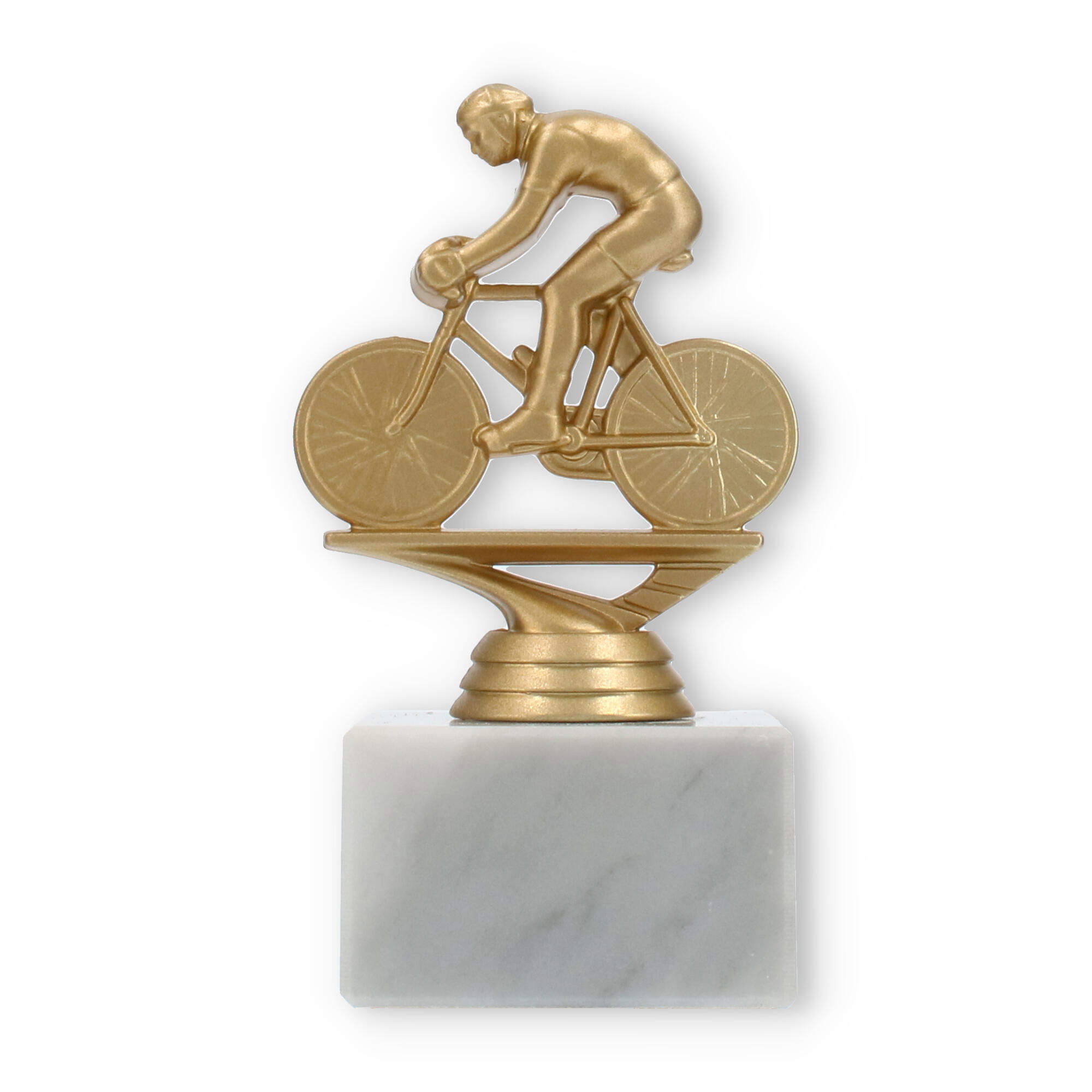 Découvre notre coupe figure en plastique représentant un vélo de course en teinte or métallique sur un socle en marbre blanc. Parfaite pour honorer tes champions de cyclisme. Gravure personnalisable disponible.