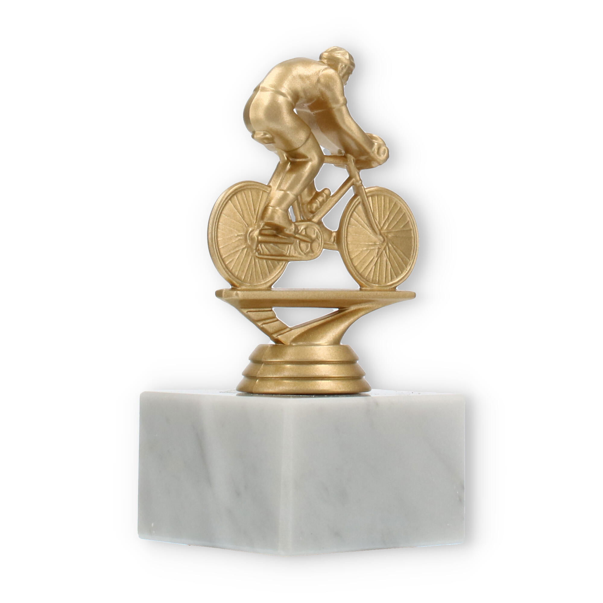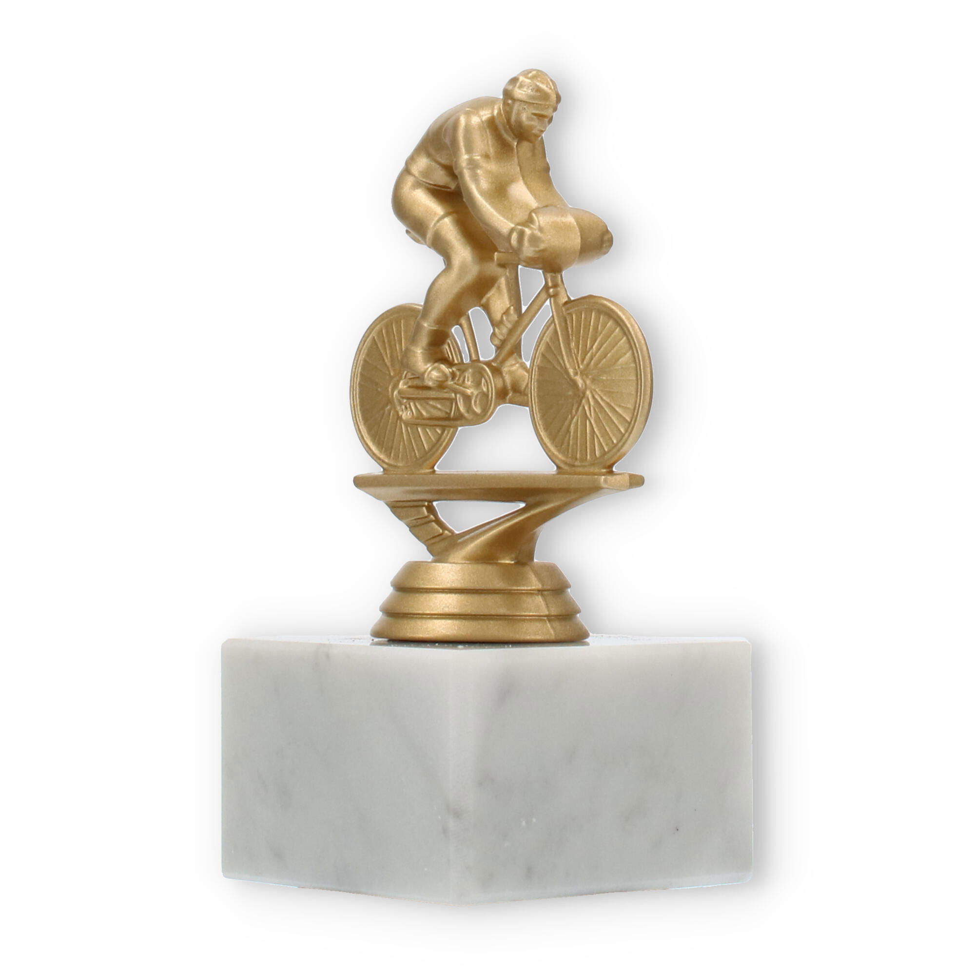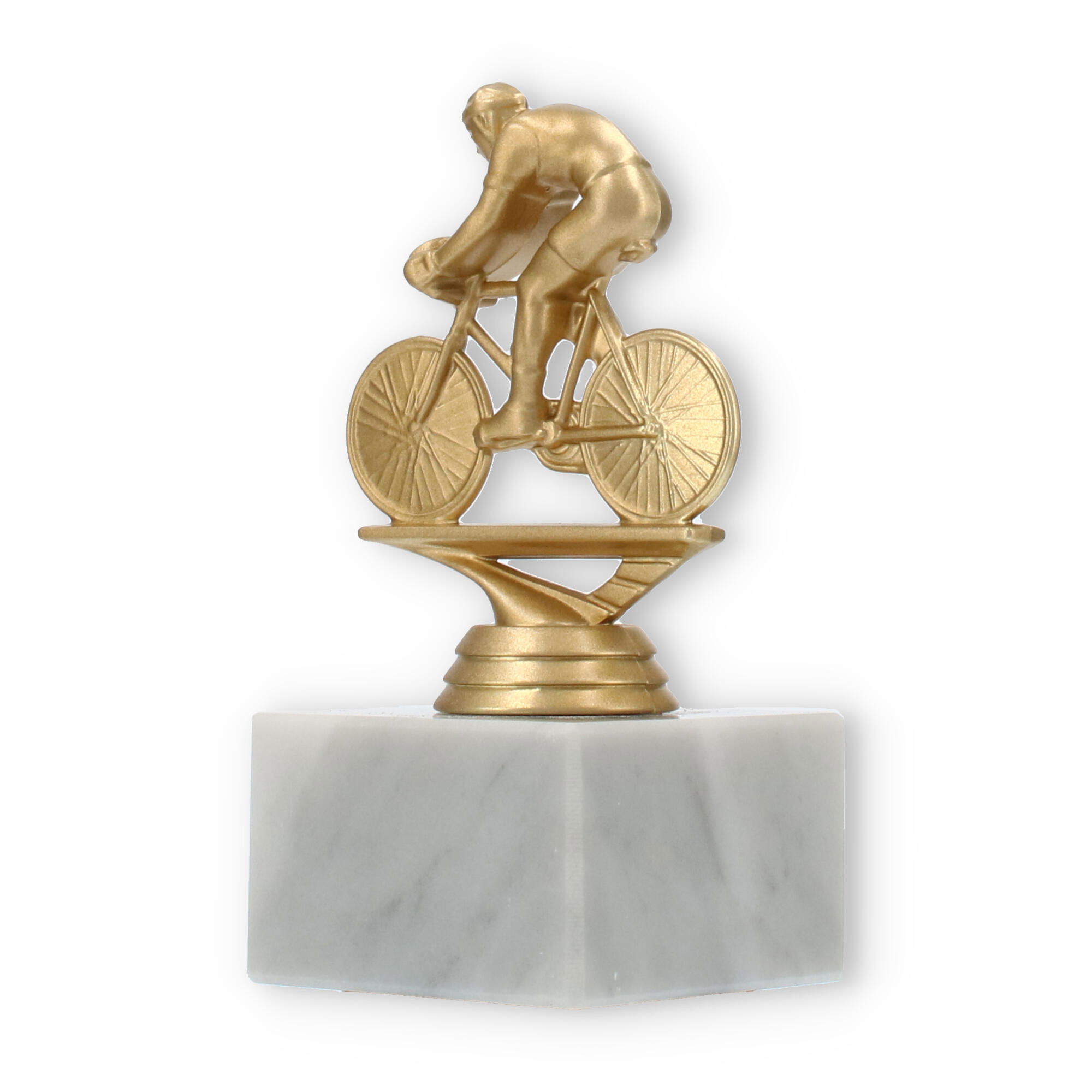 Fabriquée en plastique léger avec une impression dorée raffinée, la figure représente un cycliste en pleine action, capturant l'essence de la vitesse et de la détermination. Le cycliste est monté sur un socle en marbre blanc, ajoutant une touche de classe et de stabilité.