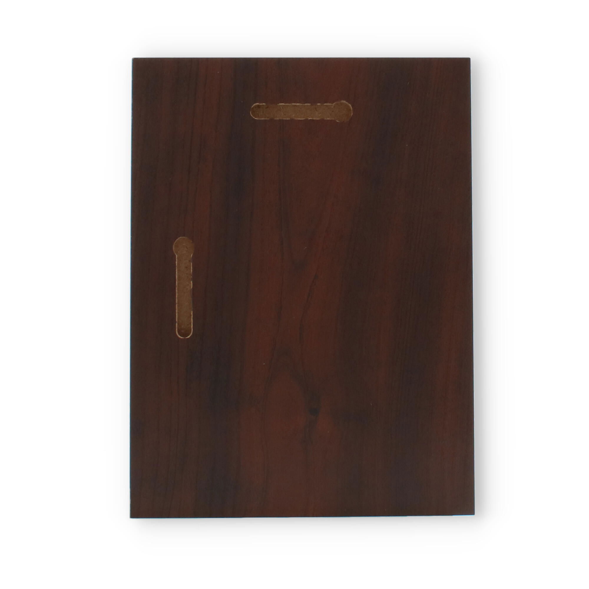 Der glänzende Rahmen der Holztafel aus walnussfarbenem Holz bietet den perfekten Kontrast zur silberfarbenen Auflage. Diese bereits an sich ansprechende Gestaltung wird durch eine personalisierte Lasergravur auf der Metallfläche noch weiter verfeinert. Du hast die Möglichkeit, entweder aus verschiedenen Standardmotiven zu wählen oder deine eigene Vorlage – etwa ein Logo oder ein Wappen – einzureichen.