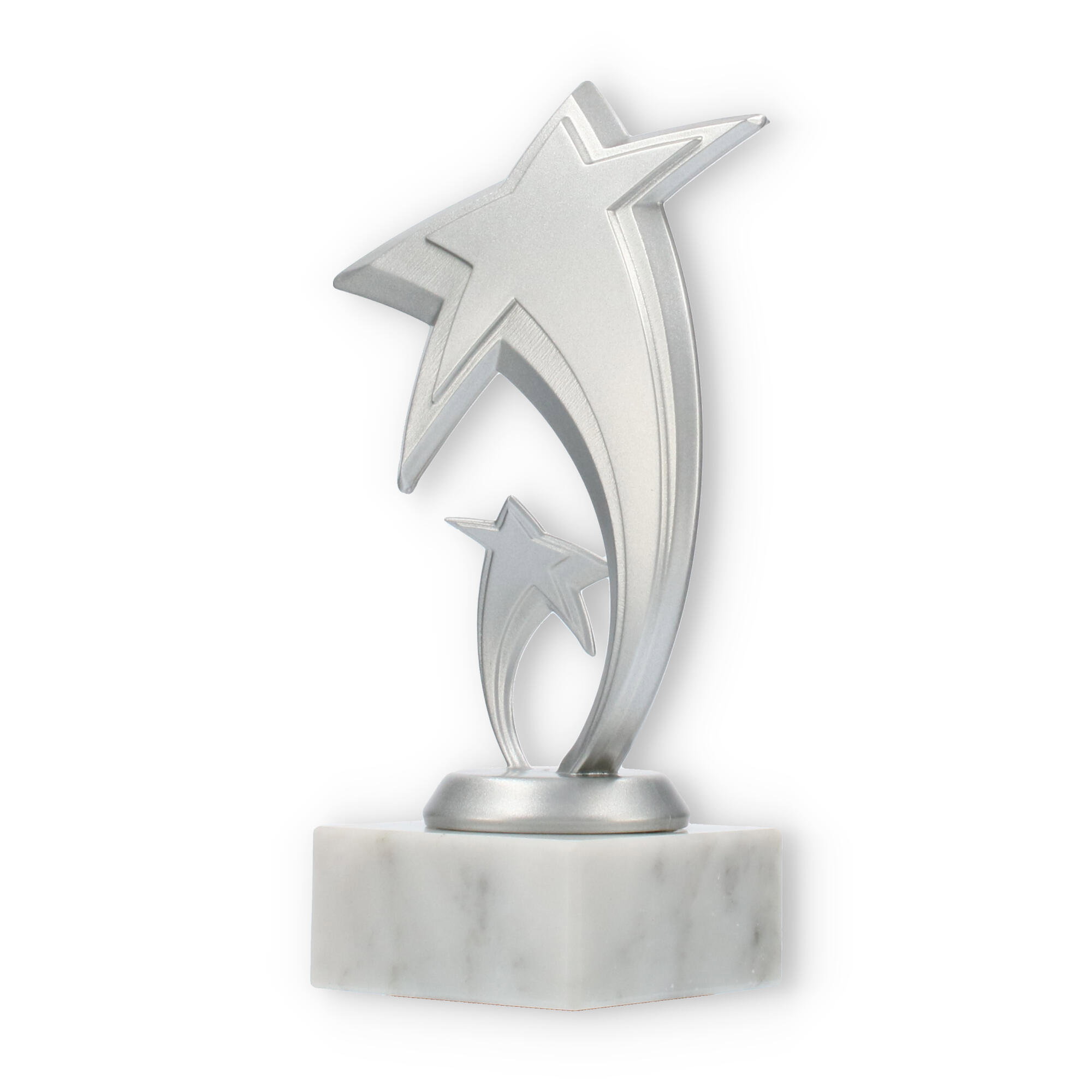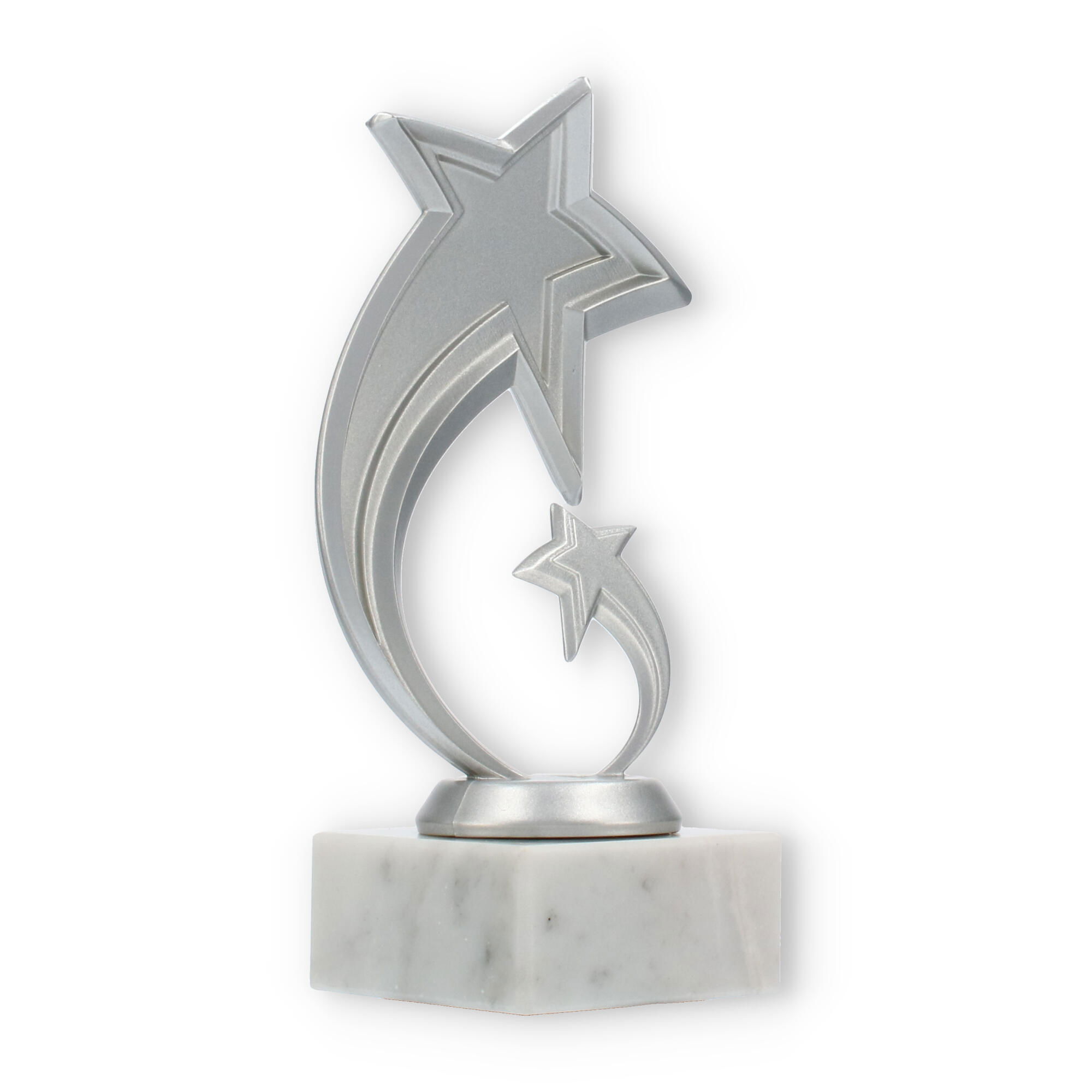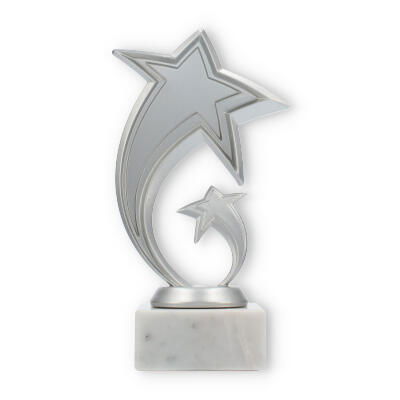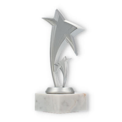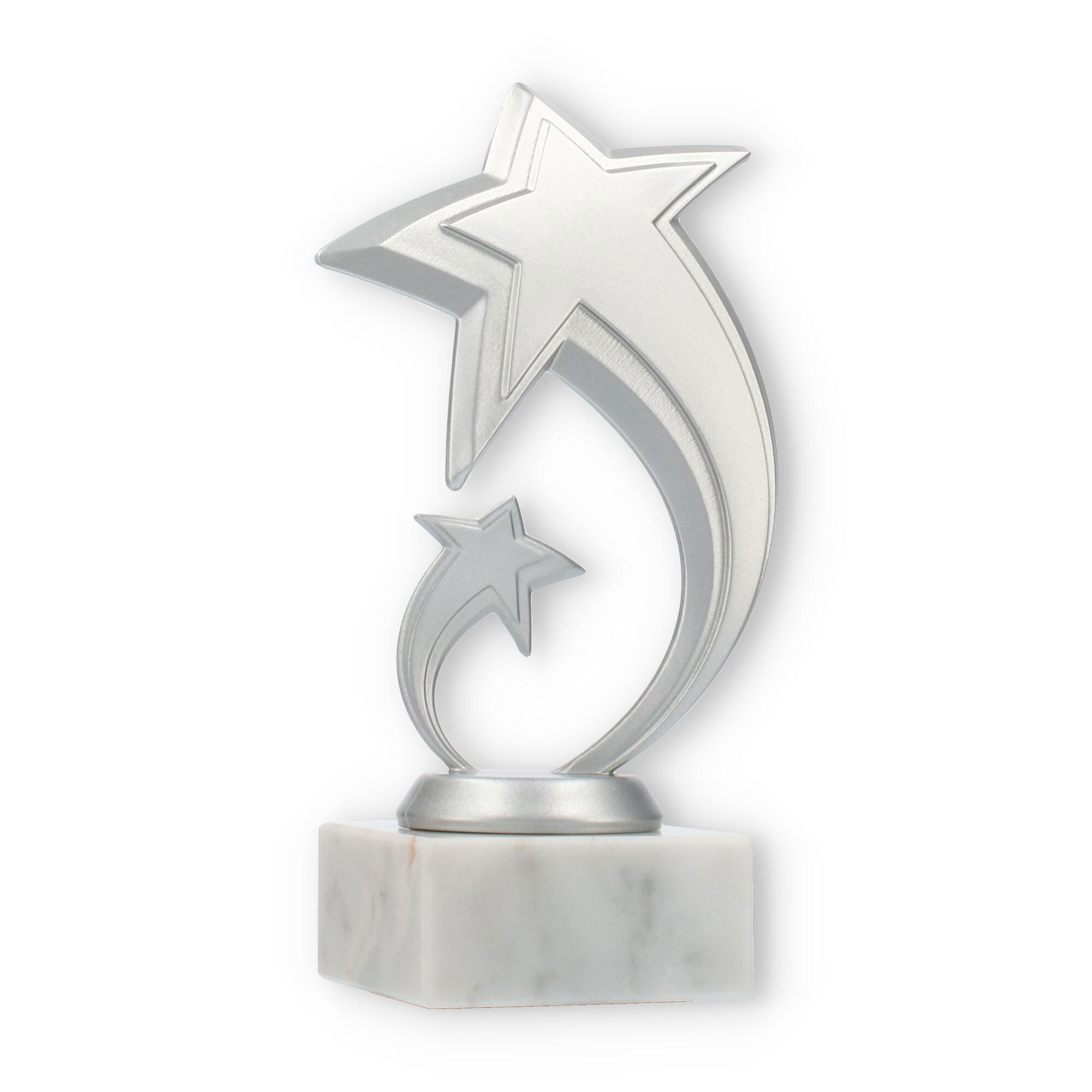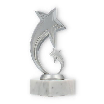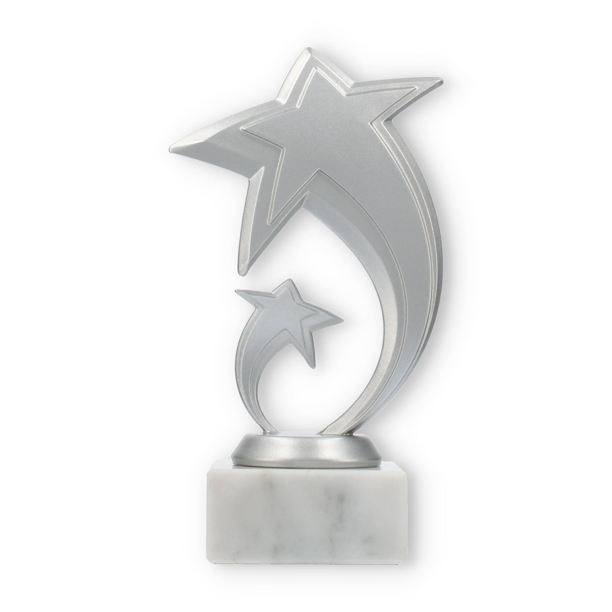 Scopri il fascino speciale del trofeo Pluto: un'opera che celebra l'eccellenza con un design ispirato alle stelle. La figura, in plastica resistente con effetto argento metallizzato, cattura l'attenzione grazie alla sua forma moderna e dinamica.