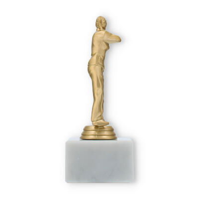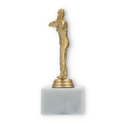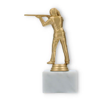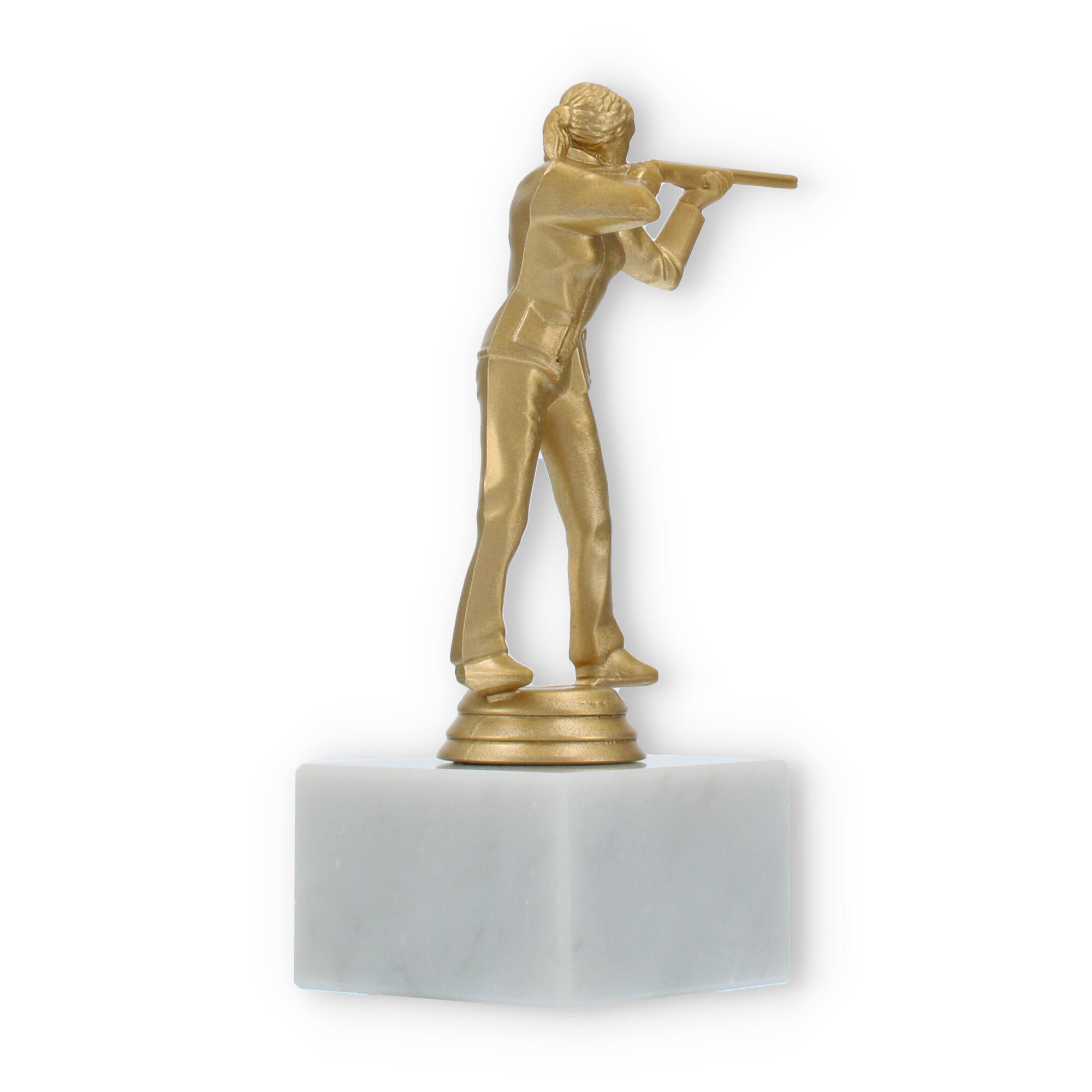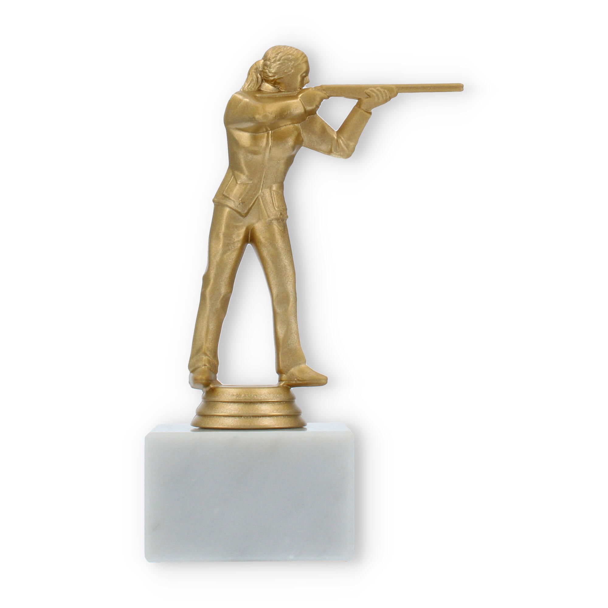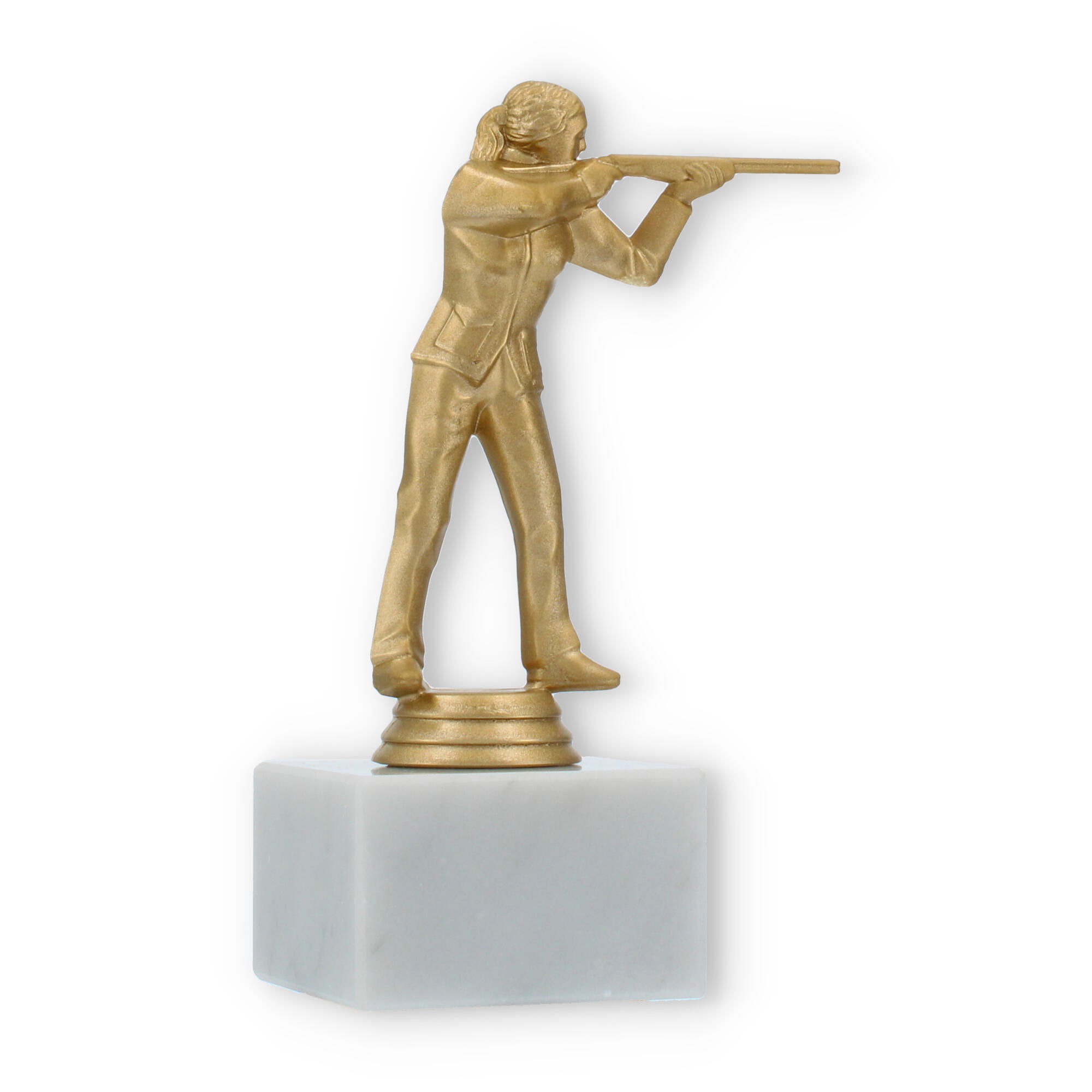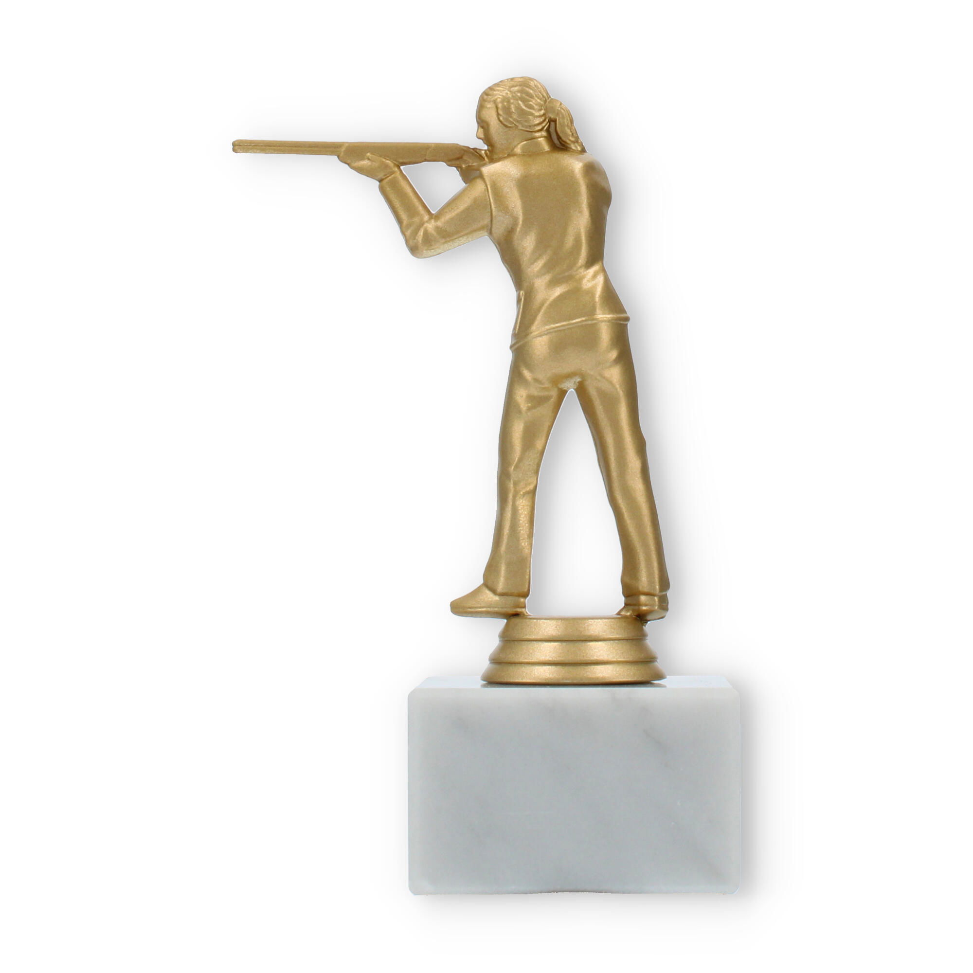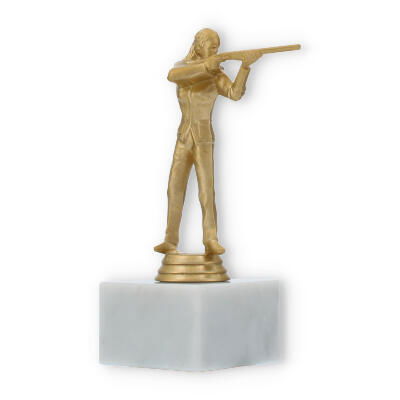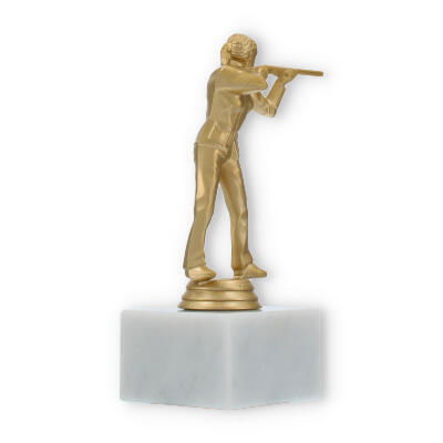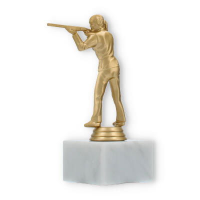 La Coppa fuciliera rappresenta l'equilibrio perfetto tra stile e significato nei premi sportivi. La statuetta in plastica colore oro, che raffigura una fuciliera in azione, poggia su una base di marmo bianco, creando un contrasto visivo elegante e accattivante.