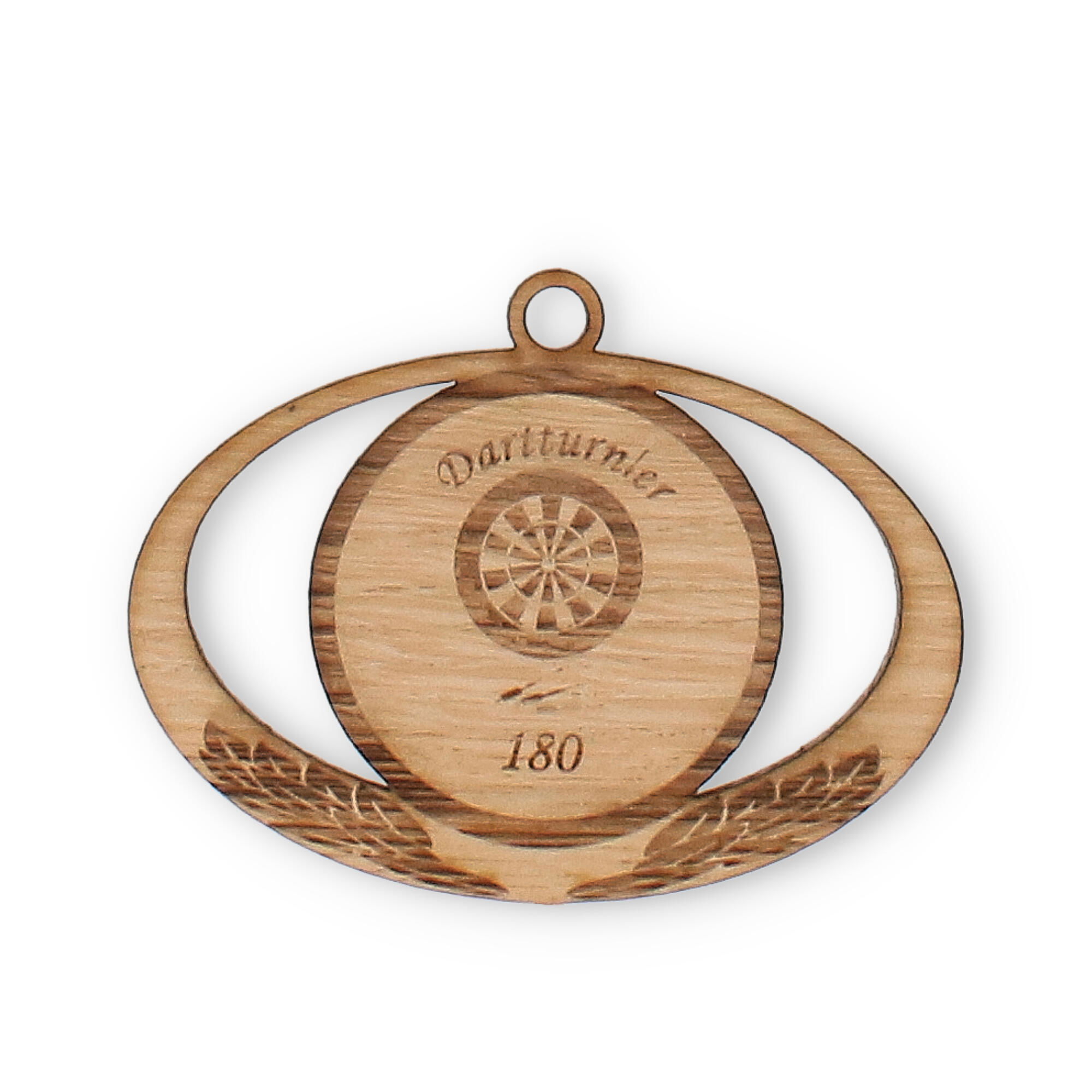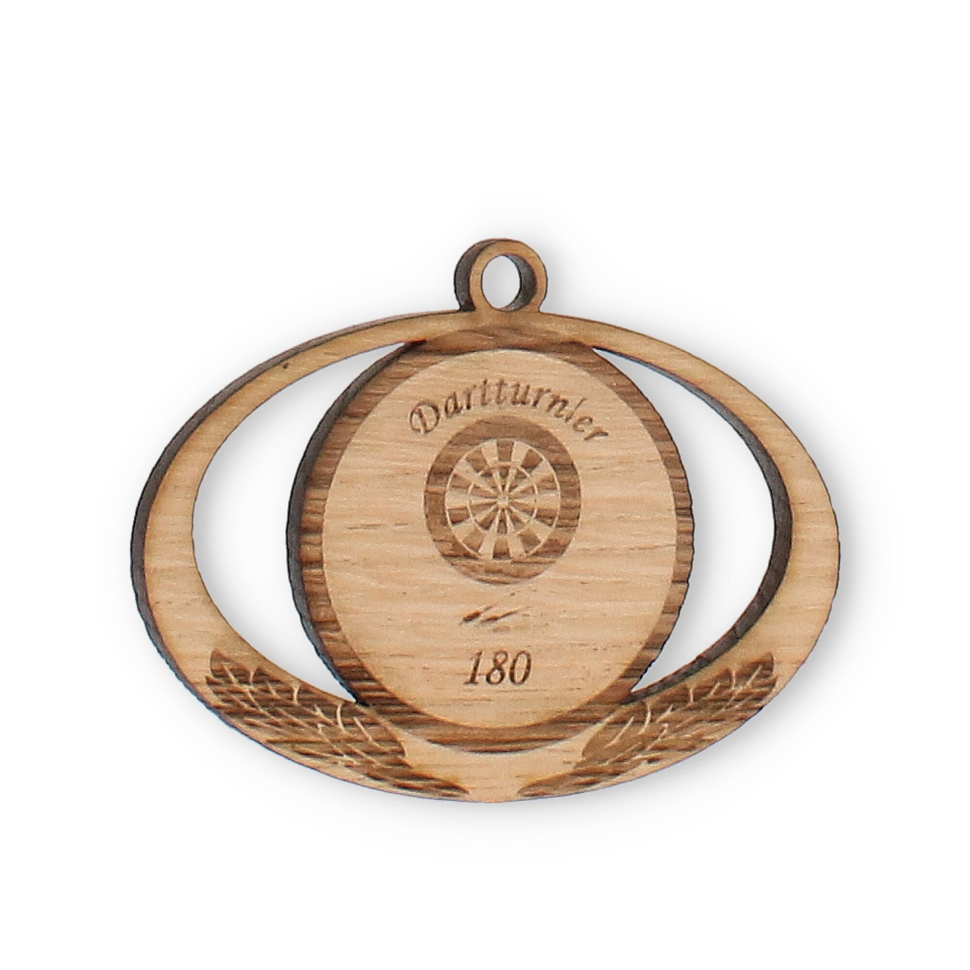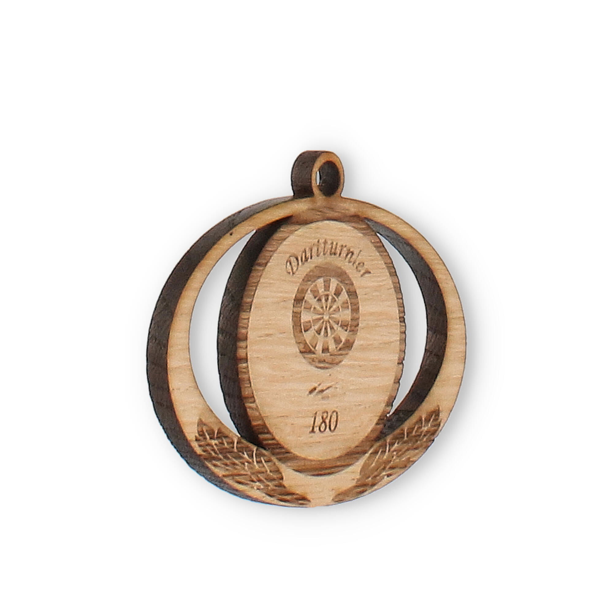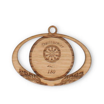 Scopri la medaglia di legno Alina, realizzata in legno massiccio di quercia con incisioni dettagliate. Ideale per esaltare i successi nei tornei di freccette, è perfetta per aggiungere un tocco rustico ed elegante alla premiazione.