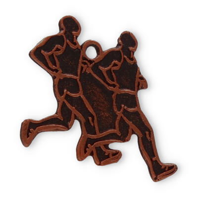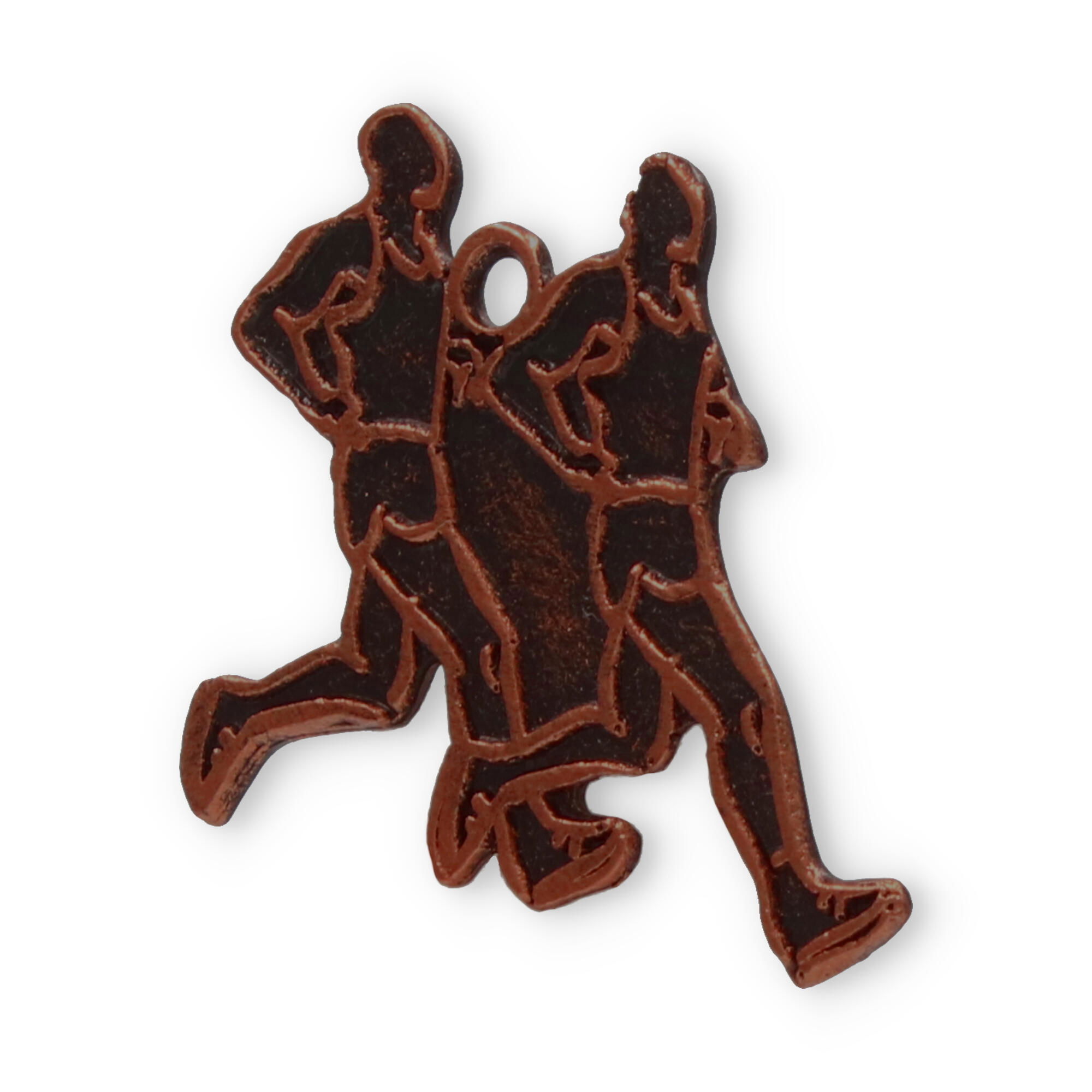 La medaglia Runner è pensata per trasformare una vittoria in un ricordo tangibile che resisterà nel tempo. Con il suo elegante rilievo che ritrae due atleti in corsa, simboleggia la perseveranza e la passione presenti in ogni gara. La materia prima scelta è lo zamac, un metallo pregiato che garantisce robustezza e una piacevole estetica colore bronzo, donando alla medaglia un aspetto raffinato.