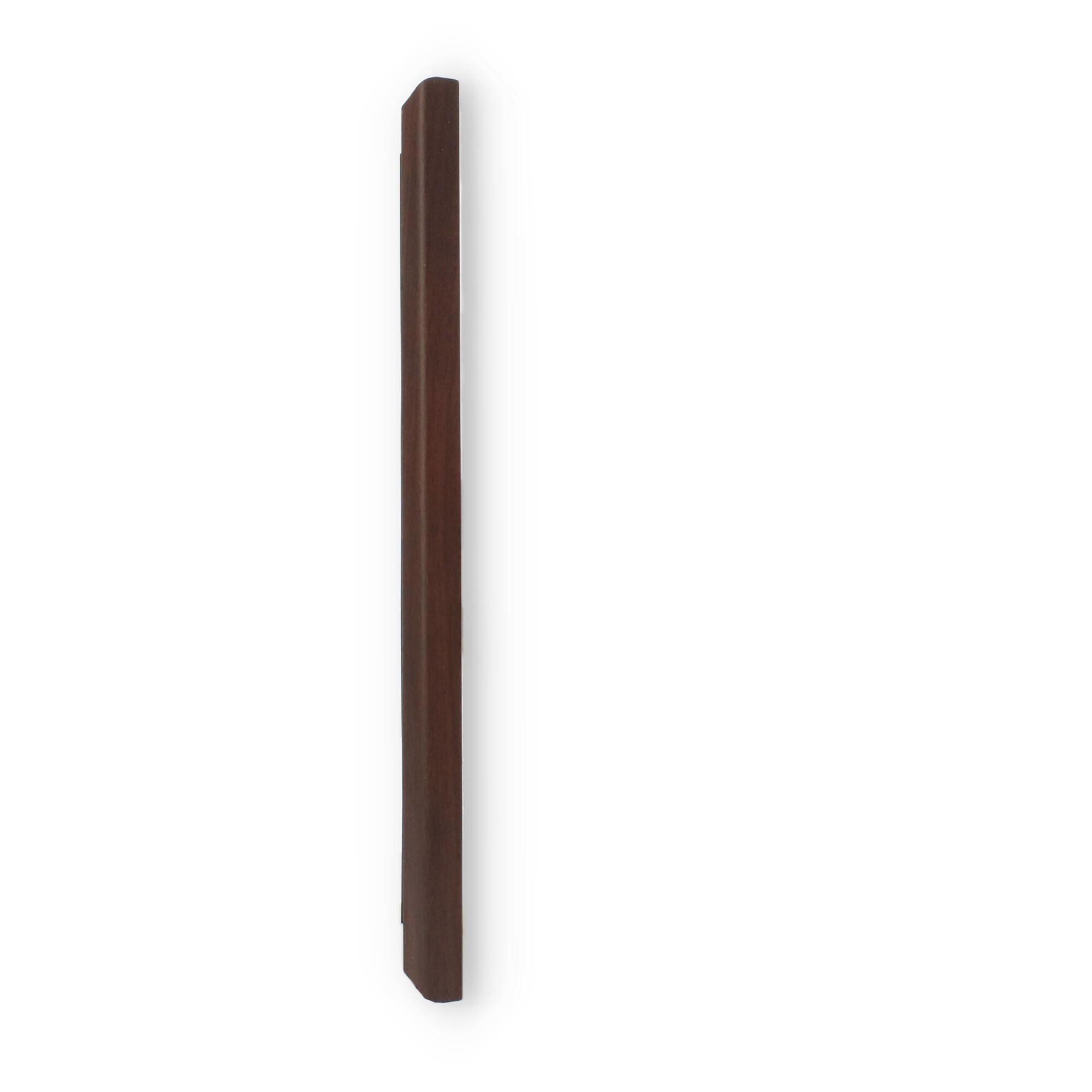 La cornice è realizzata in legno di colore noce, conferendo un aspetto naturale e raffinato che si combina perfettamente con la tonalità bronzo della placca. L'effetto complessivo è visivamente accattivante e sofisticatamente bilanciato, esaltando ogni ambiente in cui è esposto.