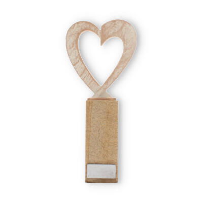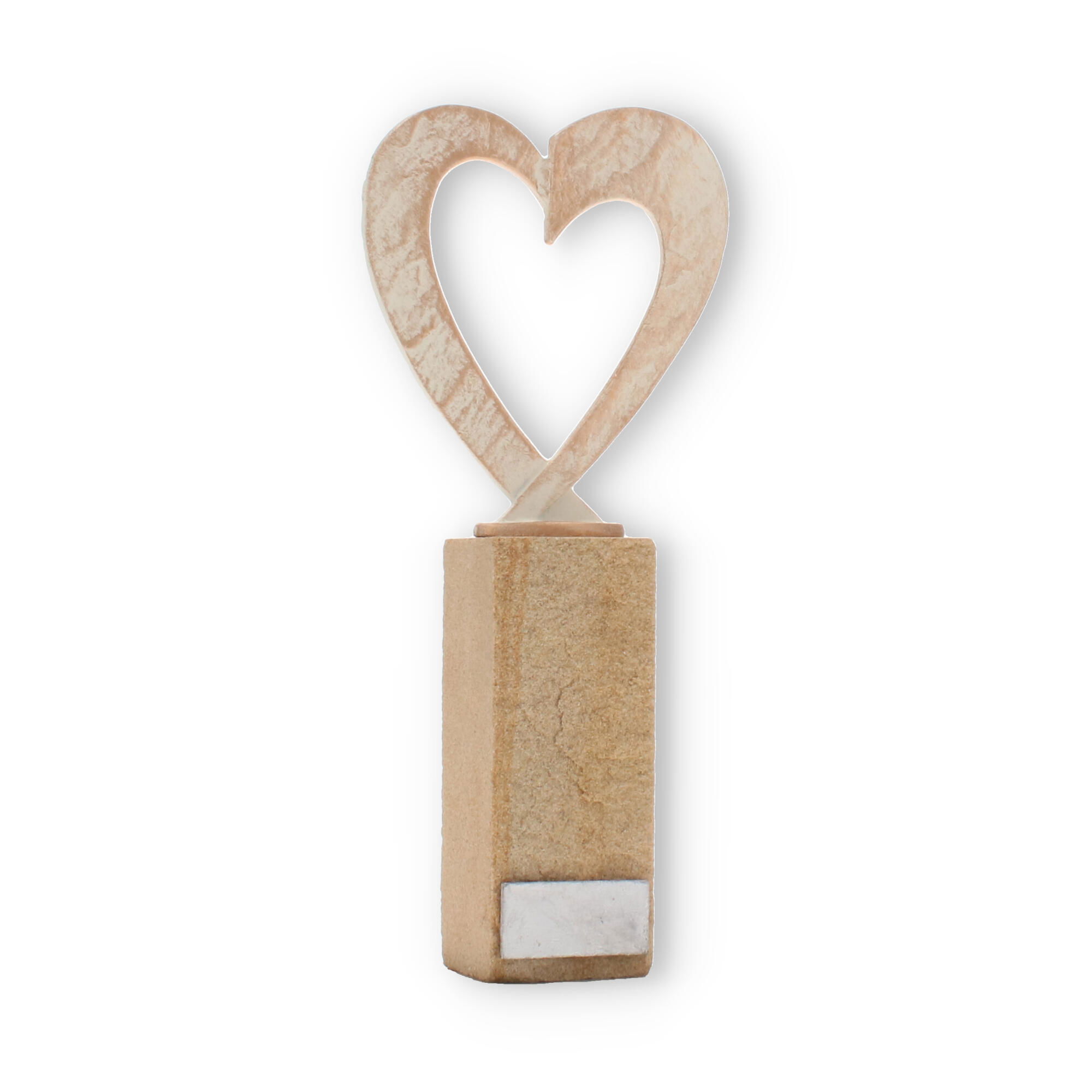Celebrando l'eleganza naturale, i trofei Cuore bianco-oro, con una figura dai contorni eleganti e una base in arenaria, aggiungono un tocco speciale a ogni occasione. La possibilità di personalizzazione con un'incisione su targhetta argentata li rende perfetti per premiare momenti significativi. Trasforma ogni cerimonia in un evento memorabile con questi simboli di riconoscenza.