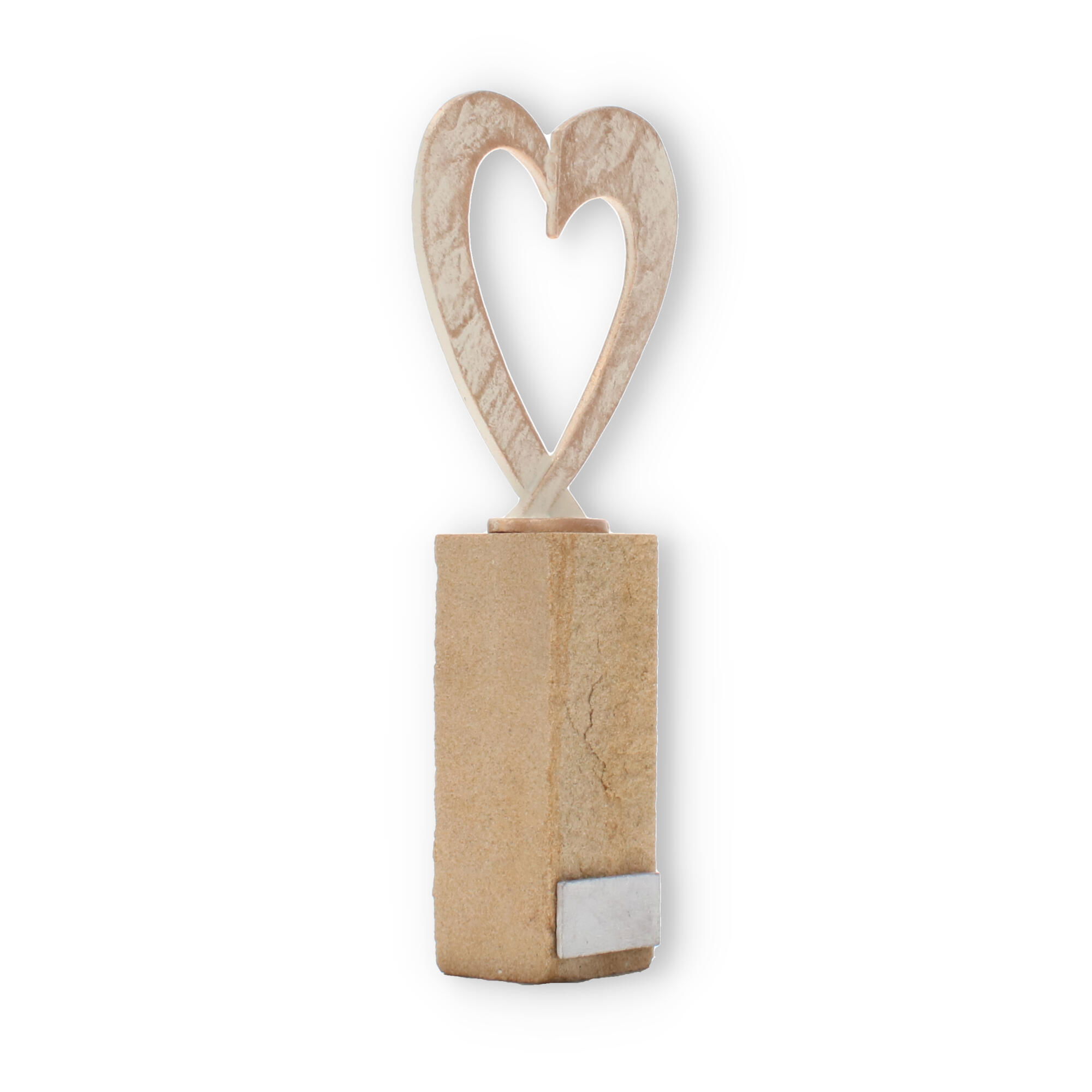 Lascia che i trofei Cuore bianco-oro diventino il simbolo del tuo evento, un omaggio che racchiude in sé l'eleganza della natura e la raffinatezza del design. La base in arenaria si contrappone armoniosamente ai dettagli in bianco e oro della figura, creando un equilibrio visivo affascinante. Ogni trofeo è caratterizzato da un cuore dalle linee sinuose, che con le sue tonalità calde evoca l'autenticità della pietra naturale.