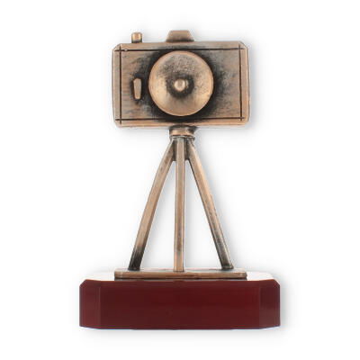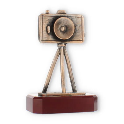 I Trofei Zamak Fotocamera su base di legno effetto mogano sono ideali per momenti di riconoscimento speciali. Con una figura color oro antico e un'incisione personalizzabile, diventano un simbolo di realizzazione e dedizione.