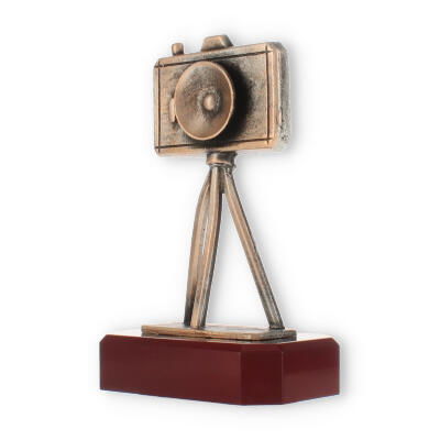 Il design dettagliato della fotocamera con obiettivo in rilievo e altre caratteristiche classiche rende questo trofeo unico nel suo genere. Lo stile retrò e il colore oro antico evocano un senso di nostalgia e prestigio che cattura lo sguardo e il cuore degli spettatori.