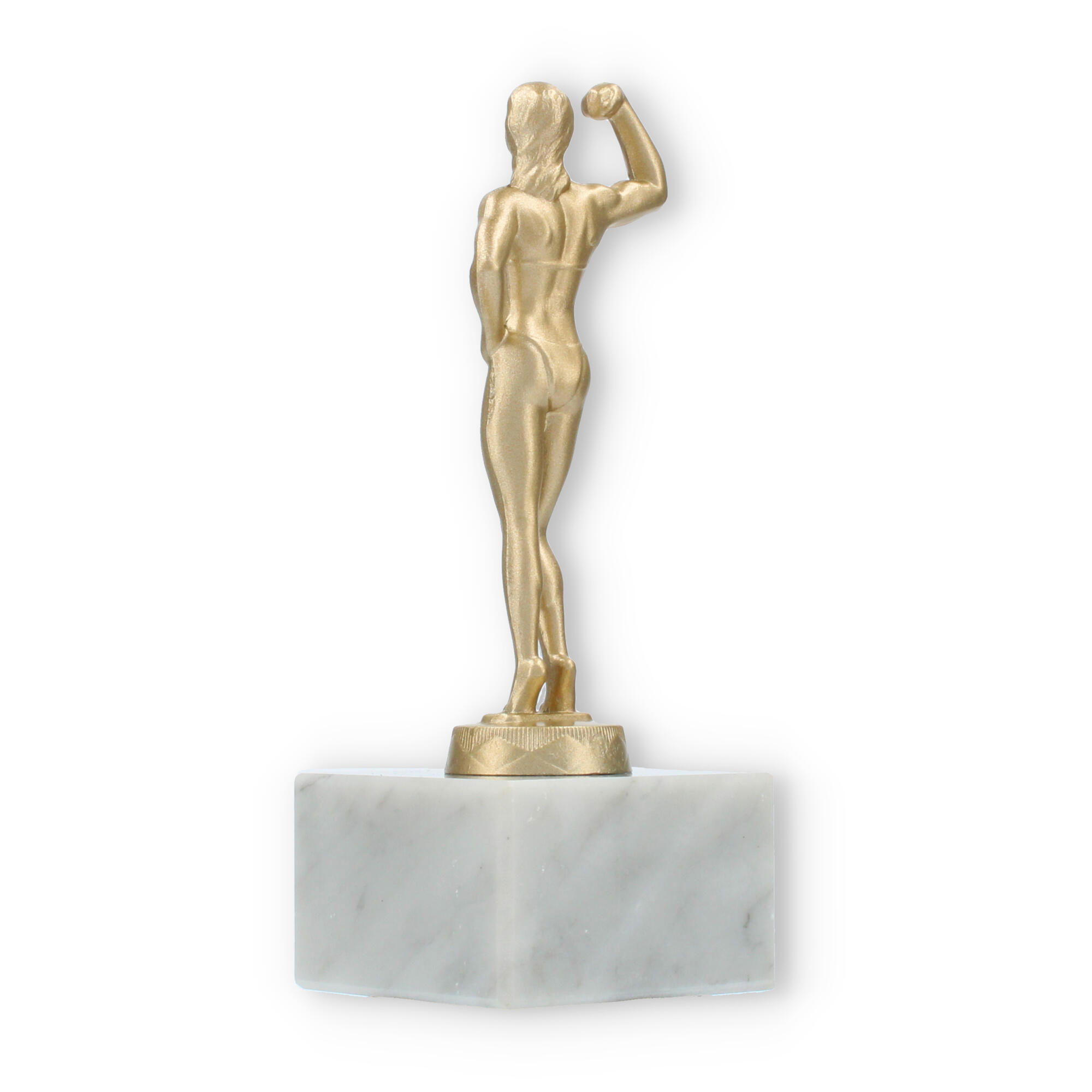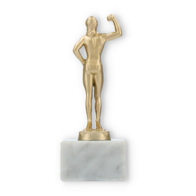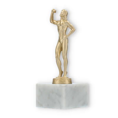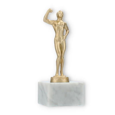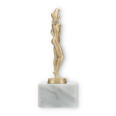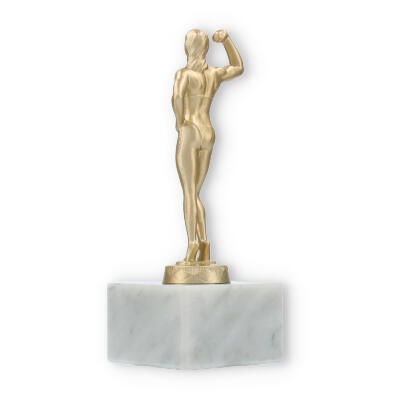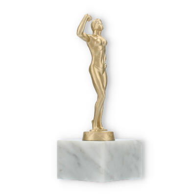 La base del trofeo è in marmo bianco e costituisce una base robusta ed elegante. Le venature naturali del marmo aggiungono un tocco di raffinatezza, accentuando la brillantezza della figura dorata sovrastante. Al vostro evento, questo contrasto attirerà immediatamente l'attenzione, rendendolo un riconoscimento indimenticabile per i vostri campioni.