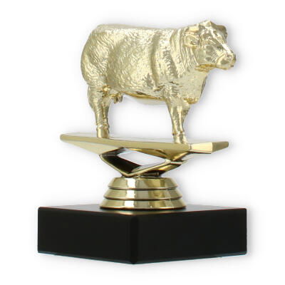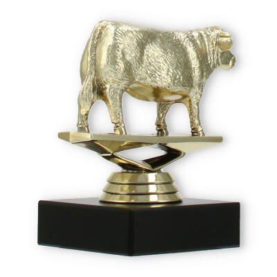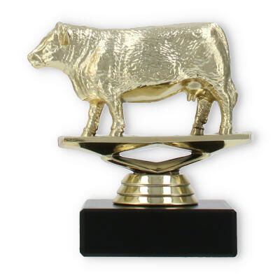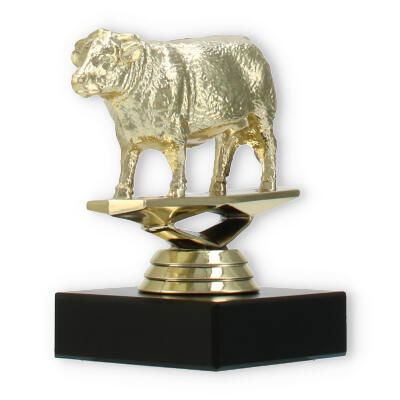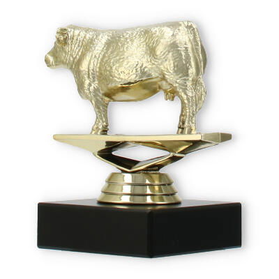 L'elegante base in marmo nero non solo garantisce stabilità, ma aggiunge anche un tocco di raffinatezza al design complessivo. Misura 65 mm sia in lunghezza che in larghezza, bilanciando perfettamente il trofeo. La superficie liscia della base contrasta splendidamente con la figura dettagliata della mucca, facendola risaltare ancora di più.