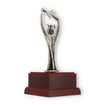 La base del trofeo, realizzata con legno dall'effetto mogano, dona una sensazione di solidità e stile senza tempo. La sua superficie dalla tonalità calda si abbina armoniosamente alla brillantezza della figura, creando un contrasto visivo elegante e affascinante.