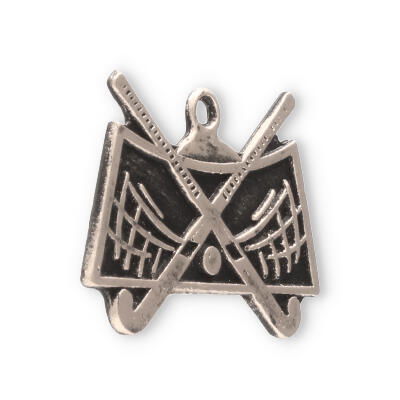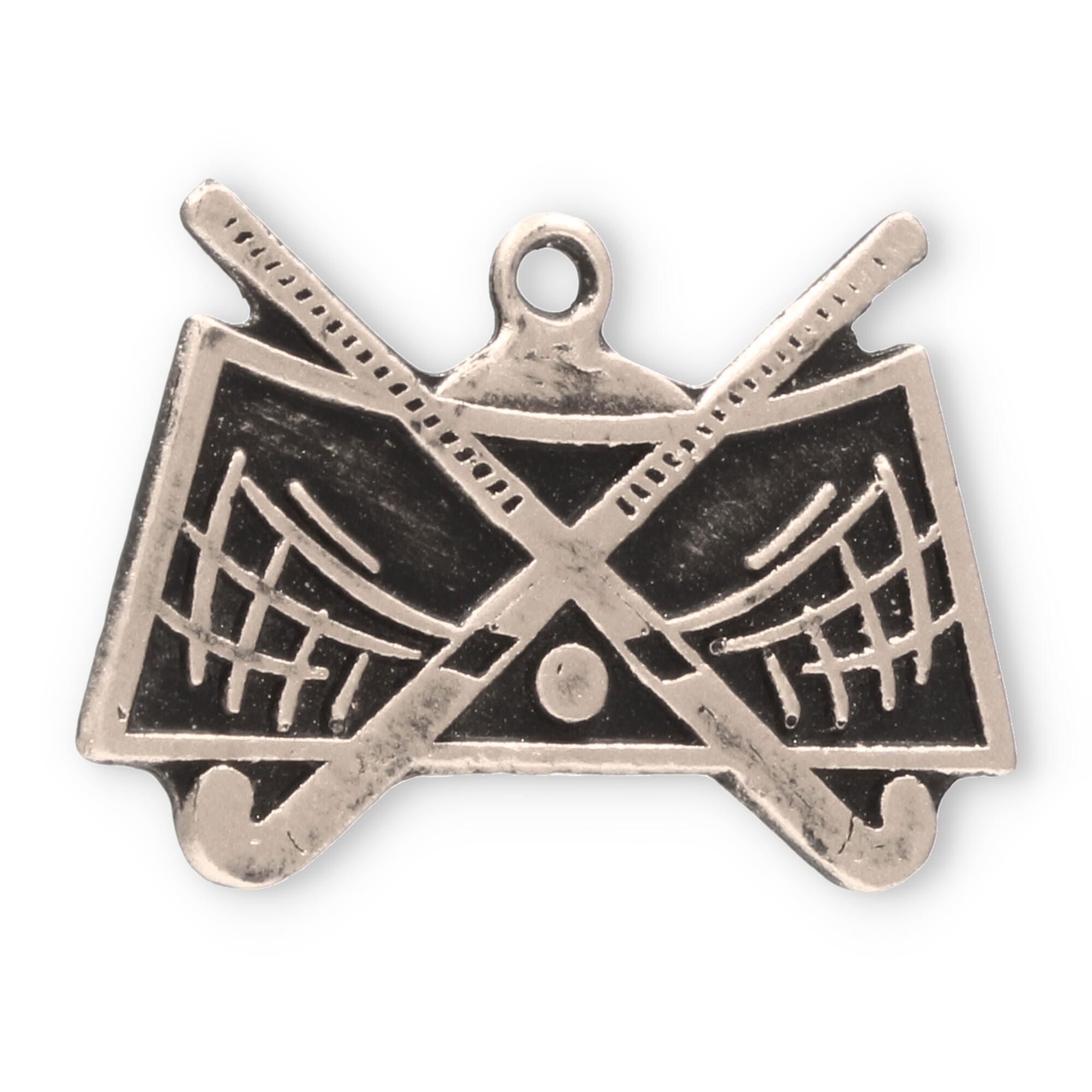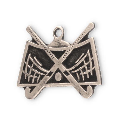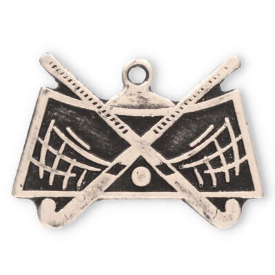 Die sorgfältig gearbeiteten Details, darunter die feinen Linien auf den Hockeyschlägern und der kontrastreiche Hintergrund, machen diese Medaille zu einem Blickfang. Der mix aus polierten und matten Flächen hebt die verschiedenen Elemente hervor und verleiht ihr Tiefe und Ausdruckskraft.