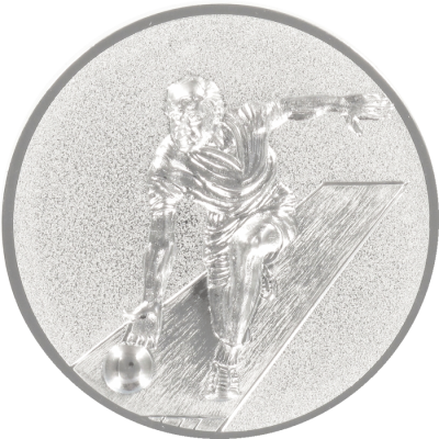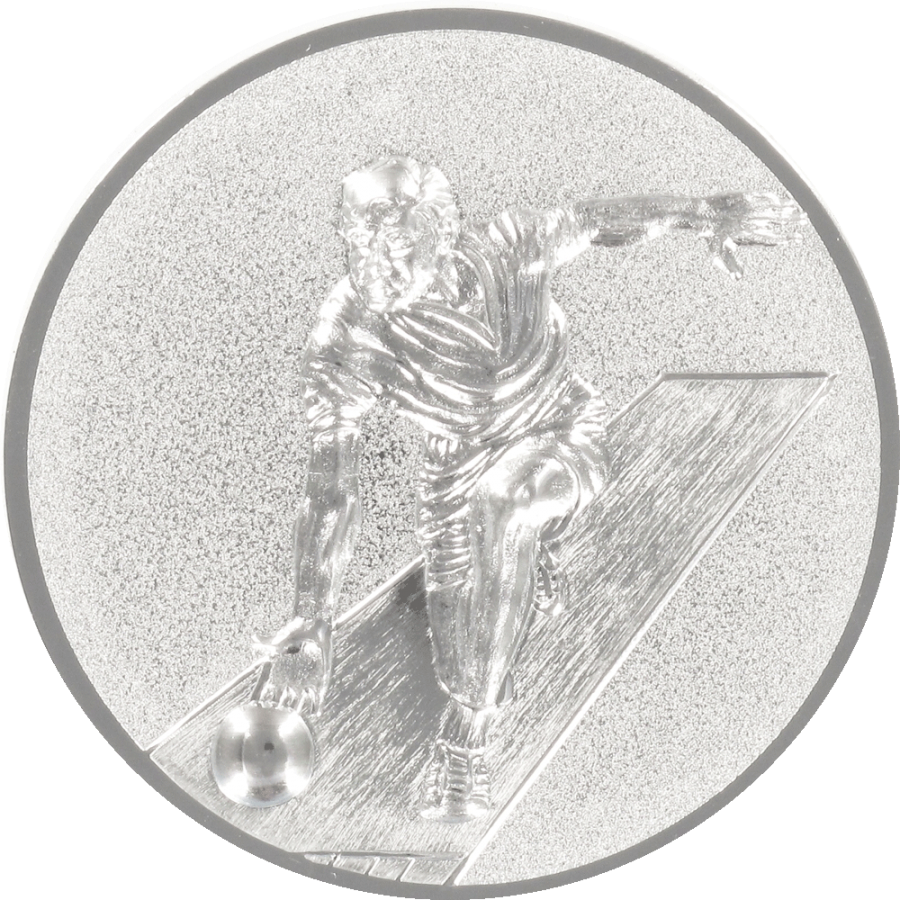 Dit zilverkleurige aluminium embleem met een doorsnee van 50 mm is ideaal voor kegelspelcompetities. Het 3D-reliëf benadrukt de dynamiek van de speler en brengt elk toernooi tot leven. Geschikt voor diverse prijzen.