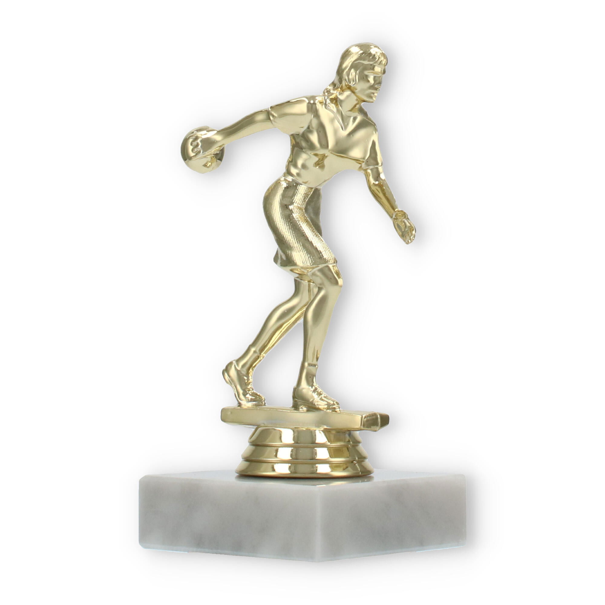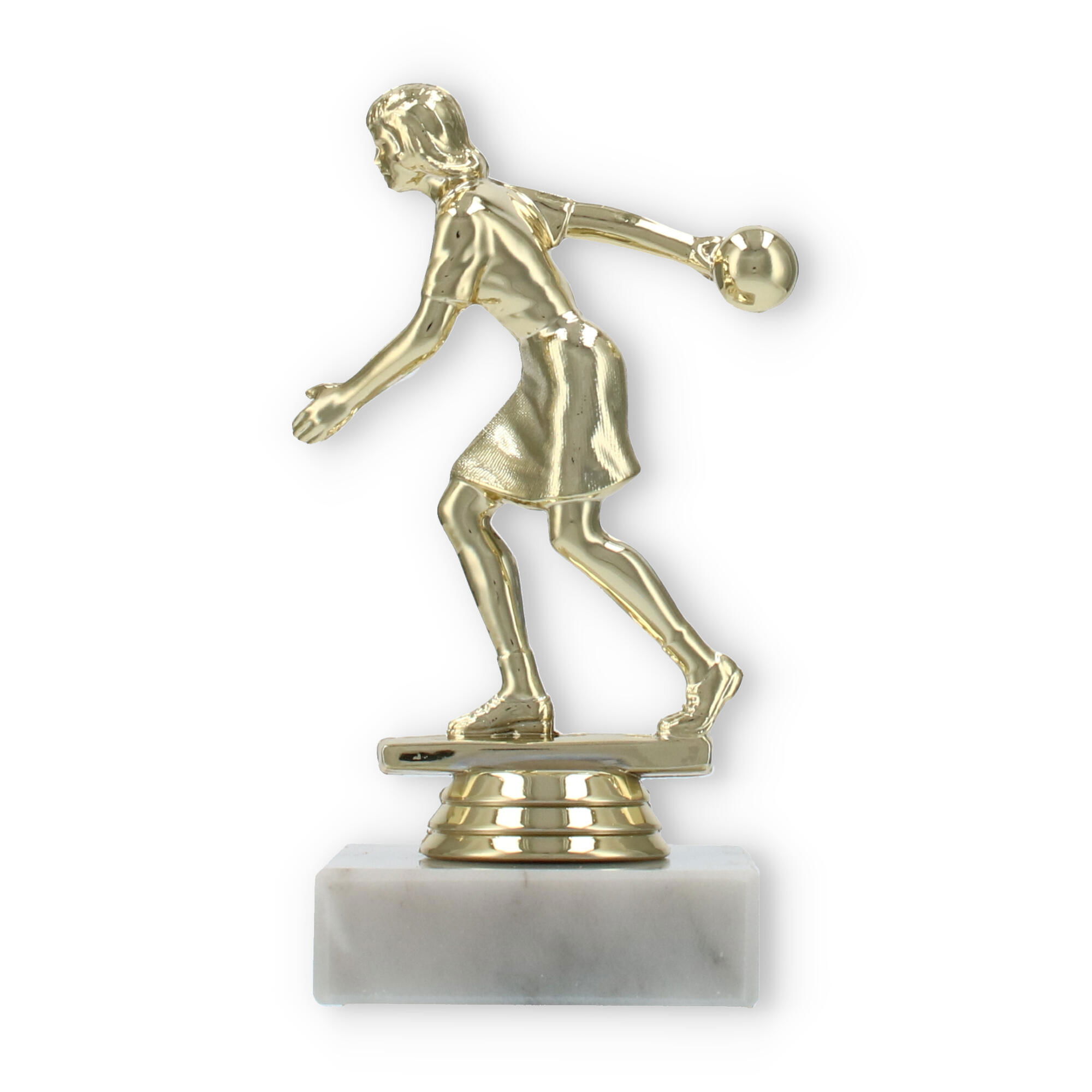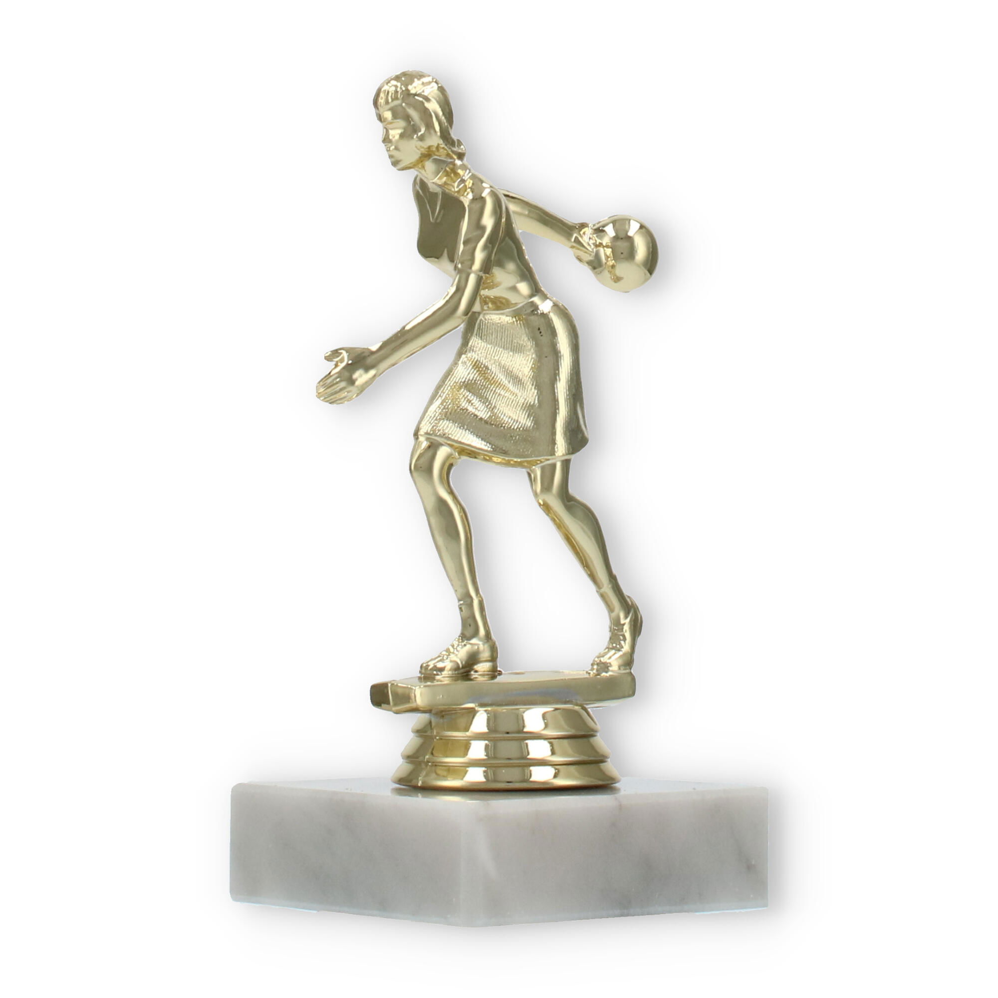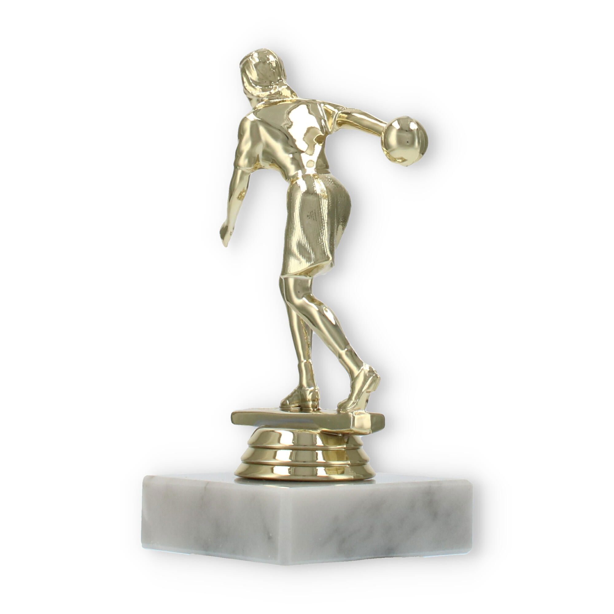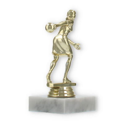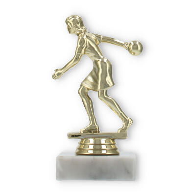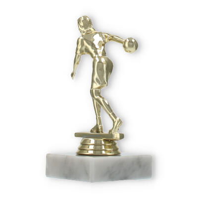 De bowlingtrofee is een prachtige manier om prestaties op de bowlingbaan te eren. Staand op een stevige witte marmeren basis, brengt deze trofee een bijzonder moment tot leven waarin uw kampioen centraal staat.