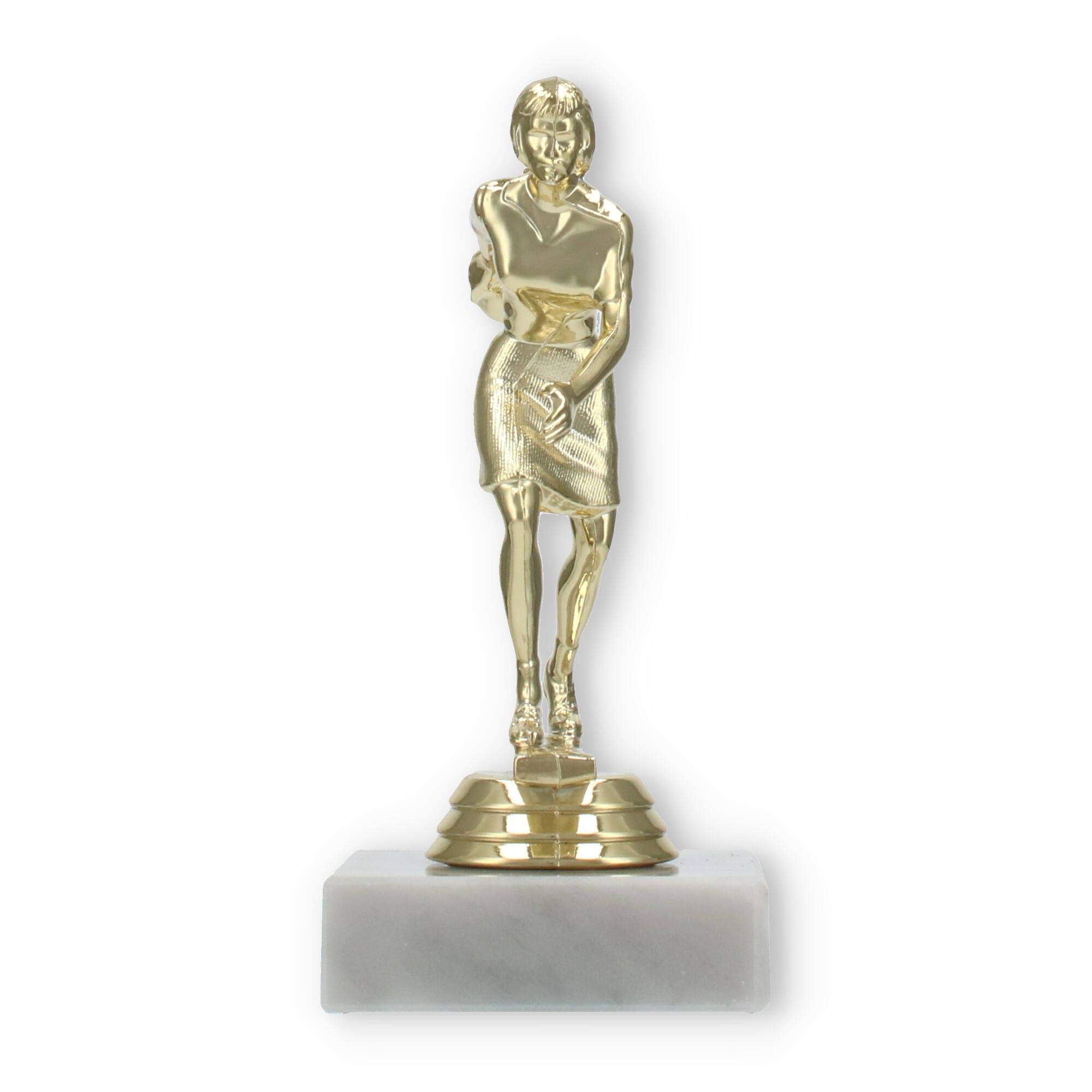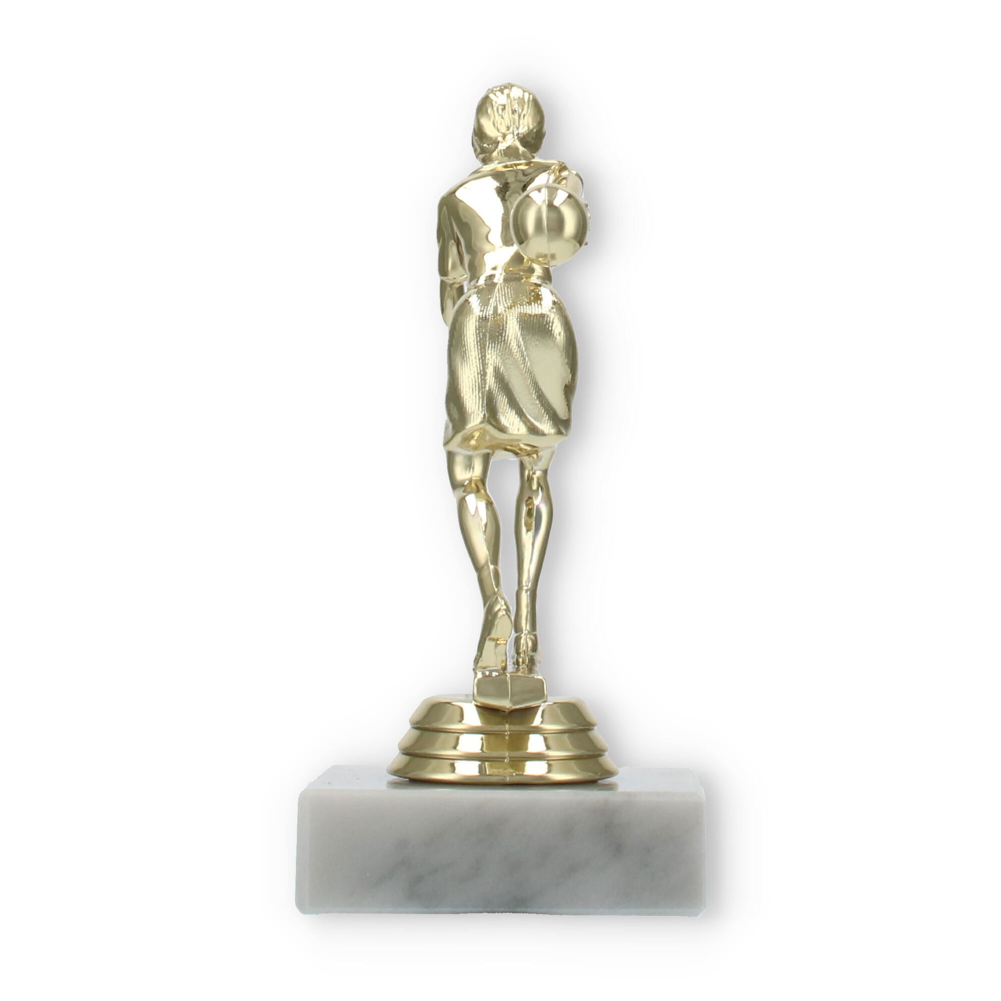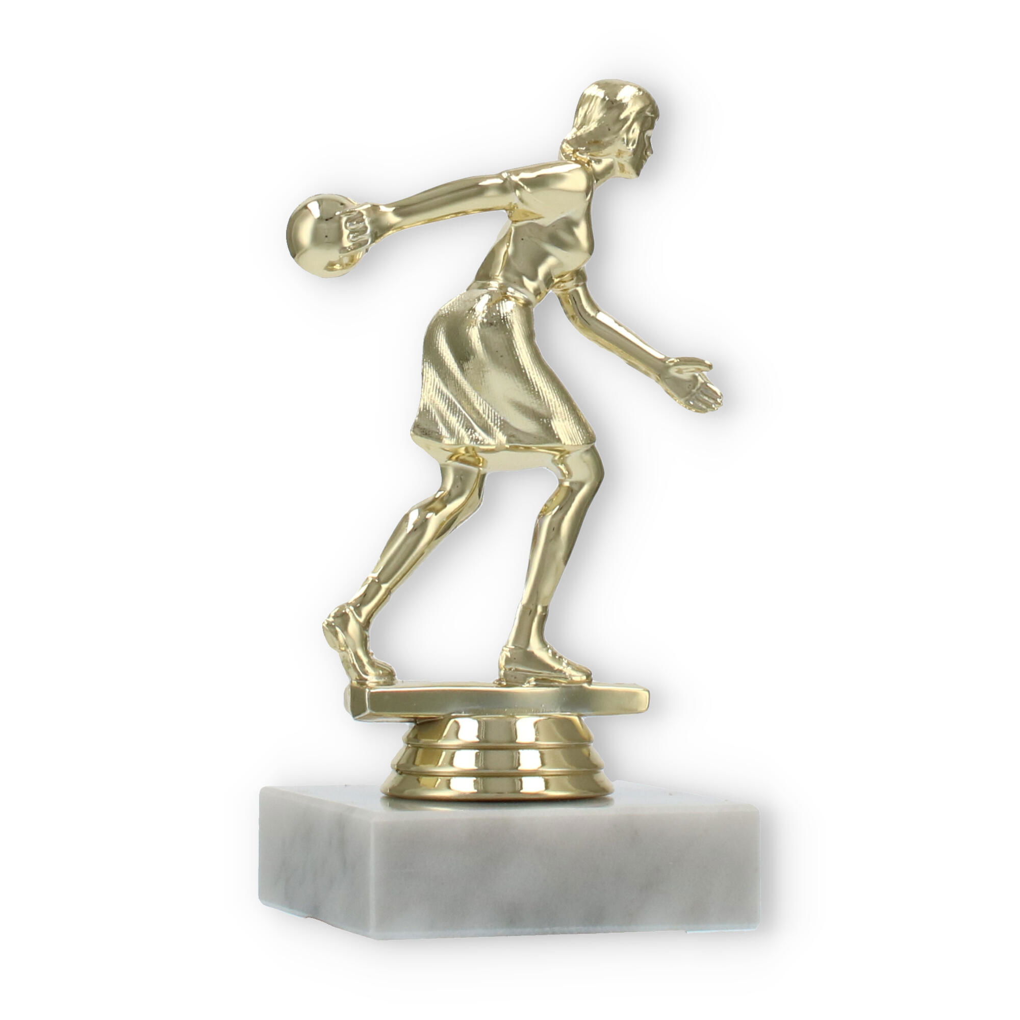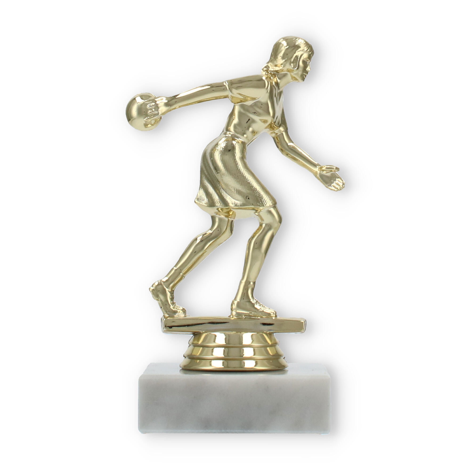 De bowlingtrofee is een prachtige manier om prestaties op de bowlingbaan te eren. Staand op een stevige witte marmeren basis, brengt deze trofee een bijzonder moment tot leven waarin uw kampioen centraal staat.