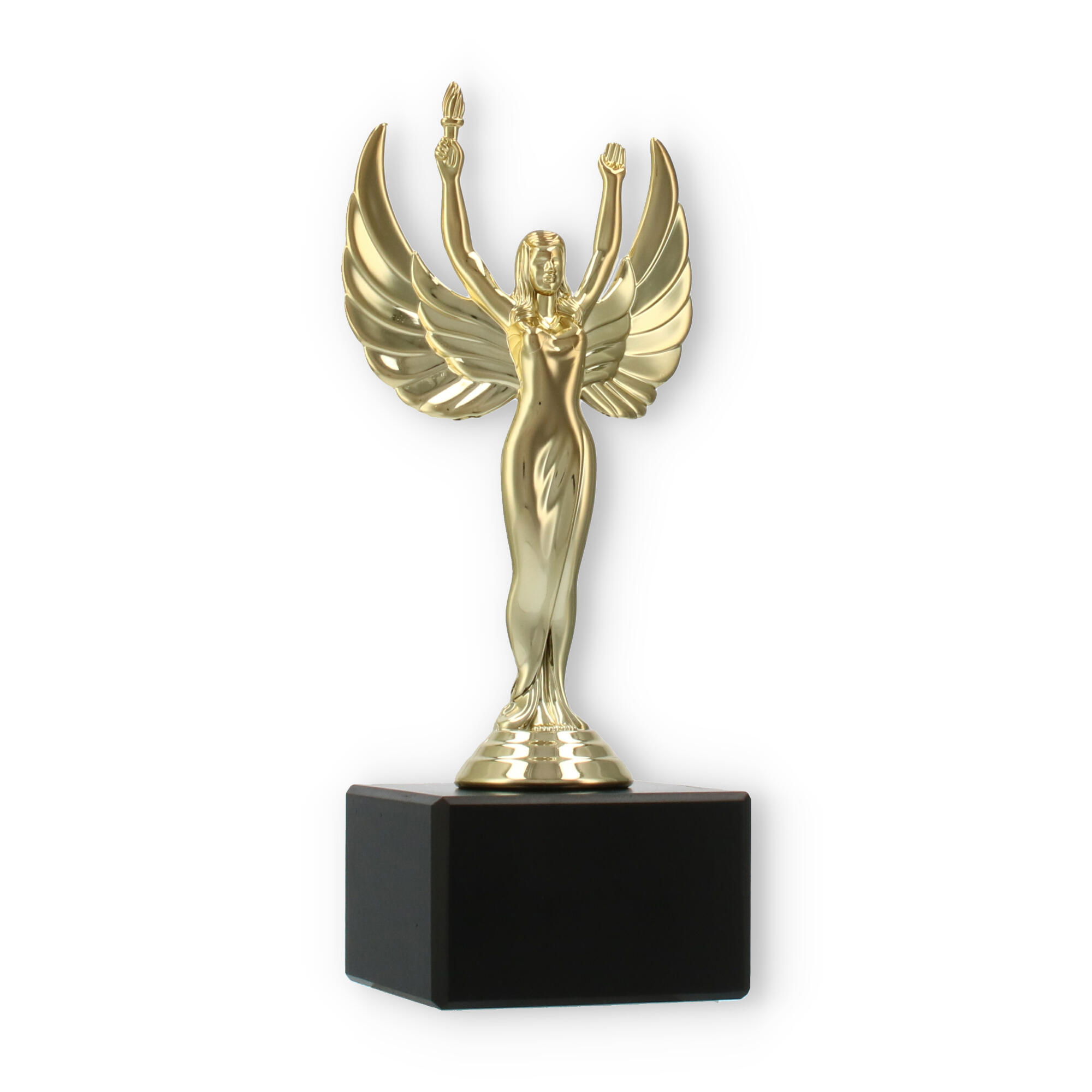 De Victory Goddess trofee straalt klasse uit met haar goudkleurige kunststof bovenop een elegante zwart marmeren sokkel. Personaliseer met een gravure voor een blijvend eerbetoon aan uitzonderlijk talent. Perfect voor elke ceremonie of wedstrijd.