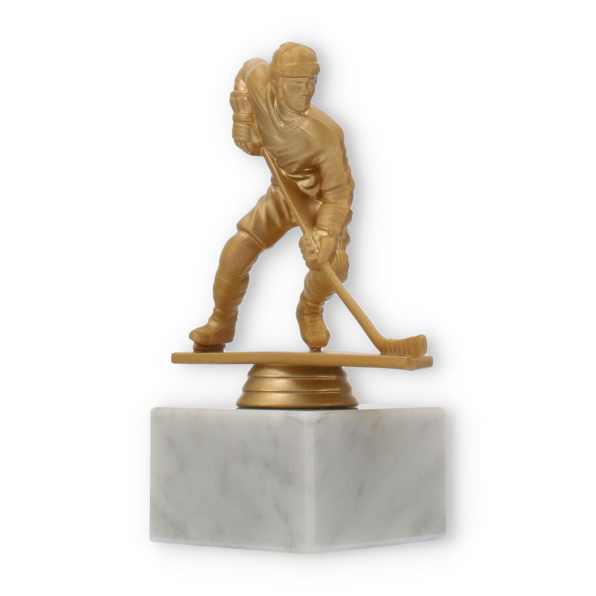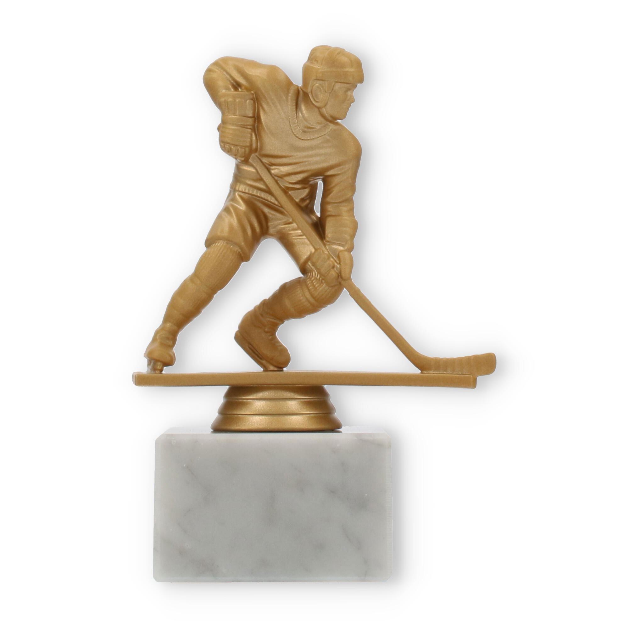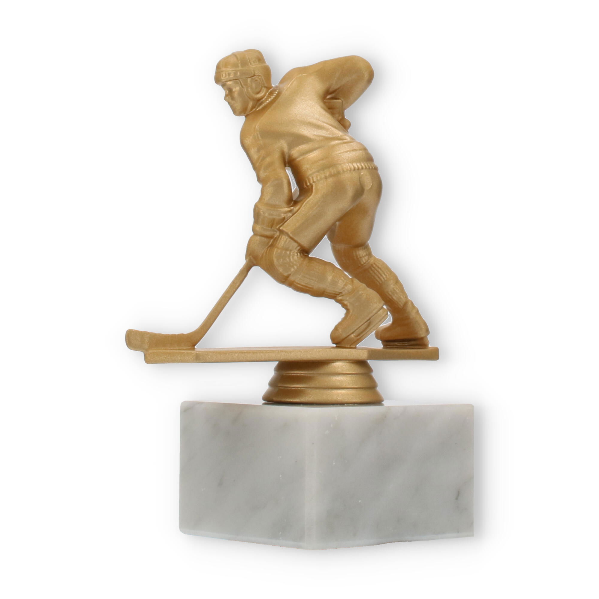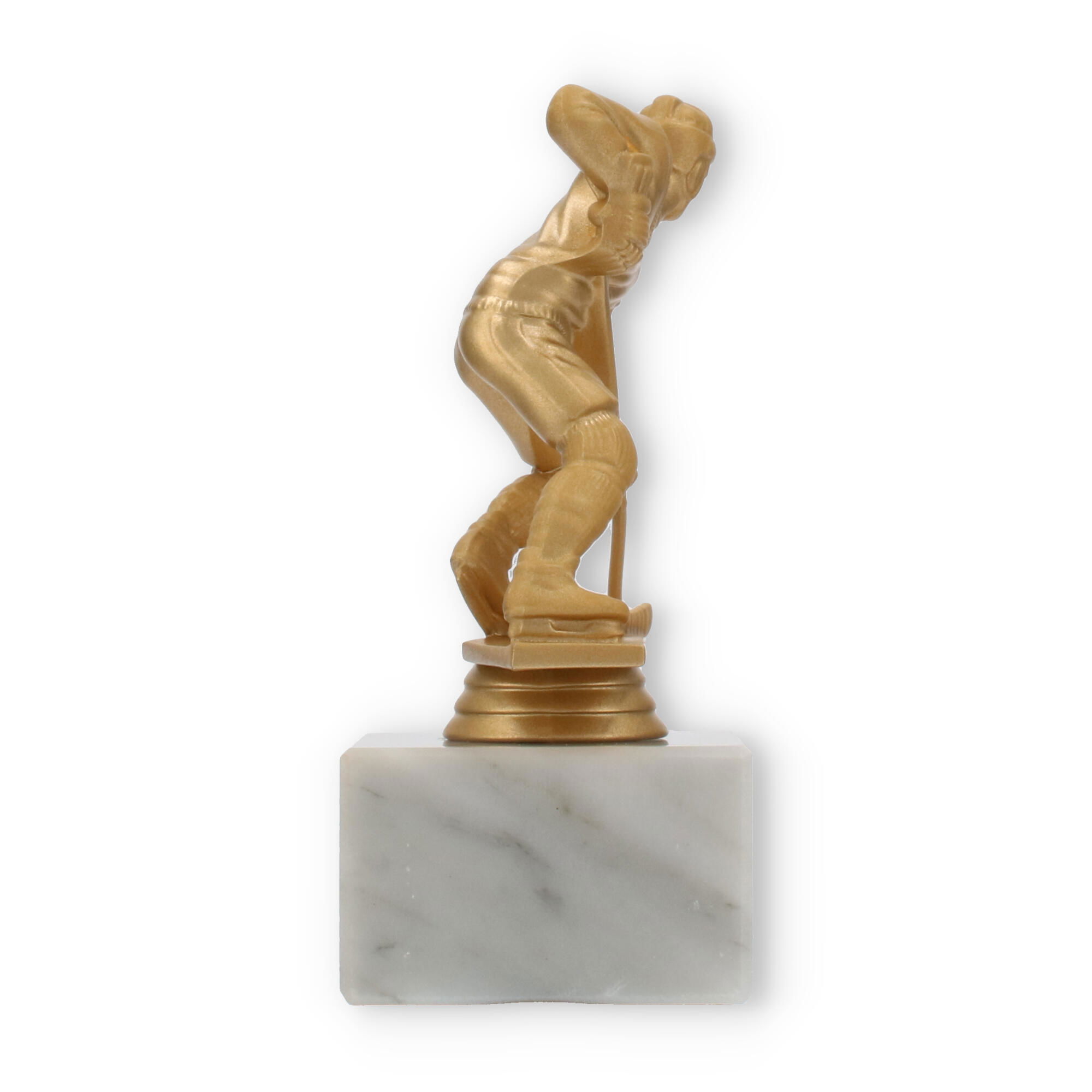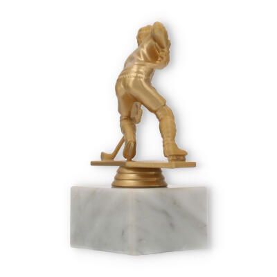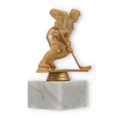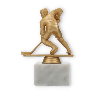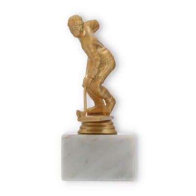 De Beker Hockey Speler, 14,8 cm hoog, verbindt vakmanschap met persoonlijking. De gouden kunststof figuur op een marmeren sokkel benadrukt prestaties en biedt ruimte voor maatwerk met gravure.