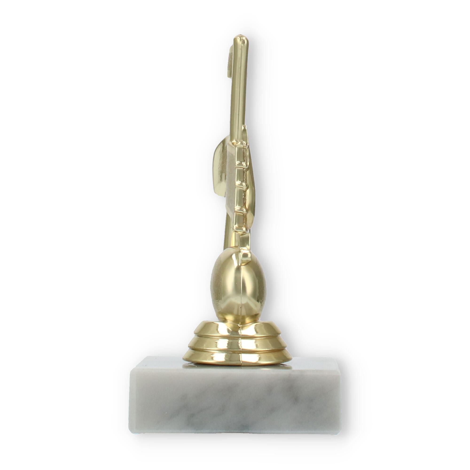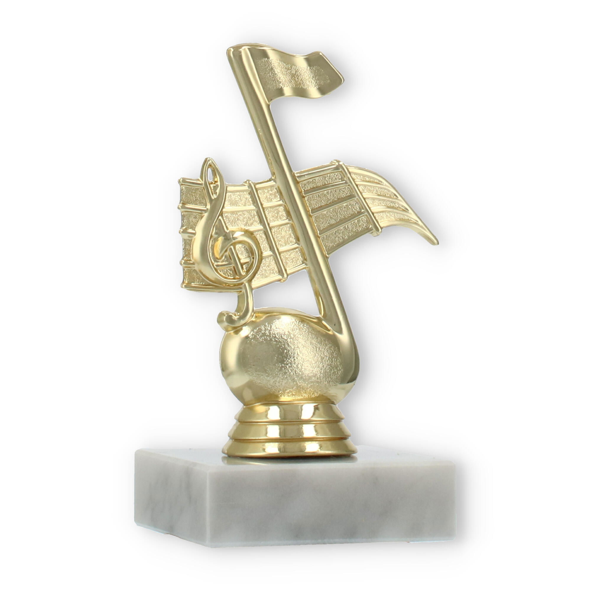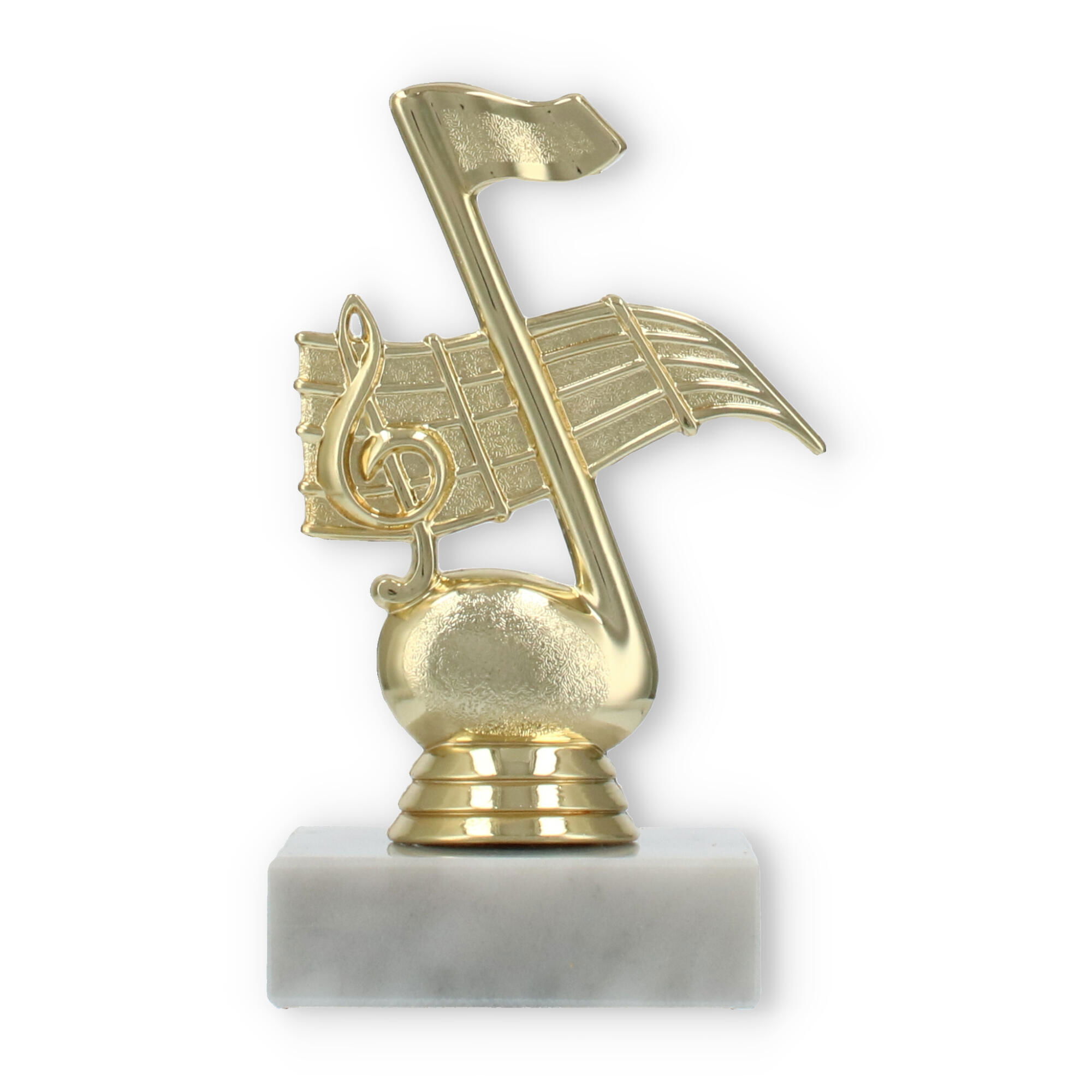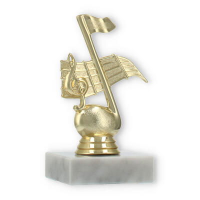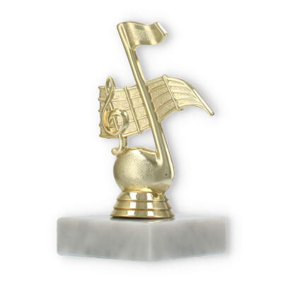 De trofee figurine Note vangt de vreugde van muzikale prestaties en markeert deze als een memorabel moment. Met een hoogte van 12,3 cm en gemaakt van goudkleurig kunststof, vertegenwoordigt deze trofee een schitterende muzieknoot, geplaatst op een stevig wit marmeren voet.