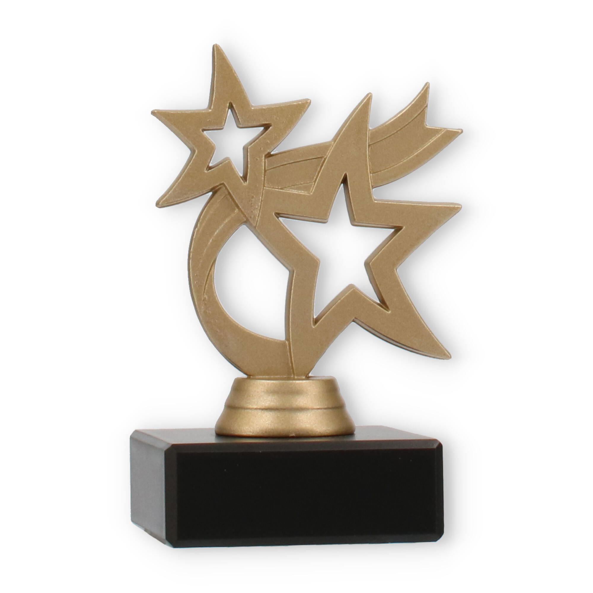 Het ontwerp van de sterren symboliseert ambitie en succes, gemaakt uit metaalachtig kunststof. De dynamiek van de sterren en de sierlijke krul tussen hen straalt energie en beweging uit. Deze dynamische compositie geeft de trofee een uniek karakter en benadrukt de prestaties van de ontvanger.