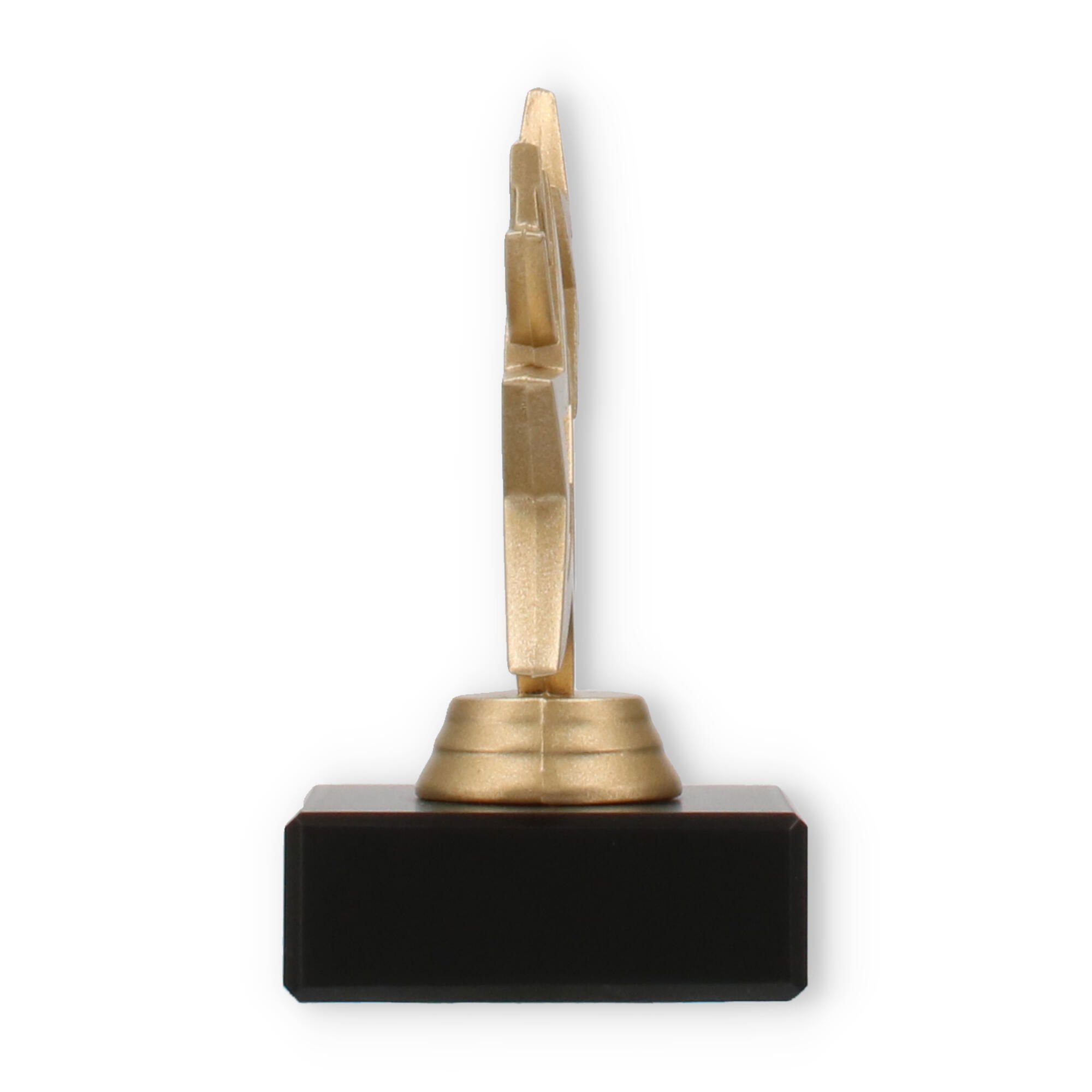 Vier prestaties met de Trofee Neptunus. Het unieke sterontwerp in goud metallic look, samen met de elegante zwarte marmeren sokkel, bieden een stijlvolle en persoonlijke manier om successen te honoreren.