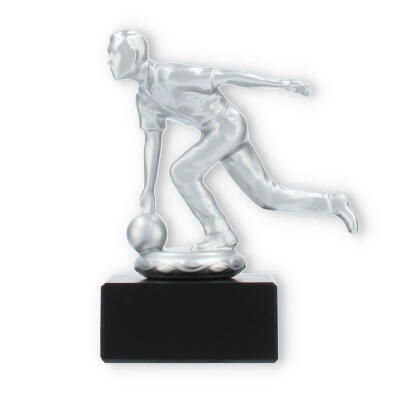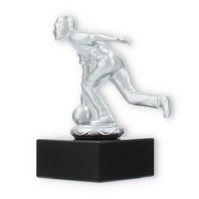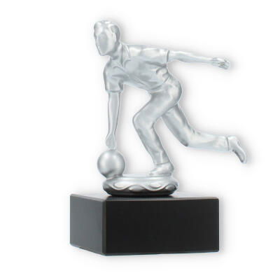 De bowling beker in zilveren metallic look, op een zwarte marmeren sokkel, is 12,4 cm hoog. Met een unieke gravure verheft het elke wedstrijd tot een speciaal moment.