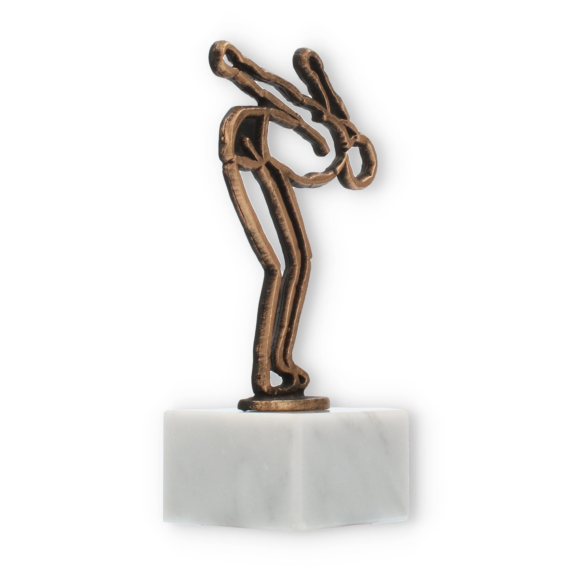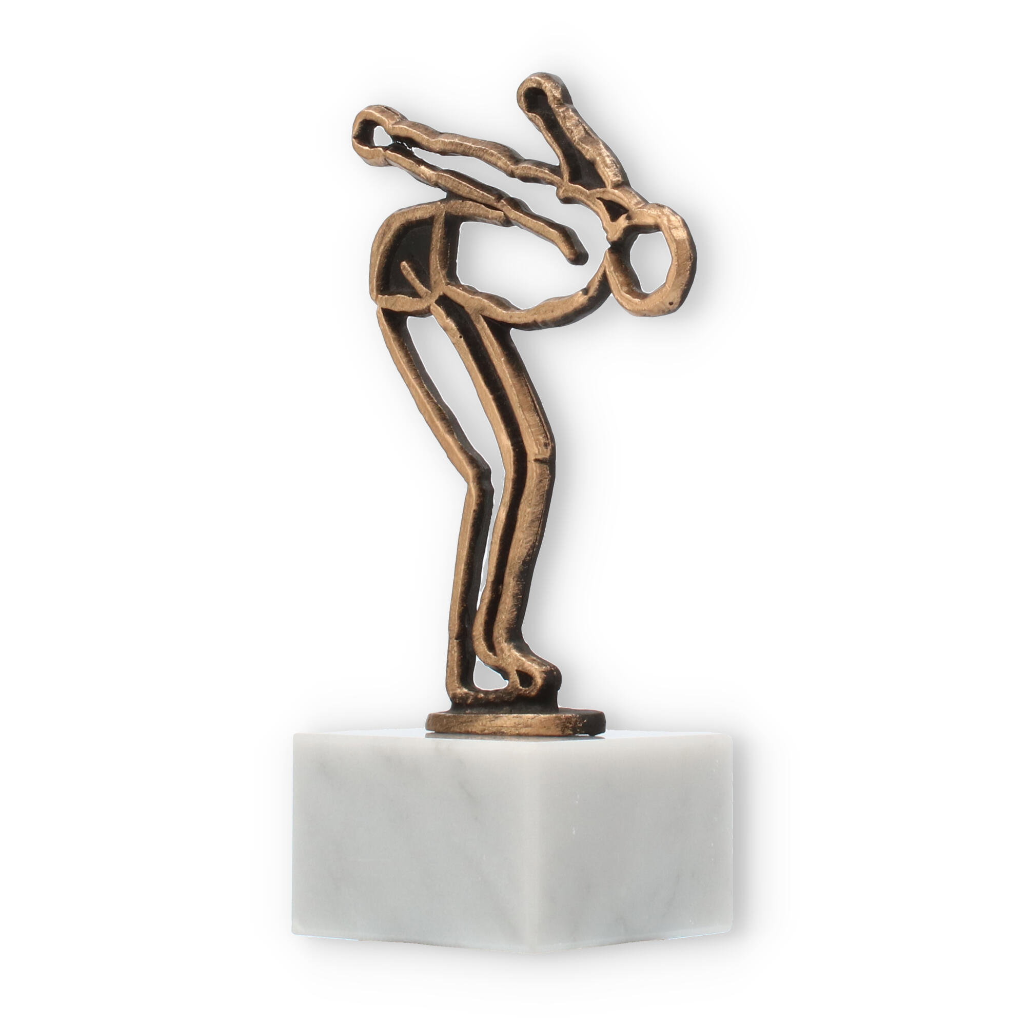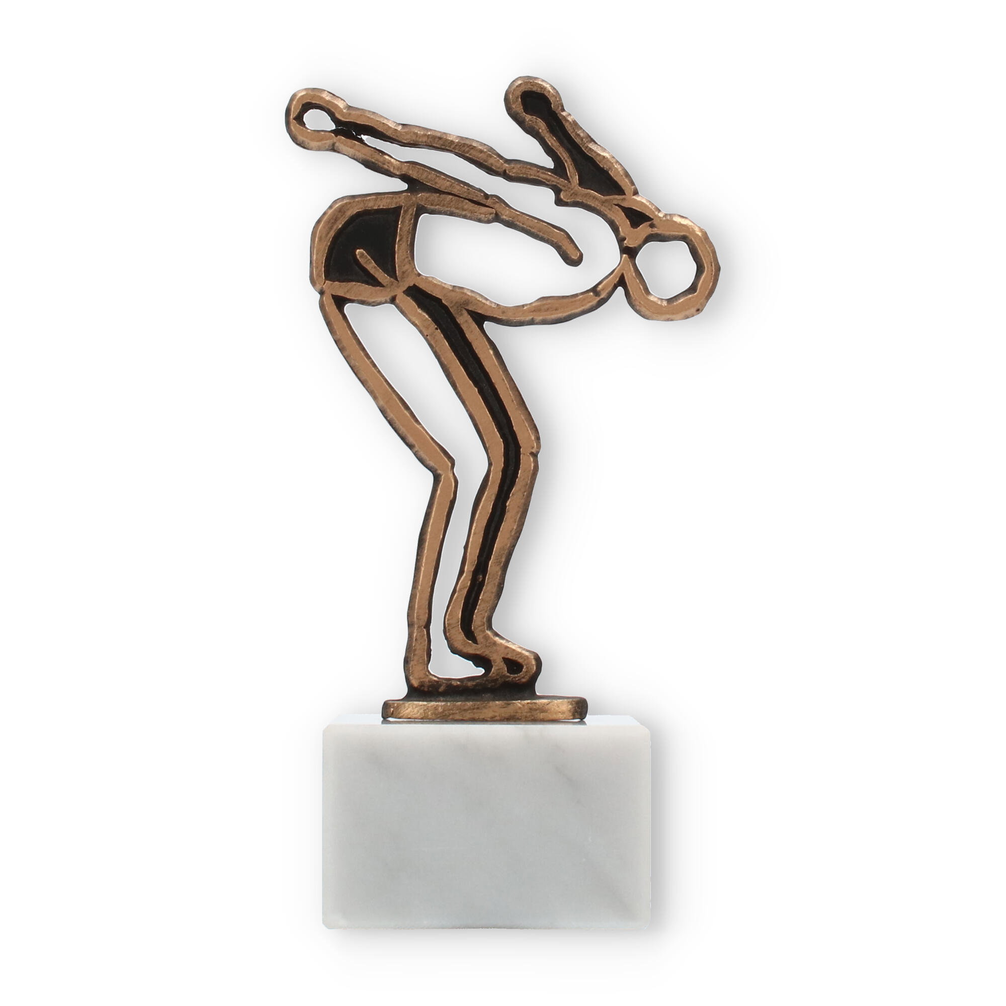 Symboliczne znaczenie tej figury pływaka, utrwalone w antycznym złocie, można podziwiać w każdej kolekcji trofeów, umieszczonej na honorowym miejscu. Marmurowa baza i starannie zaplanowane proporcje skupiają uwagę, harmonizując przestrzeń, w której się znajduje.