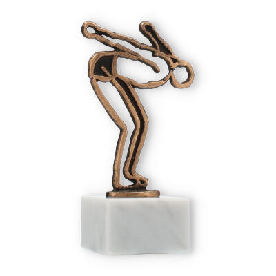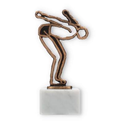 Figurka pływaka w antycznym złocie na białej, marmurowej podstawie to doskonały sposób, by uczcić osiągnięcia w dyscyplinach wodnych. Personalizowany grawer sprawia, że nagroda jest wyjątkowa.