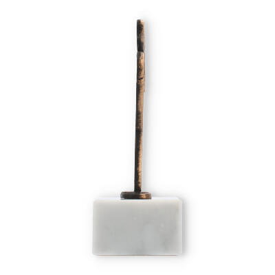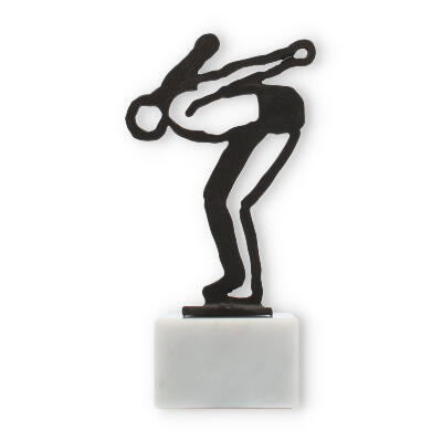 Konturowa figura pływaka, osadzona na eleganckiej, marmurowej podstawie, oferuje połączenie sztuki z celebracją sportowych osiągnięć. Wyraźna sylwetka pływaka w antycznym złocie przykuwa uwagę, a jednocześnie doskonale dopasowuje się do białego marmuru, tworząc harmonijną całość. Marmur o delikatnych, szarych żyłkach dodaje element luksusu, nie przytłaczając jednocześnie głównego tematu – sportowej pasji.