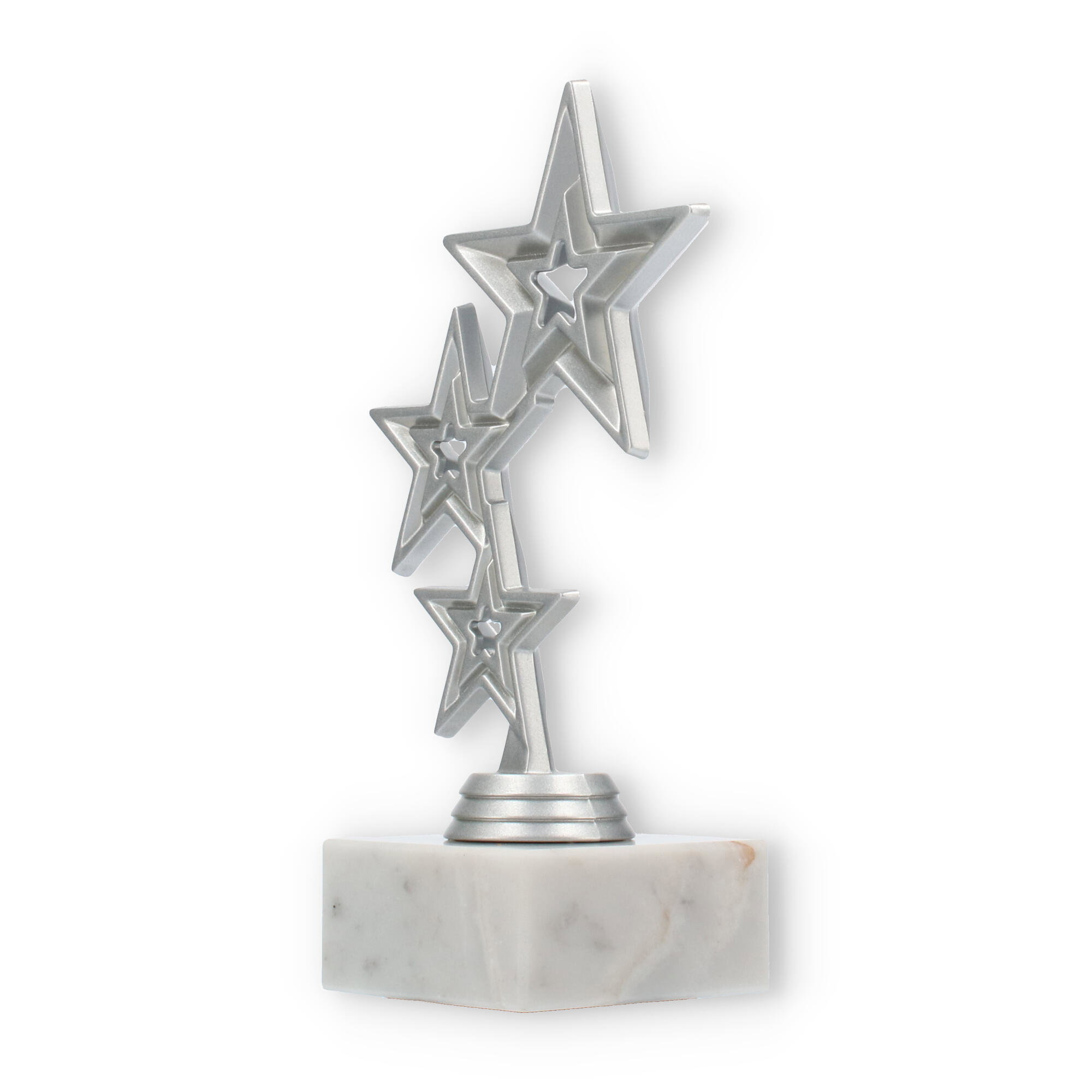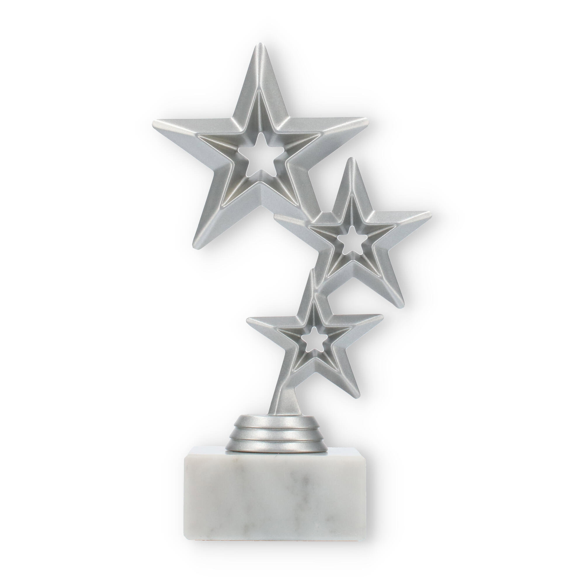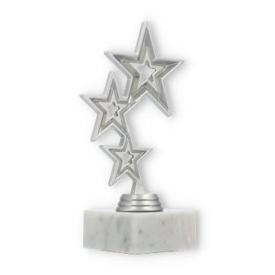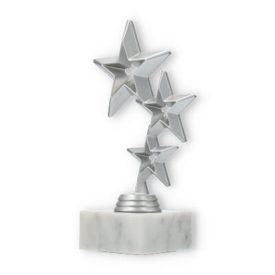 Trofeum Jupiter emanuje nowoczesnym designem, łącząc solidność marmurowej podstawy z elegancją srebrnego metalu. Główna część statuetki składa się z trzech pięknie ułożonych, geometrycznych gwiazd, które przyciągają wzrok swoim rozmieszczeniem. Największy z nich wznosi się dumnie na szczycie, tworząc spójny i harmonijny wygląd.