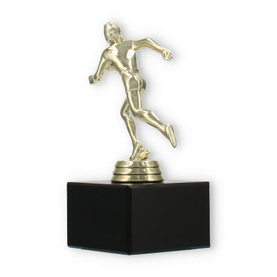 Baza figury wykonana jest z czarnego marmuru, co dodaje jej stabilności i prestiżu. Marmurowa podstawa stanowi doskonały kontrast dla złotej figury, tworząc harmonijną kompozycję. Na tej solidnej konstrukcji możliwe jest umieszczenie indywidualnej tabliczki z dowolnym grawerunkiem, aby uczcić sukcesy w sposób spersonalizowany.
