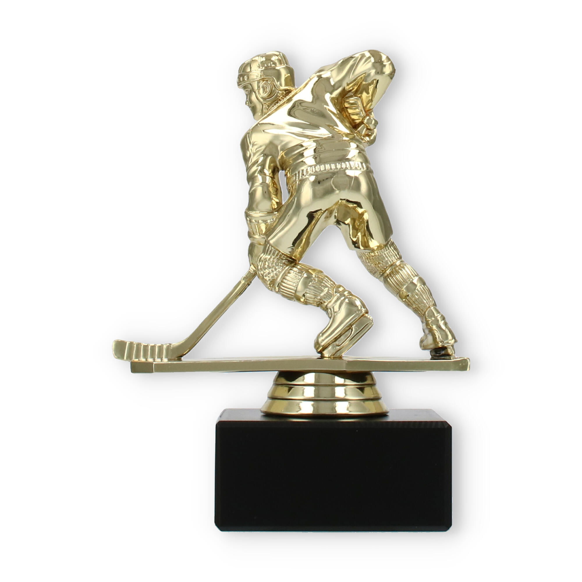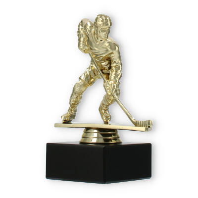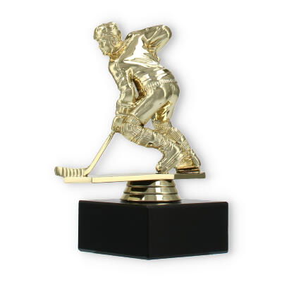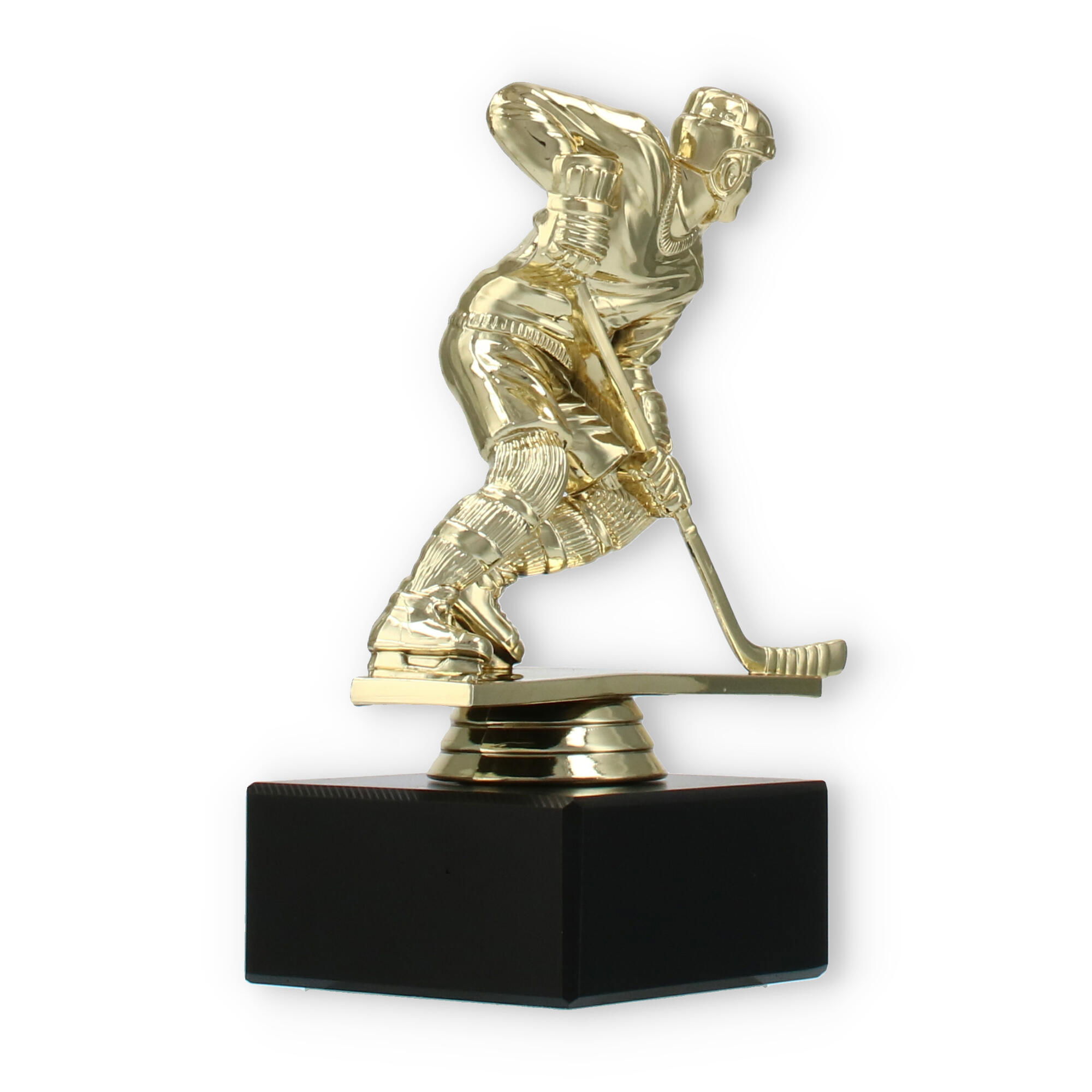 Figurka przedstawiająca hokeistę na lodzie w złotym kolorze, osadzona na solidnej, czarnej marmurowej podstawie. Możliwość dodania indywidualnego graweru na tabliczce z tworzywa sztucznego czyni ją idealną pamiątką dla fanów sportu.
