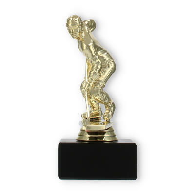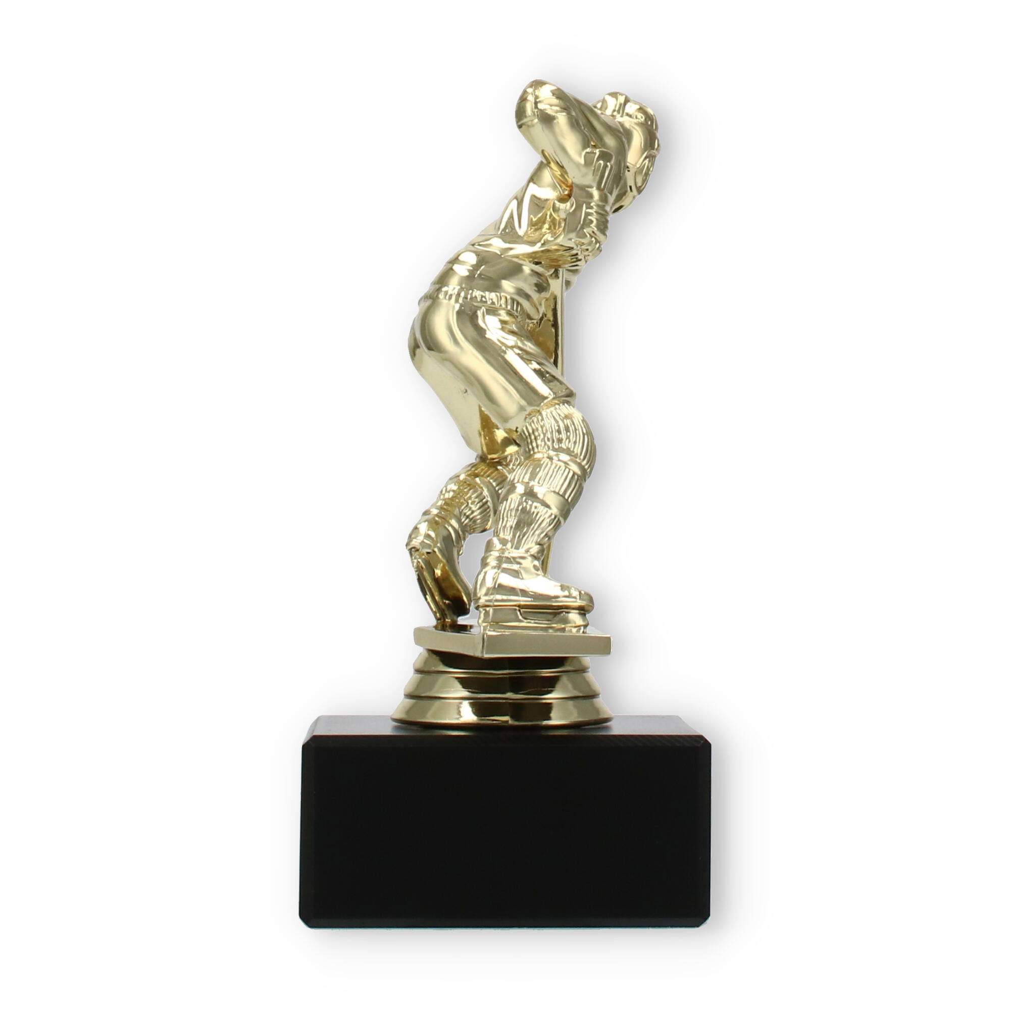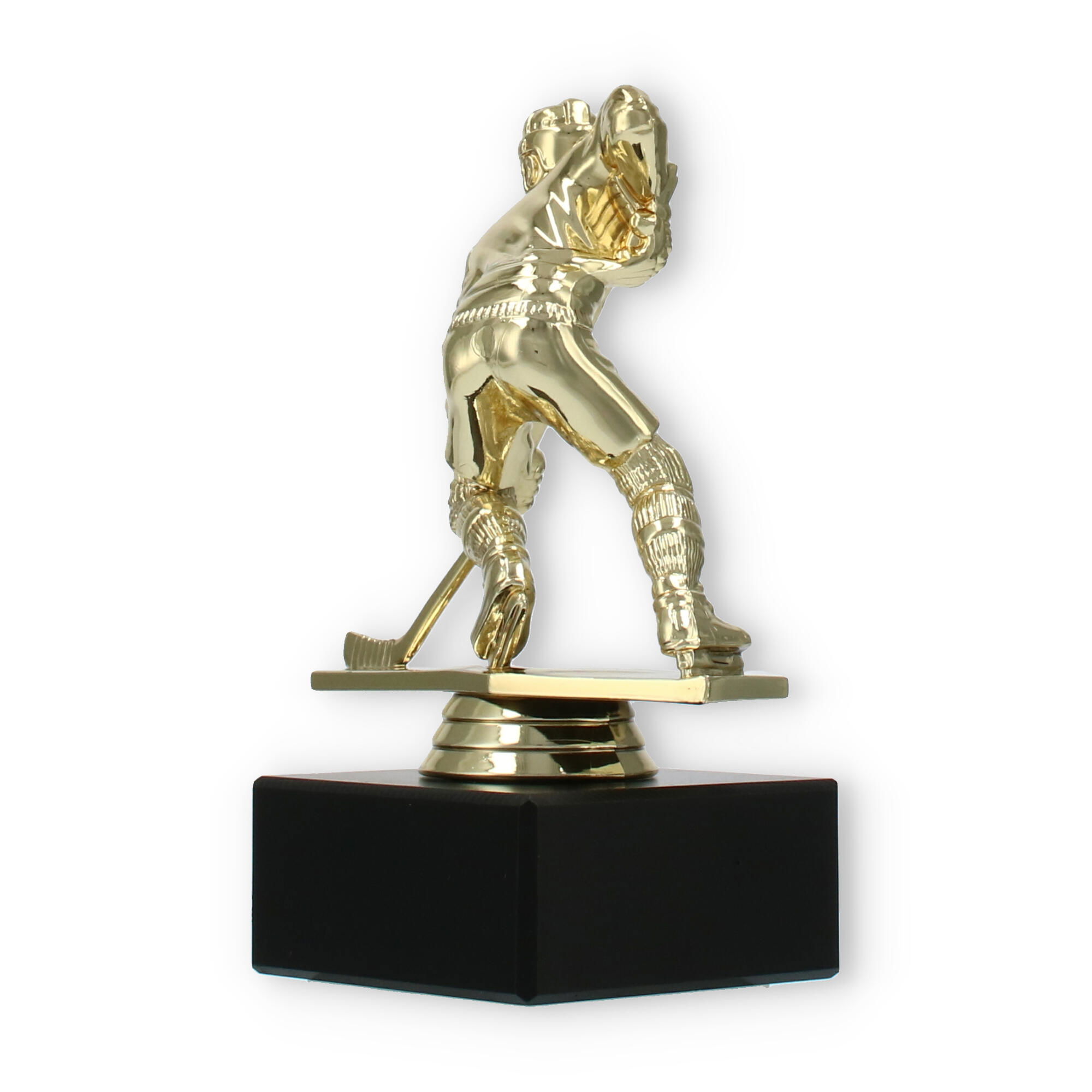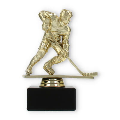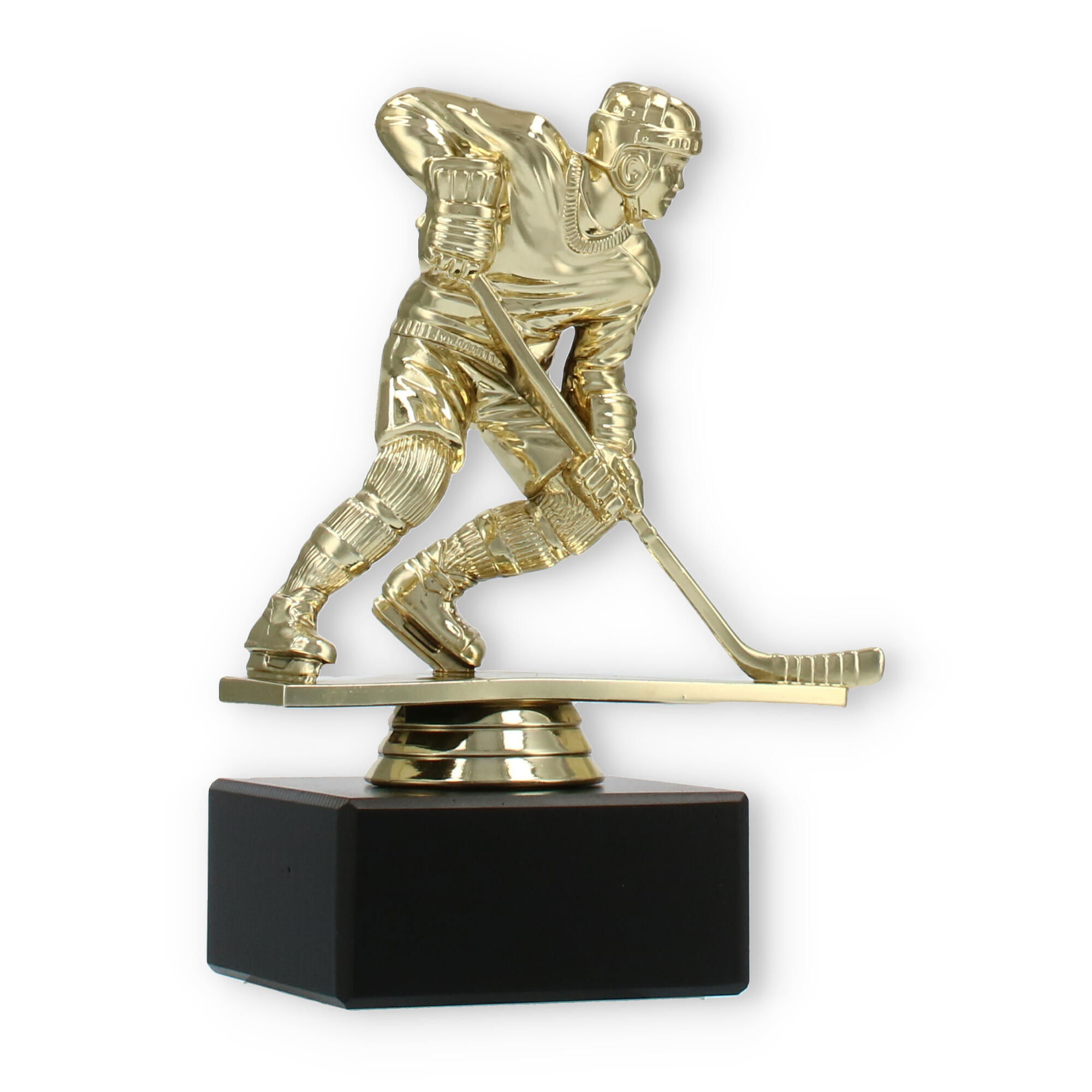 Figurka przedstawiająca hokeistę na lodzie w złotym kolorze, osadzona na solidnej, czarnej marmurowej podstawie. Możliwość dodania indywidualnego graweru na tabliczce z tworzywa sztucznego czyni ją idealną pamiątką dla fanów sportu.