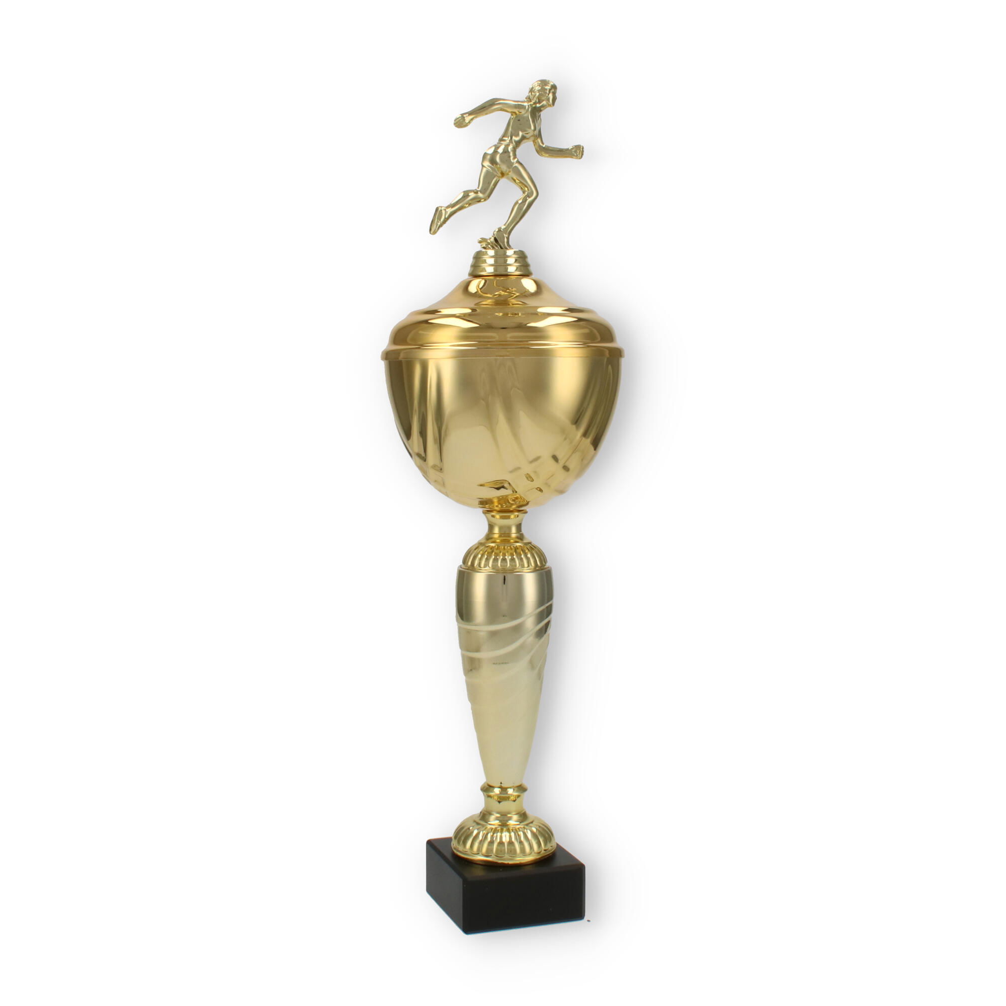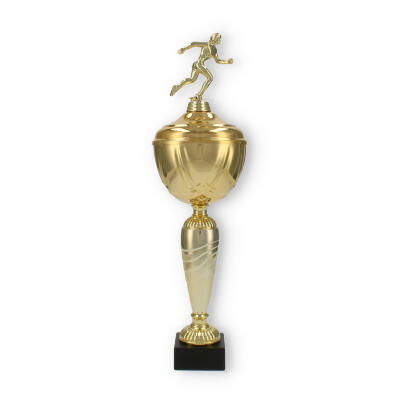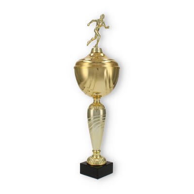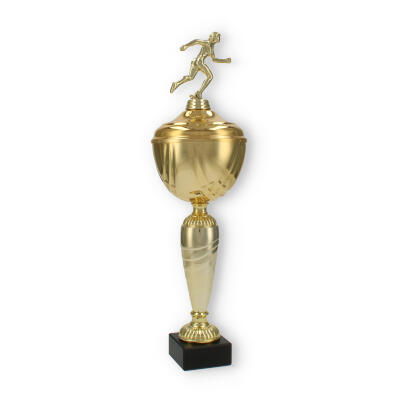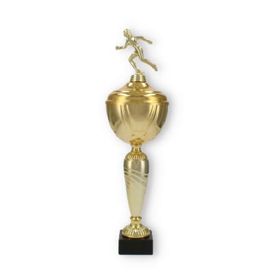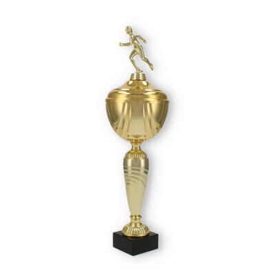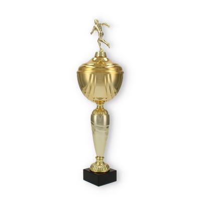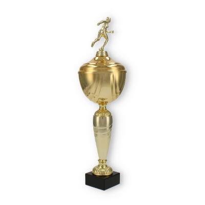 Le socle en marbre noir ajoute un contraste élégant à la teinte dorée de la coupe, offrant non seulement stabilité mais également un aspect esthétique raffiné. Cet équilibre parfait fait de cette coupe un choix idéal pour toute compétition ou événement sportif.